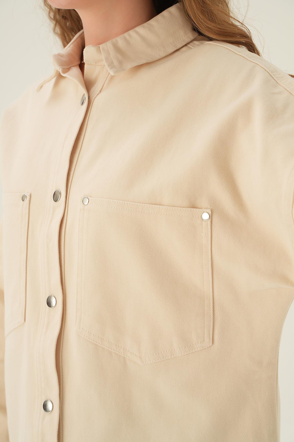 Bej Cepli Gabardin Gömlek 1052