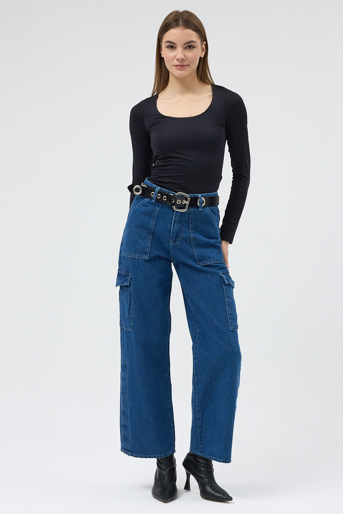 Mavi Kadın Yüksek Bel Jean Kargo Pantolon 1053