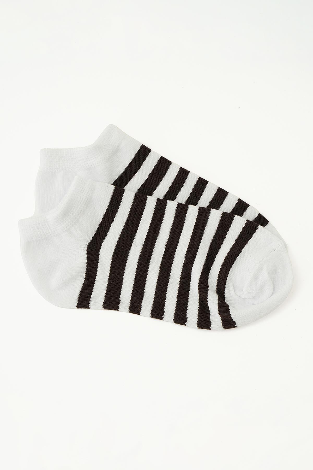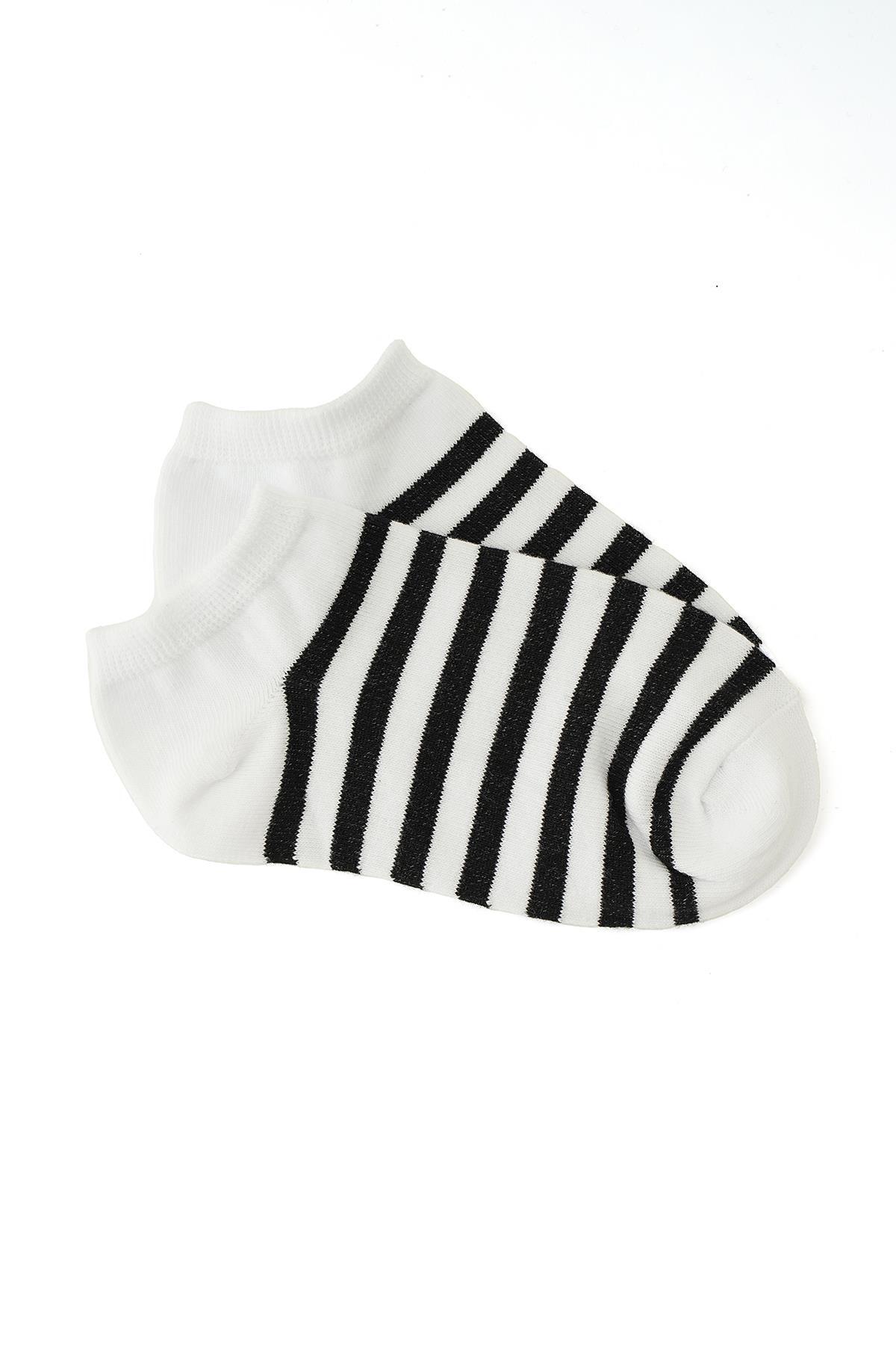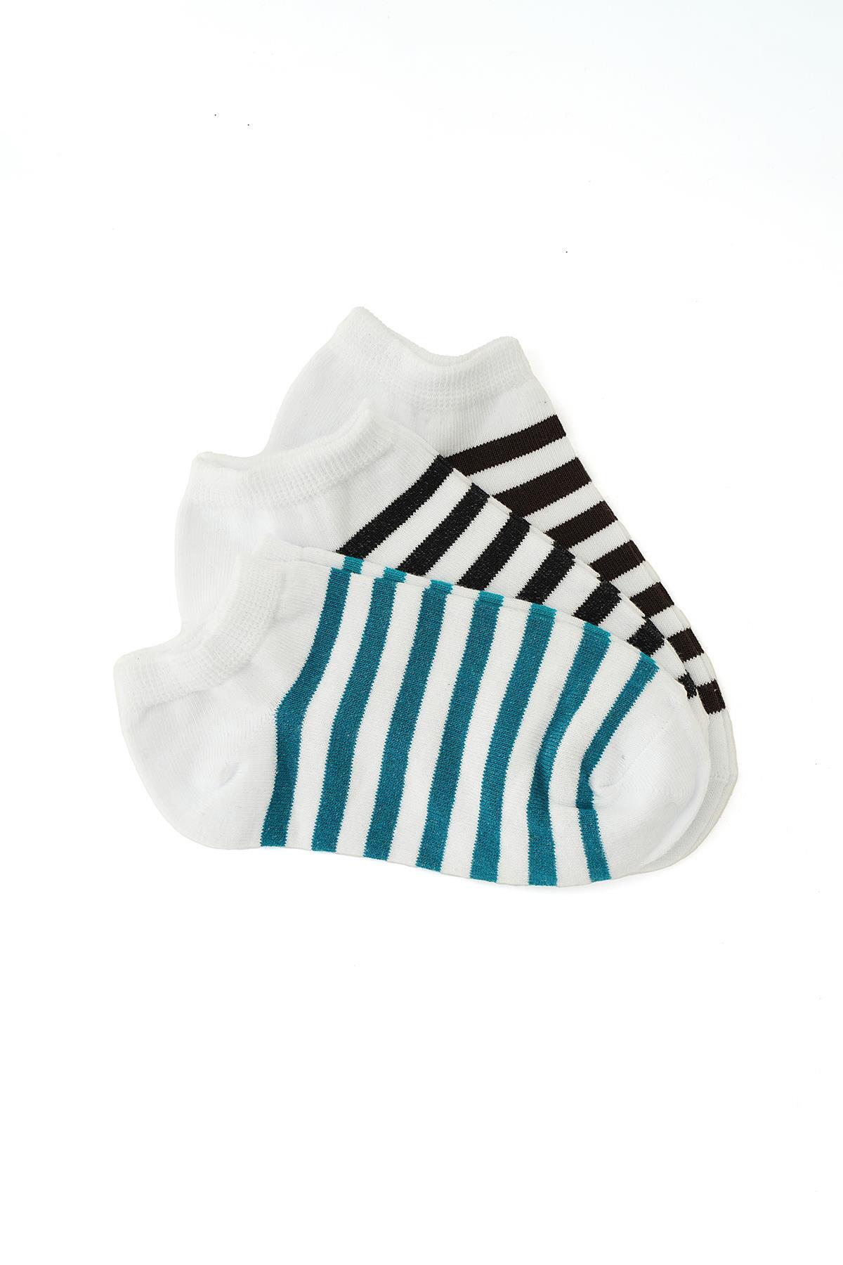1054 Çizgili 3'lü Çorap Çizgili-Siyah