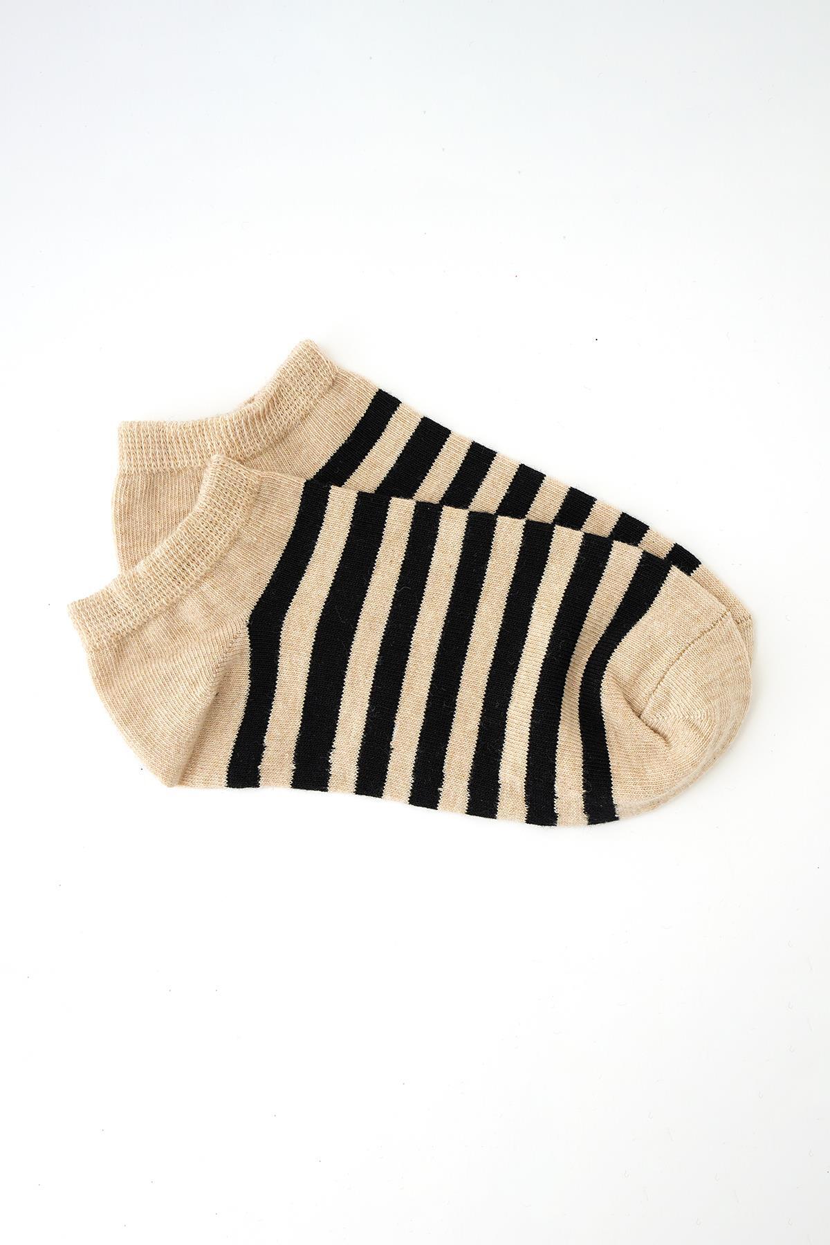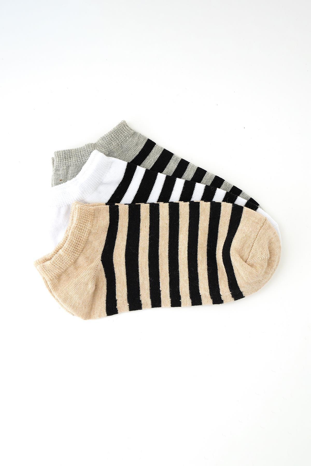 Gri-Ekru-Bisküvi Çizgili 3'lü Çorap 1049