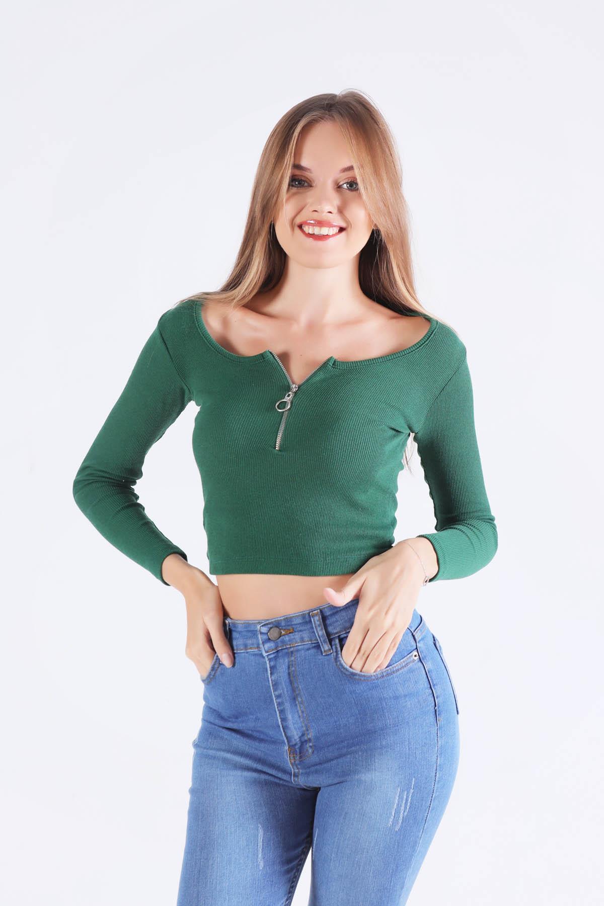 Zümrüt Yaka Fermuarlı Bluz 1057
