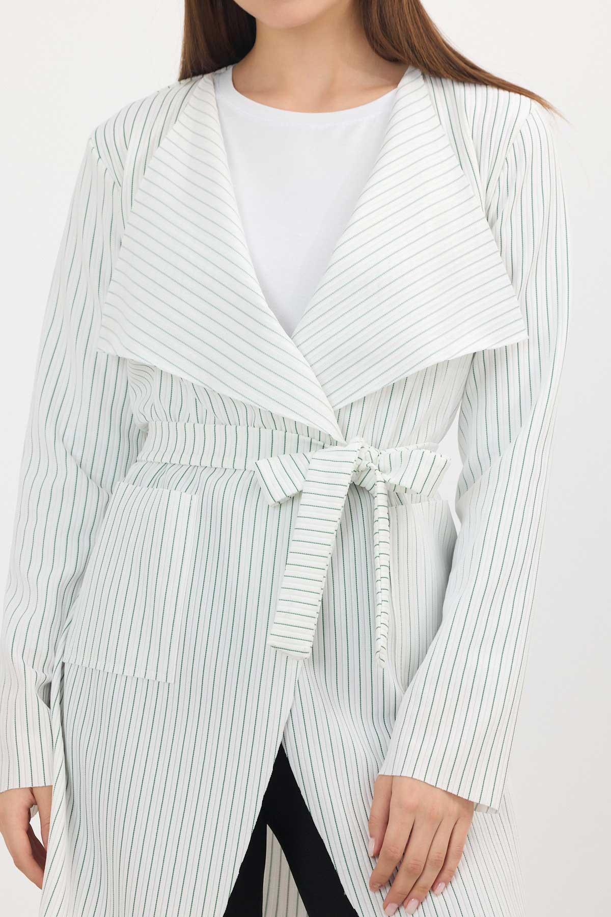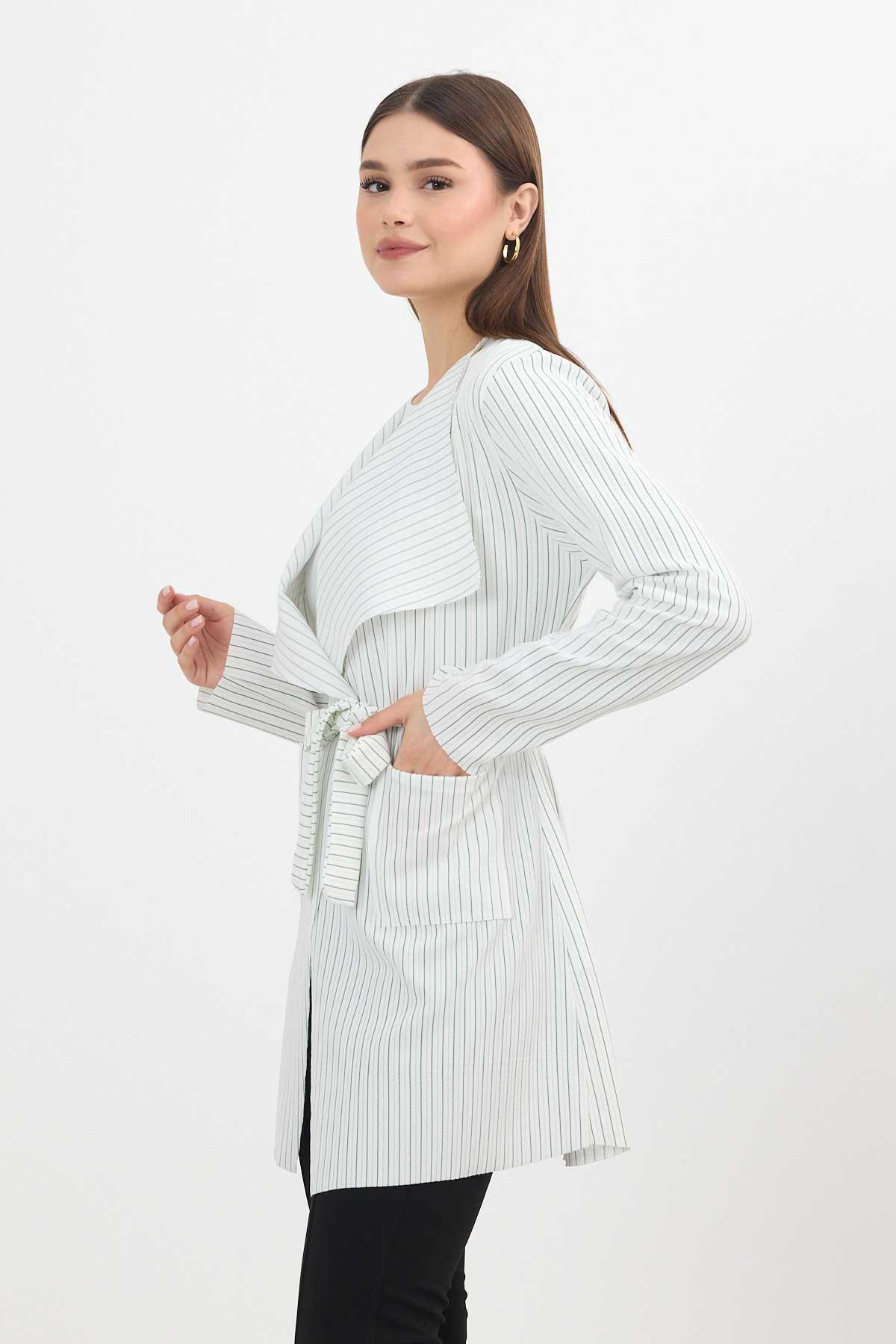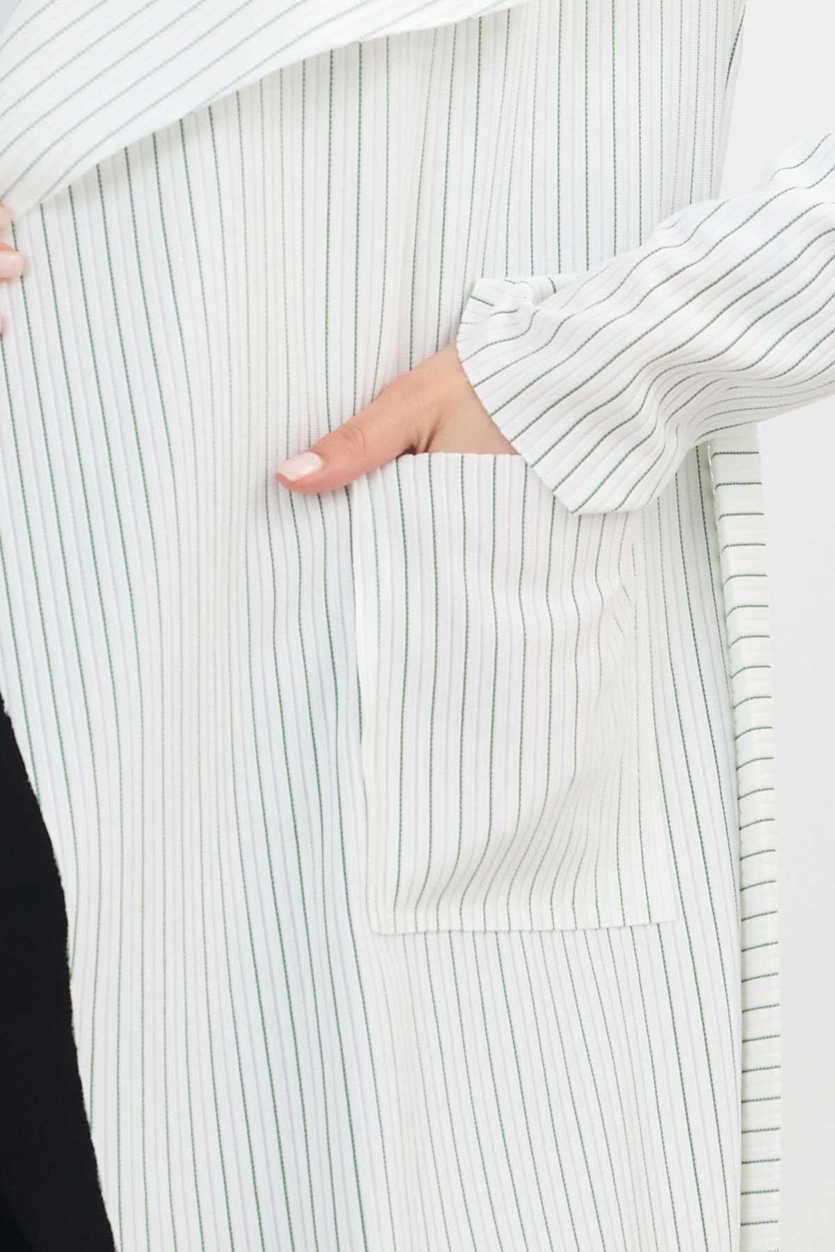 Yeşil Çizgili Cepli Uzun Hırka 1059