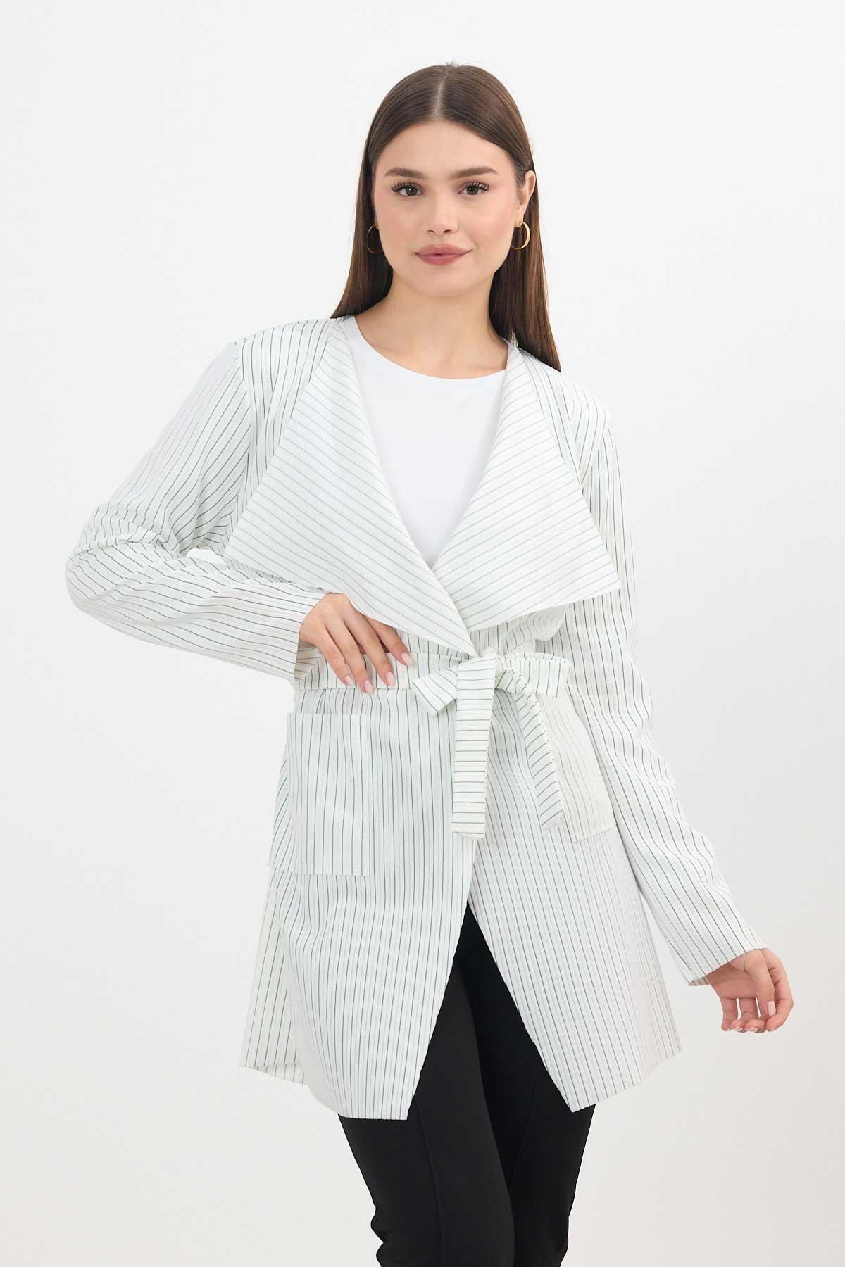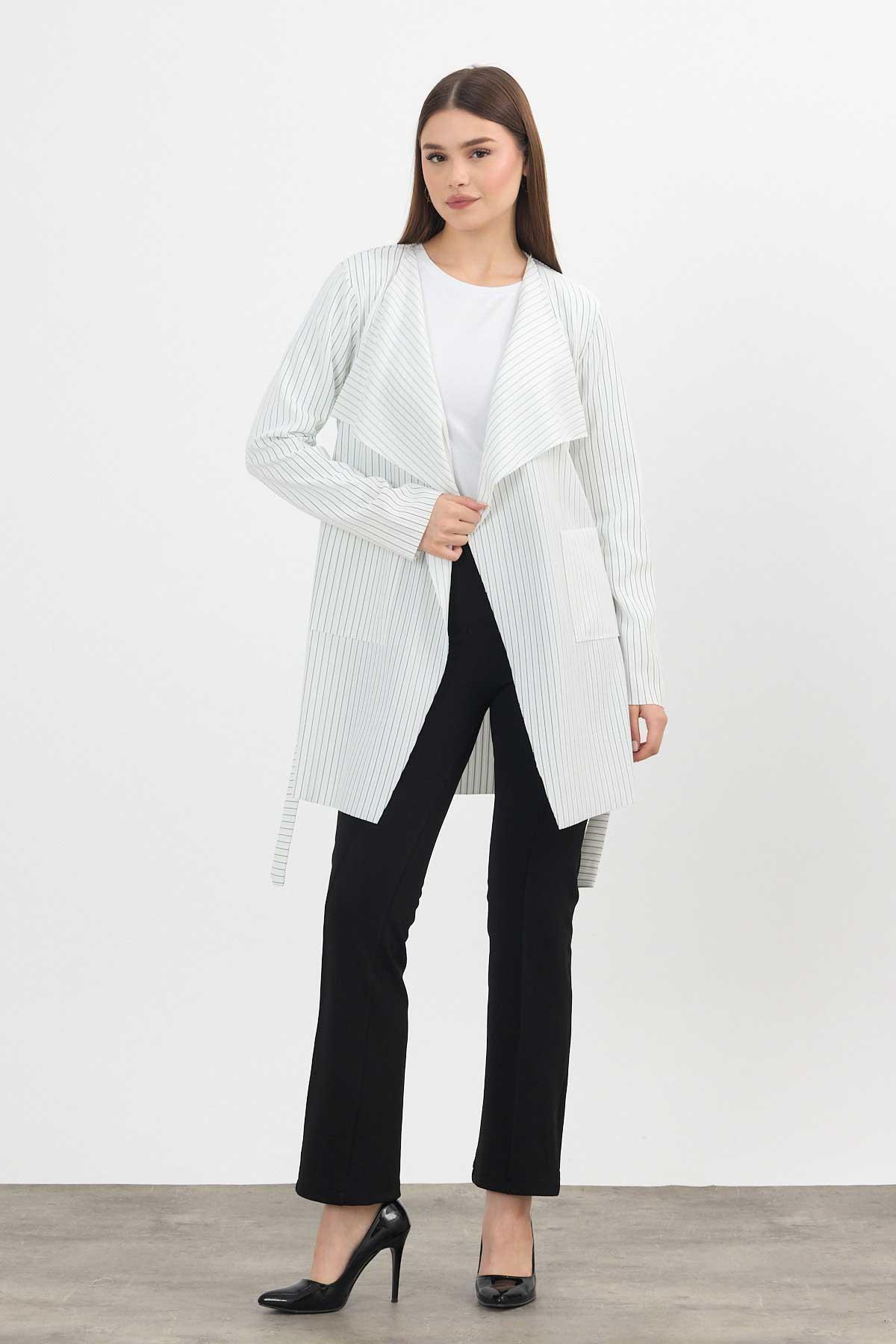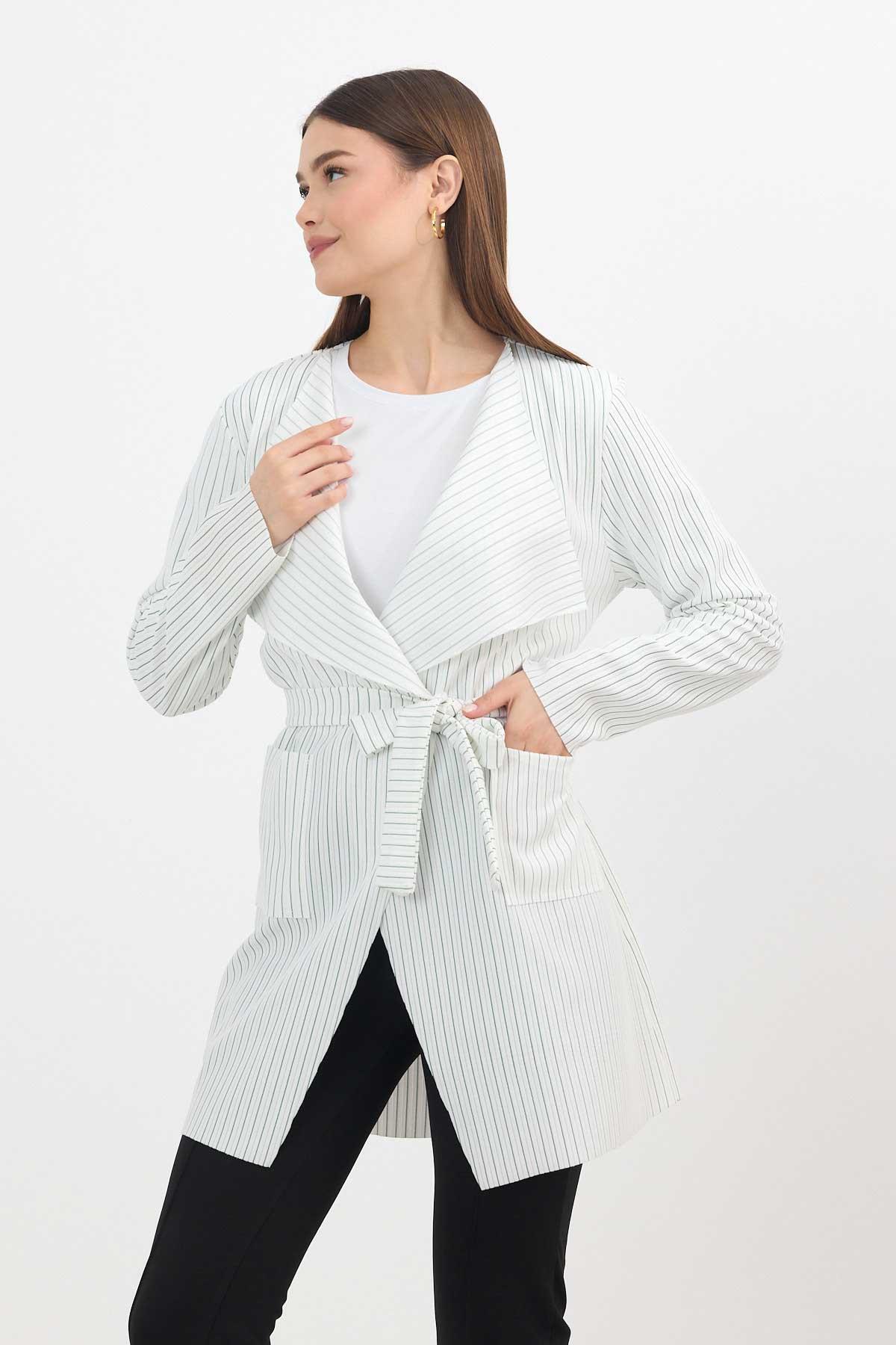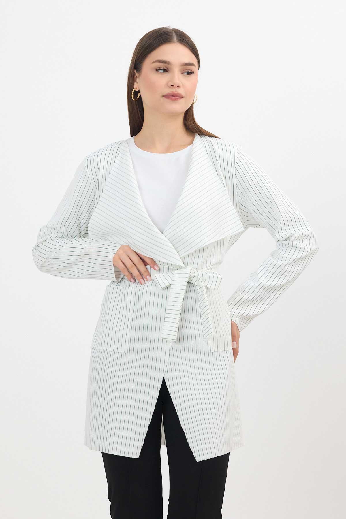 Yeşil Çizgili Cepli Uzun Hırka 1059