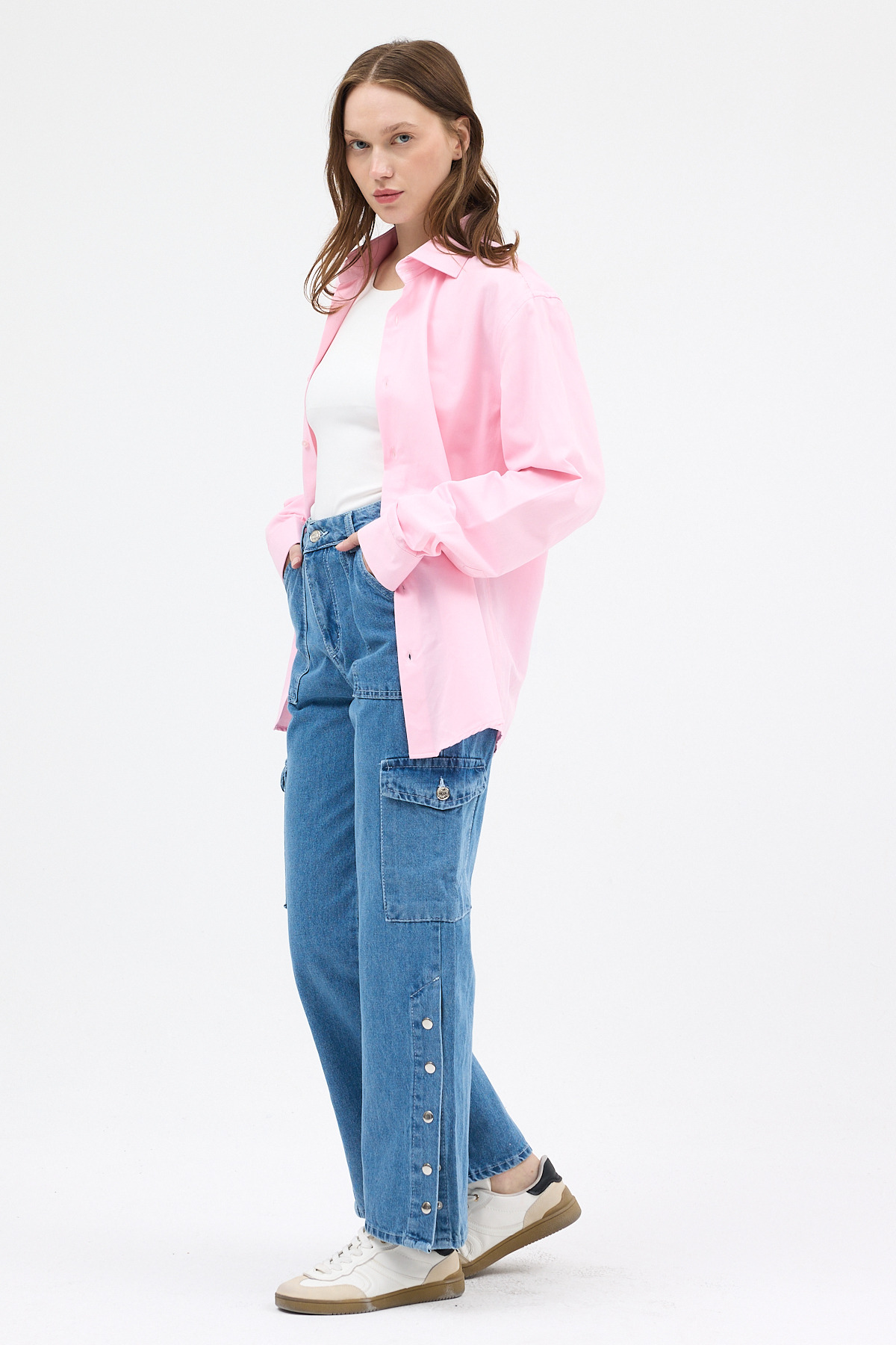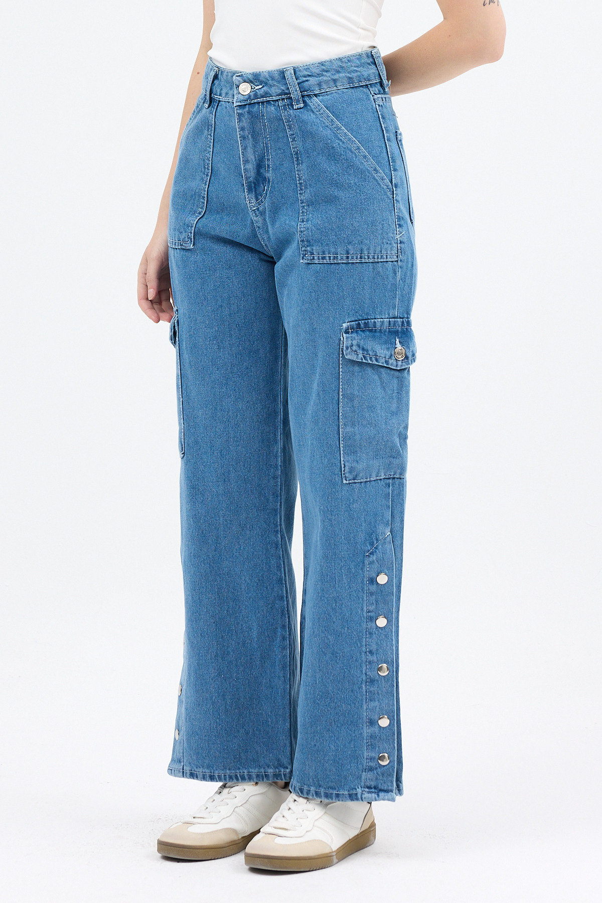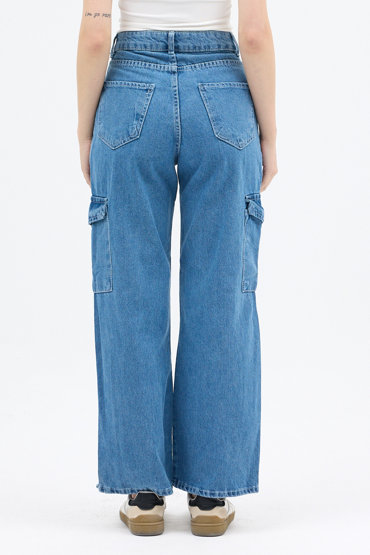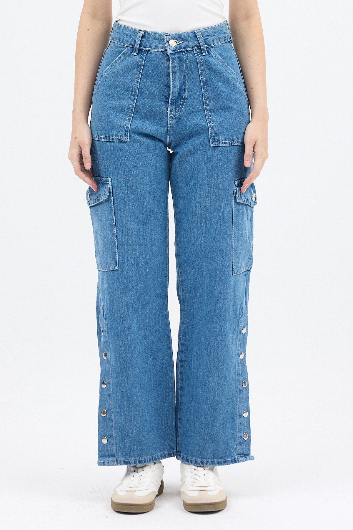 Ara Mavi Kadın Paça Düğmeli Yüksek Bel Jean Kargo Pantolon 1059