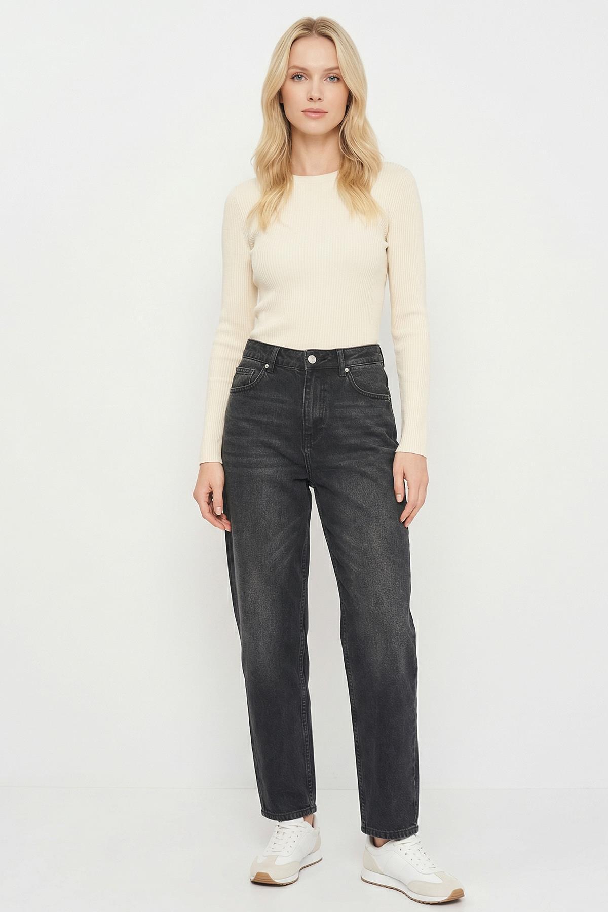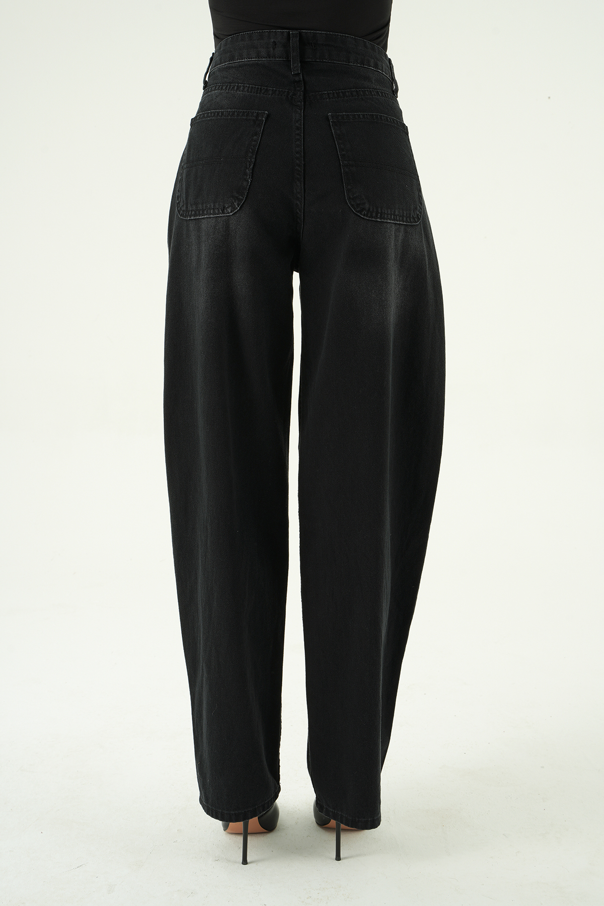 1061 Yüksek Bel Geniş Paça Jean Siyah