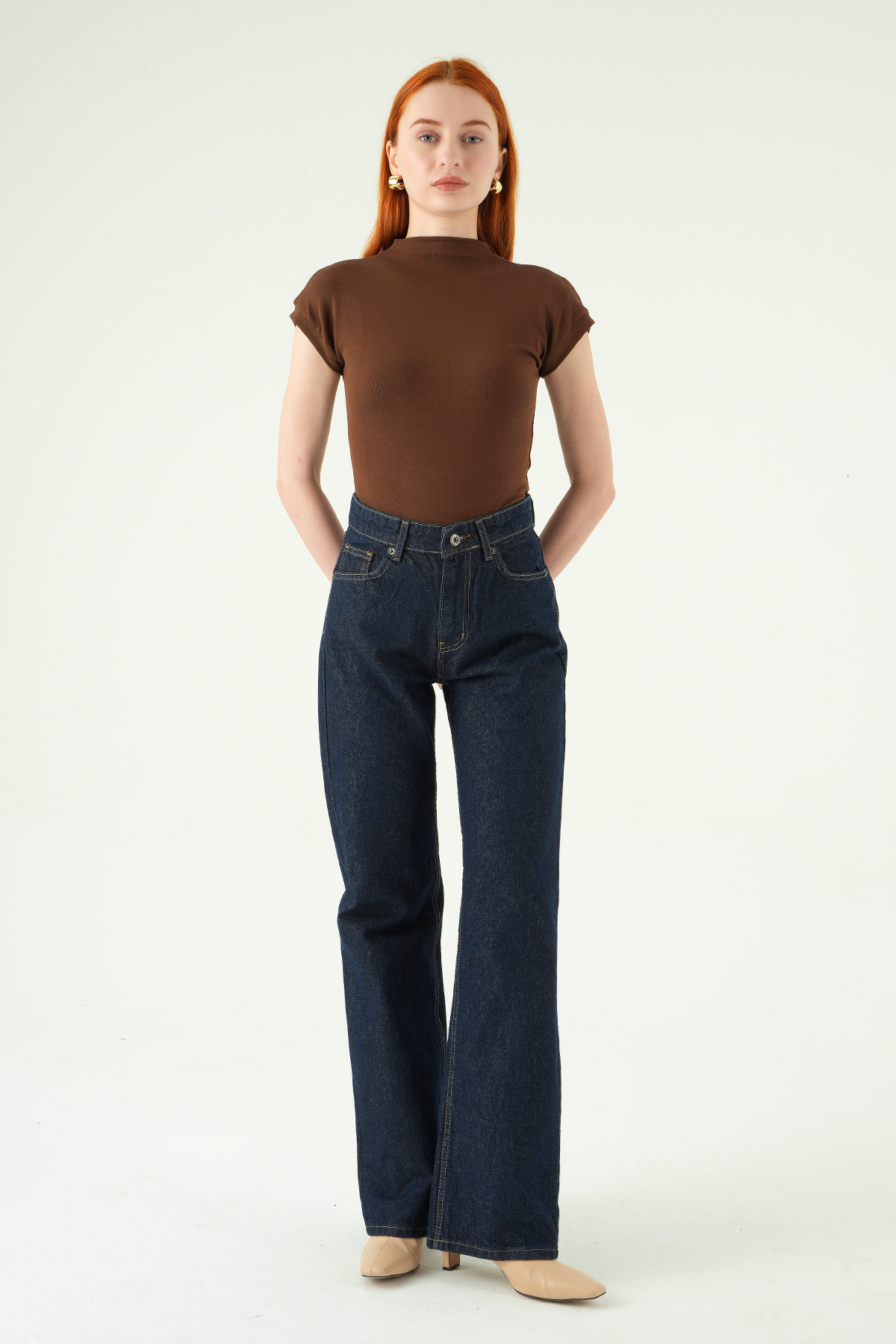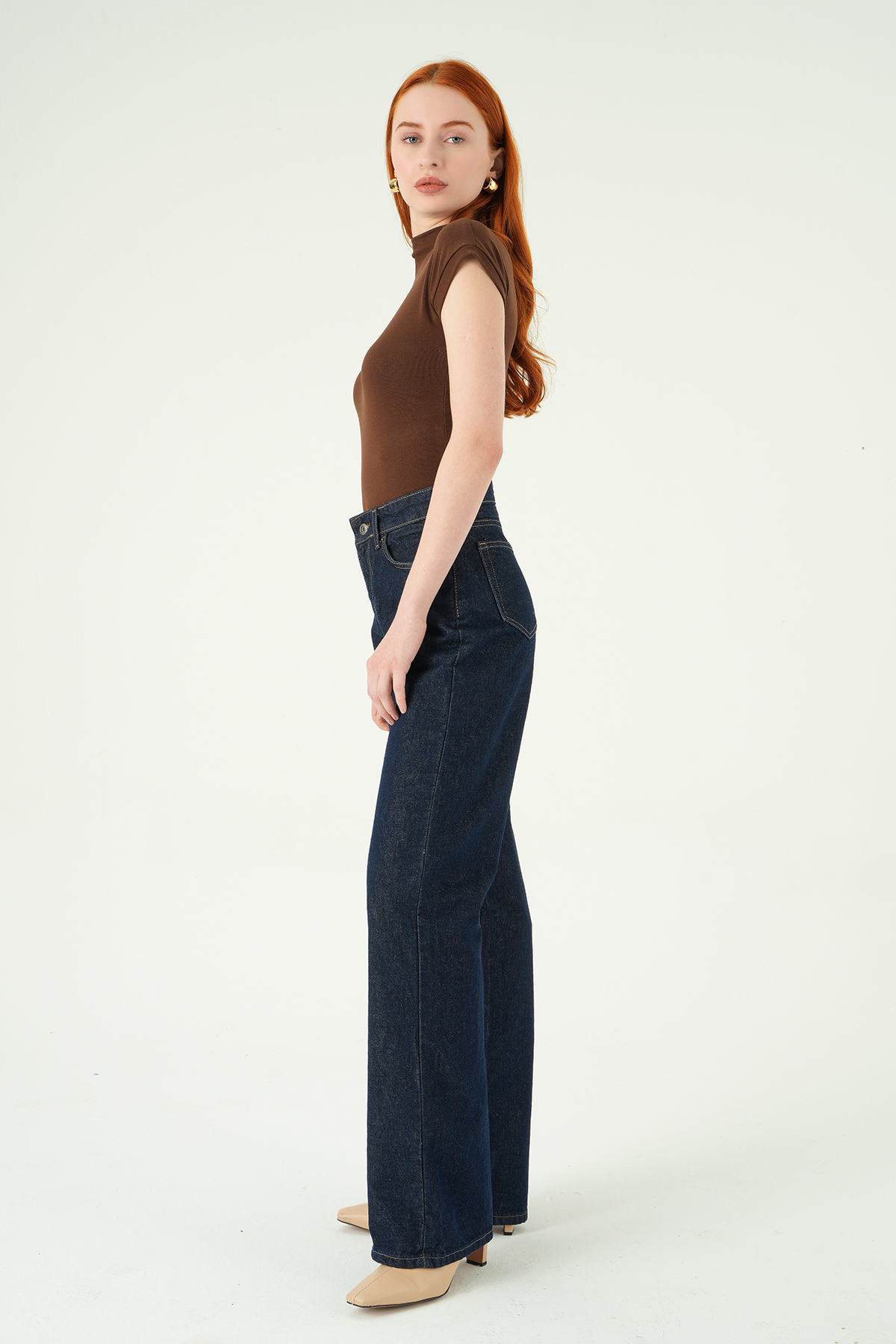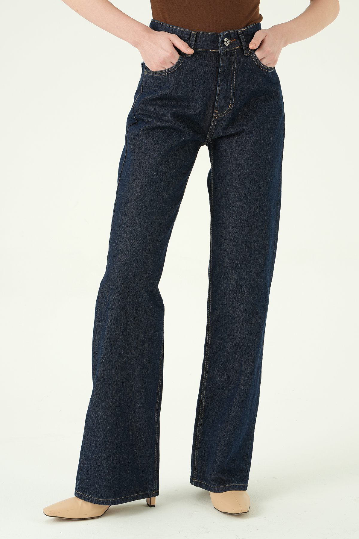 4910 Taşlı Geniş Paça Jean Kahve