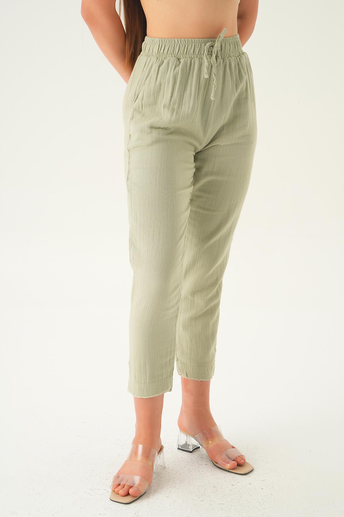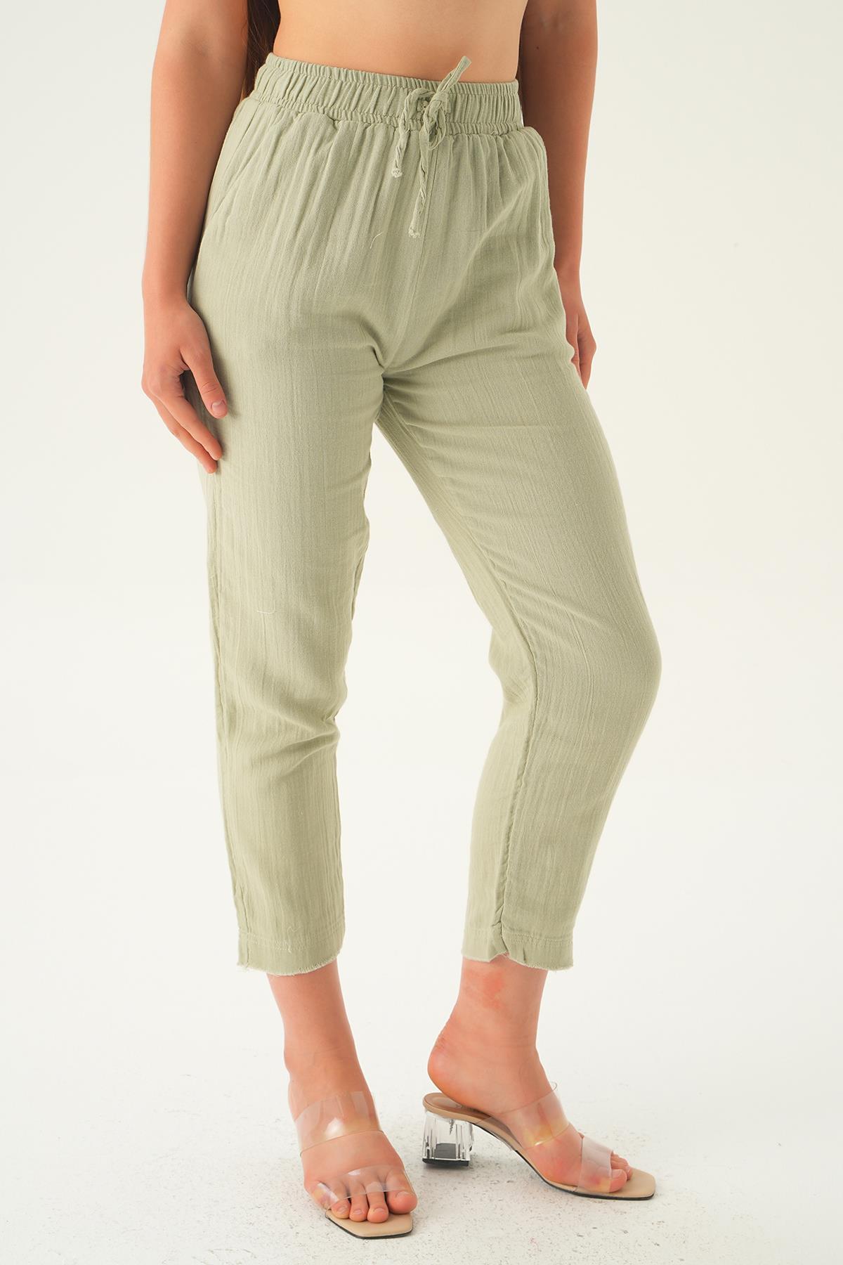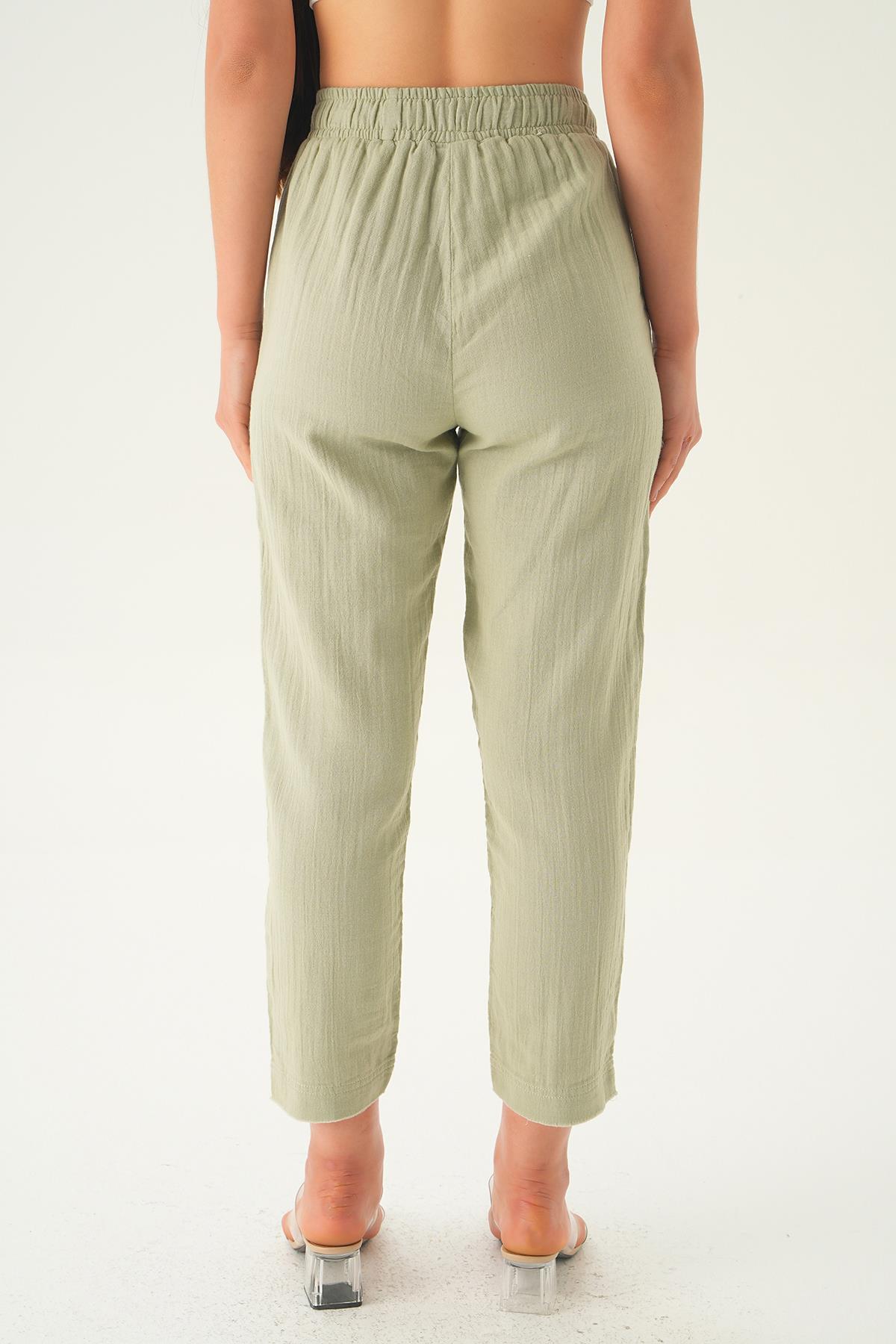 Çağla Yeşili Bağcıklı Cepli Pantolon 1067