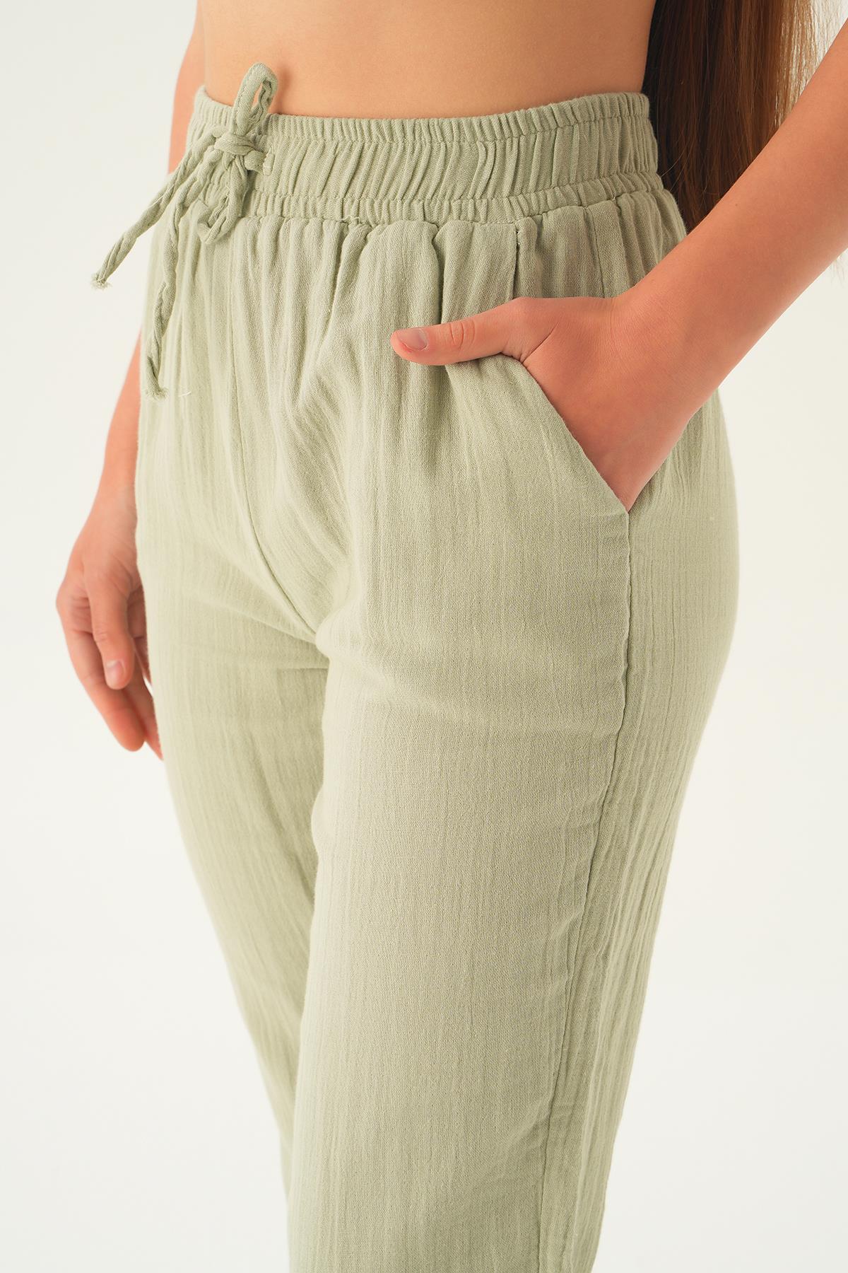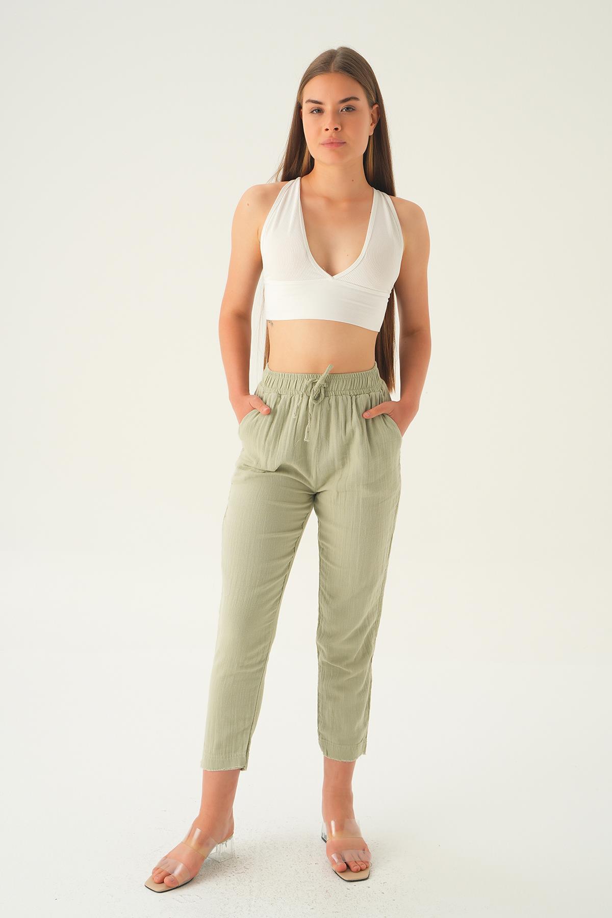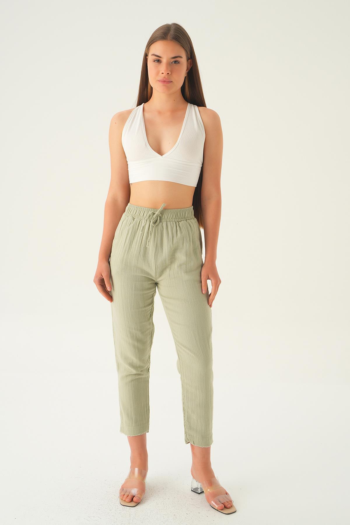 Çağla Yeşili Bağcıklı Cepli Pantolon 1067