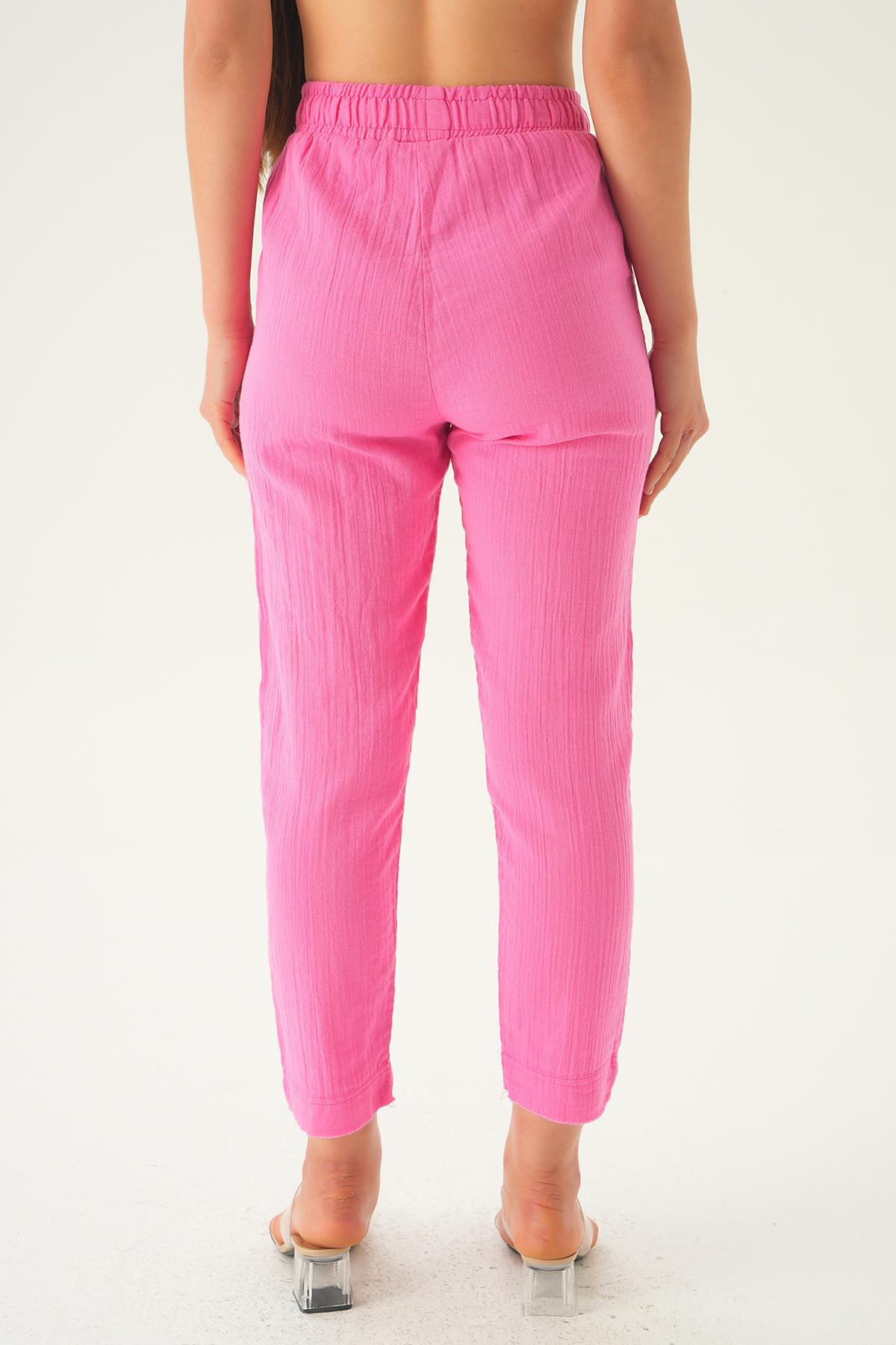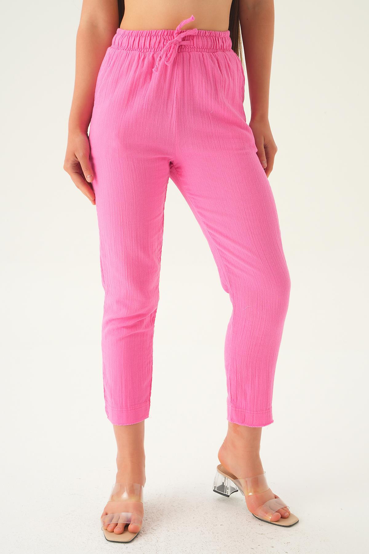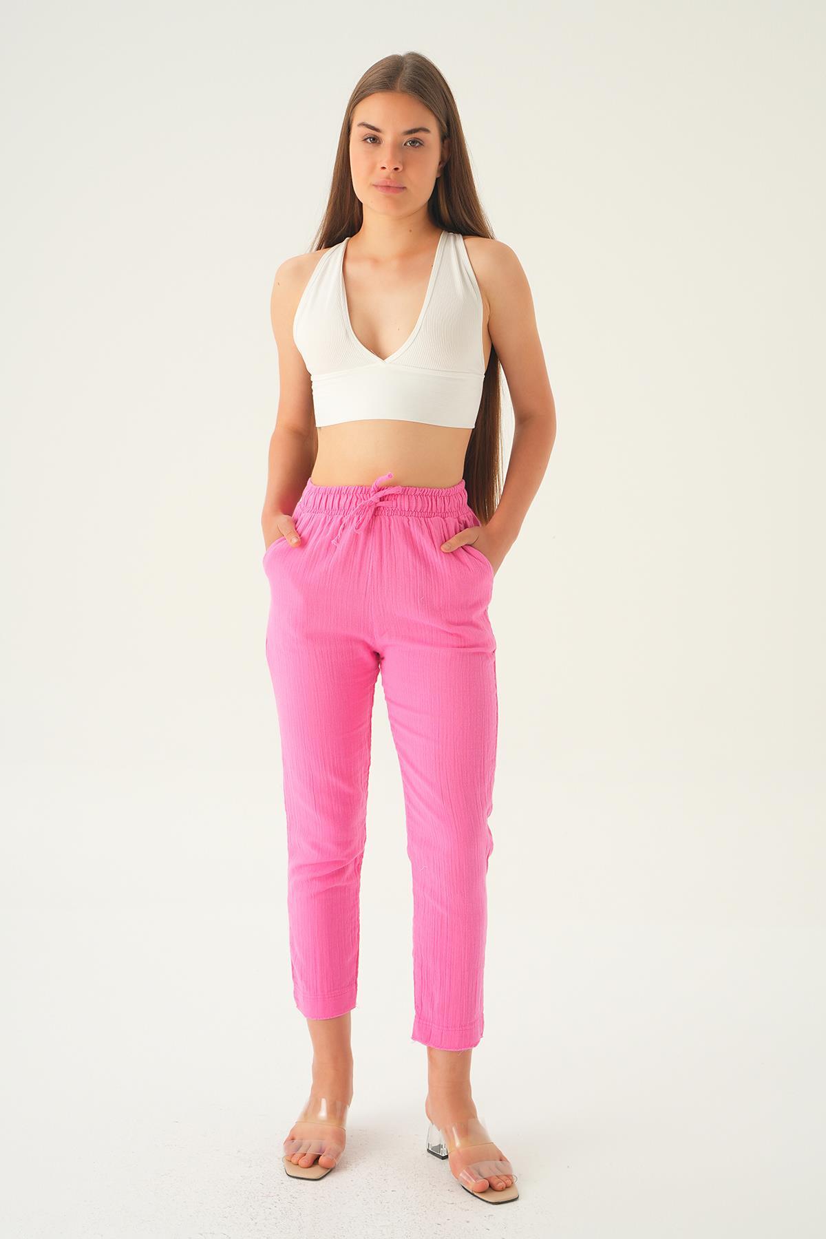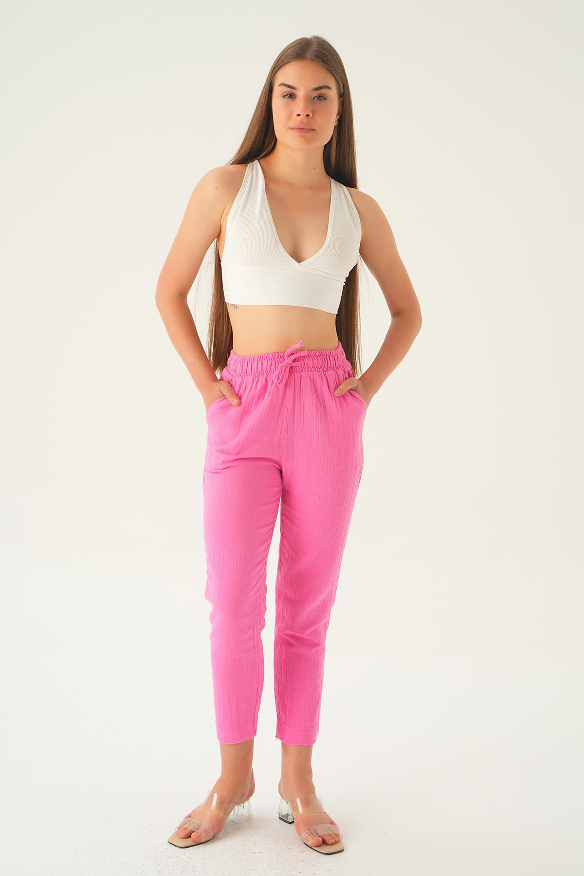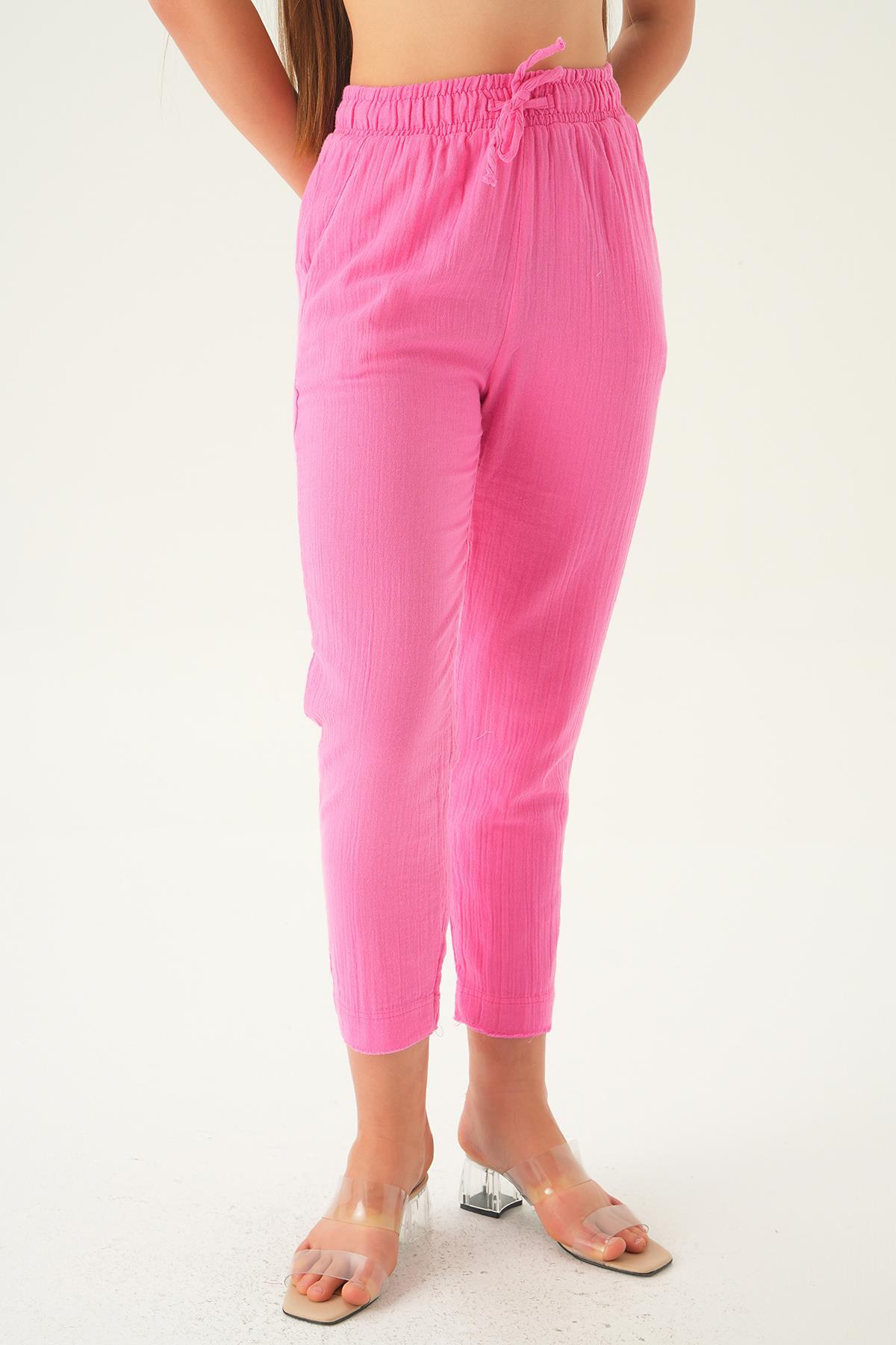 Fuşya Bağcıklı Cepli Pantolon 1067