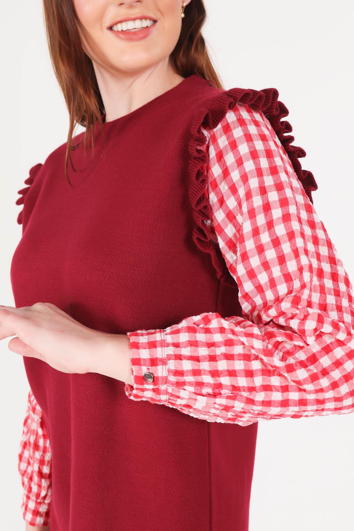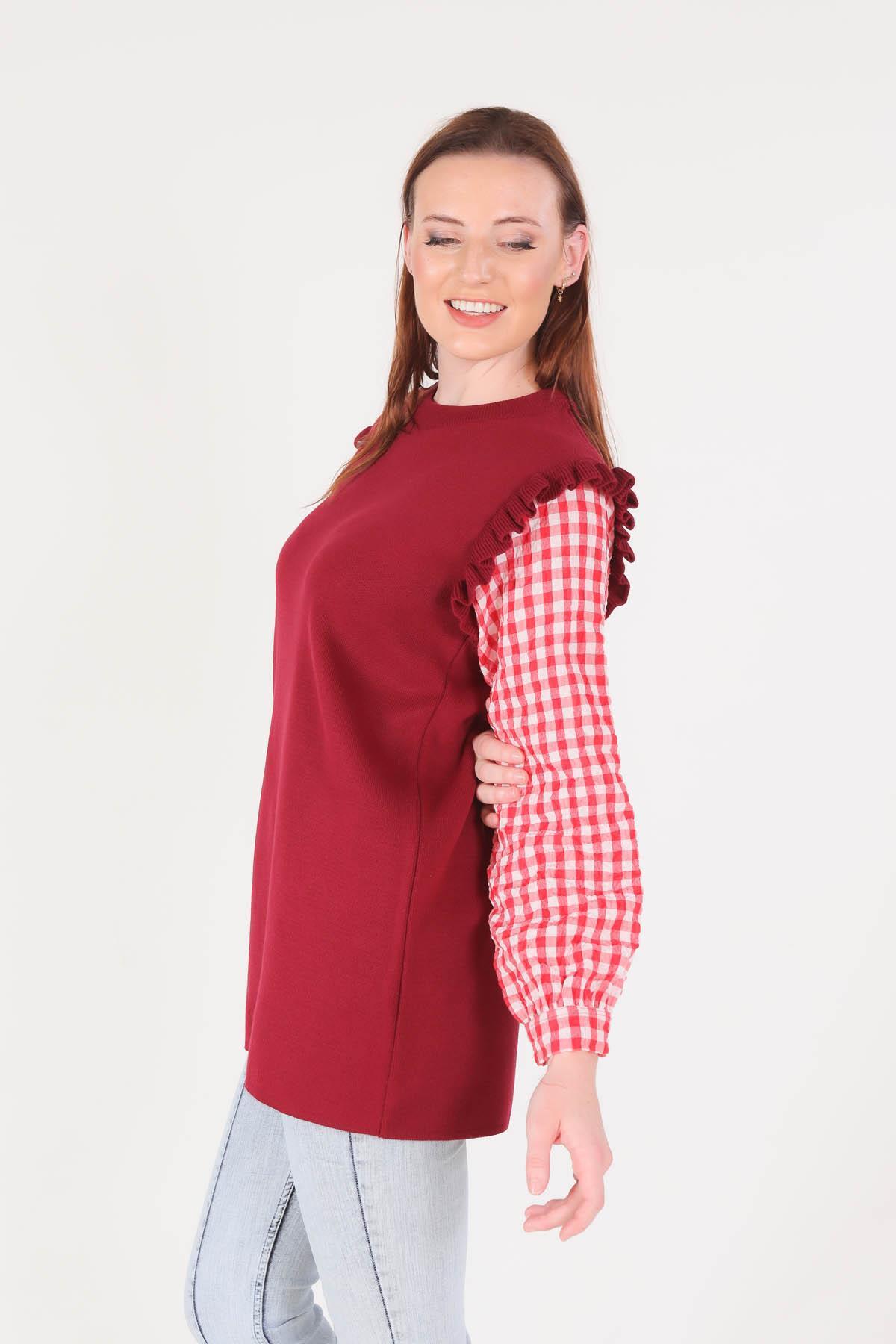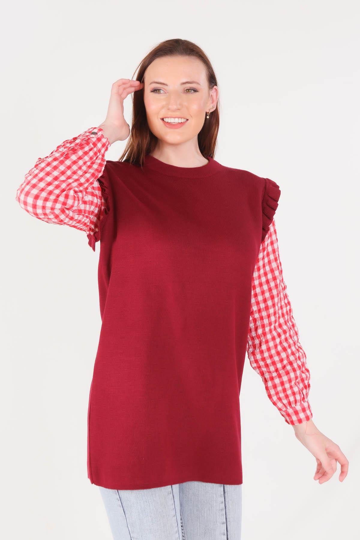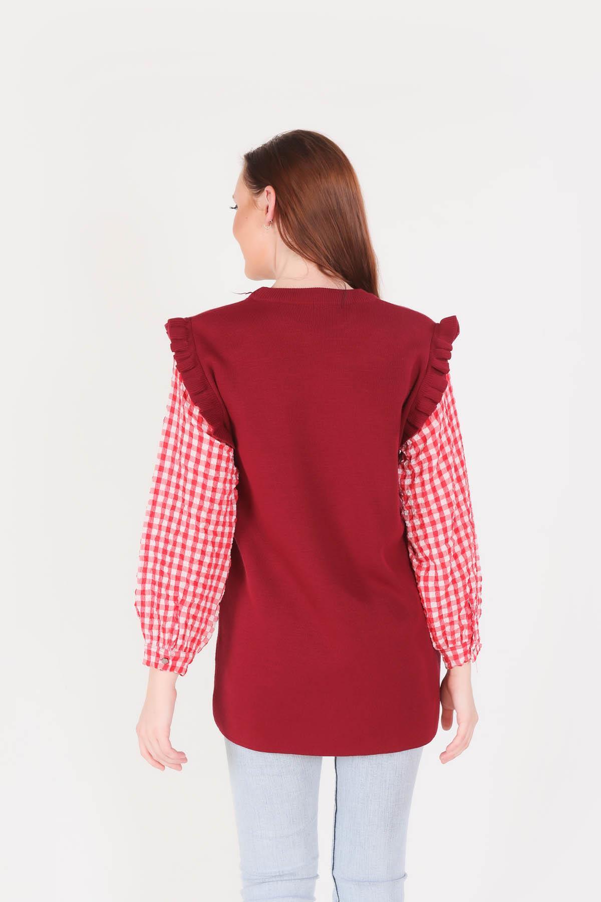 Kırmızı Kol Gömlek Detaylı Tunik 1070