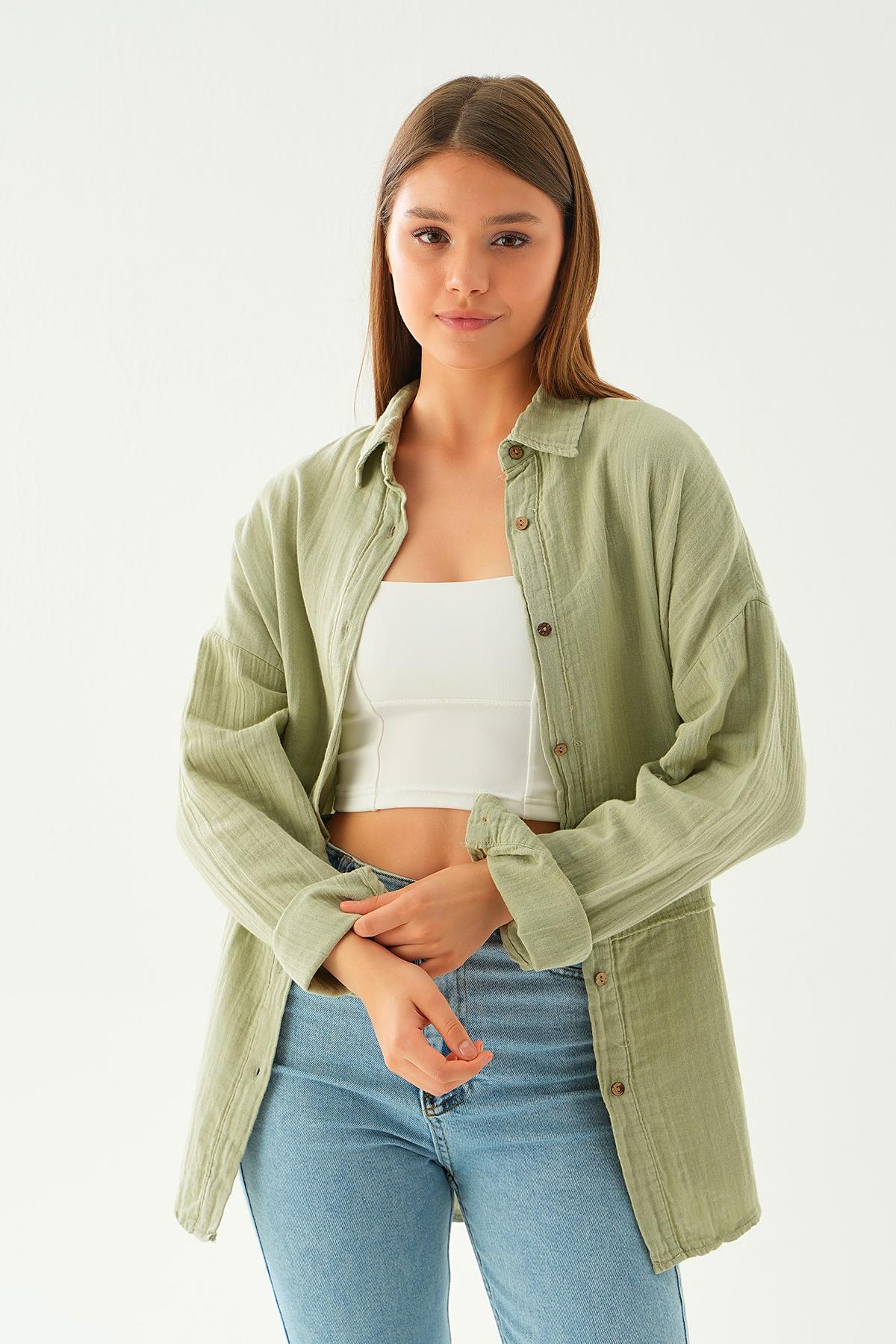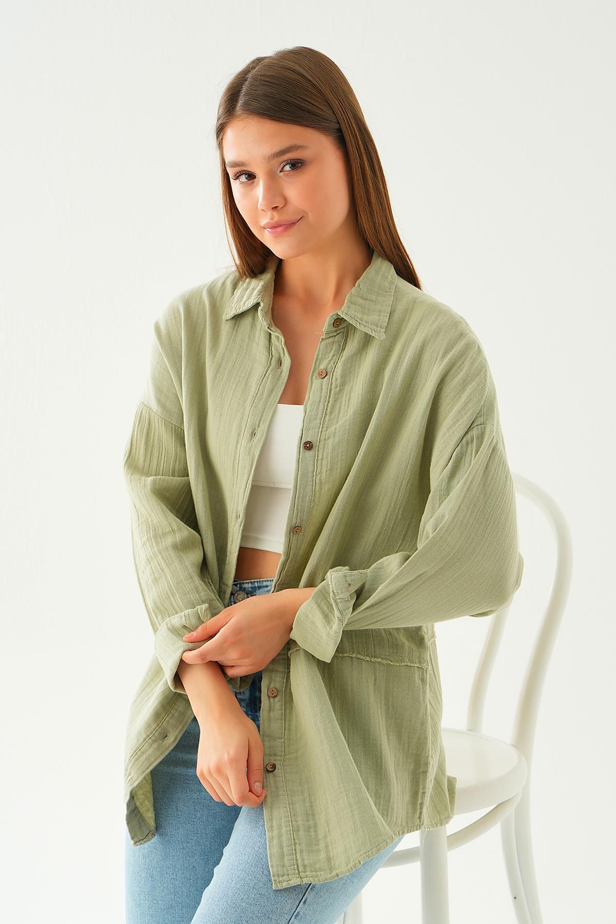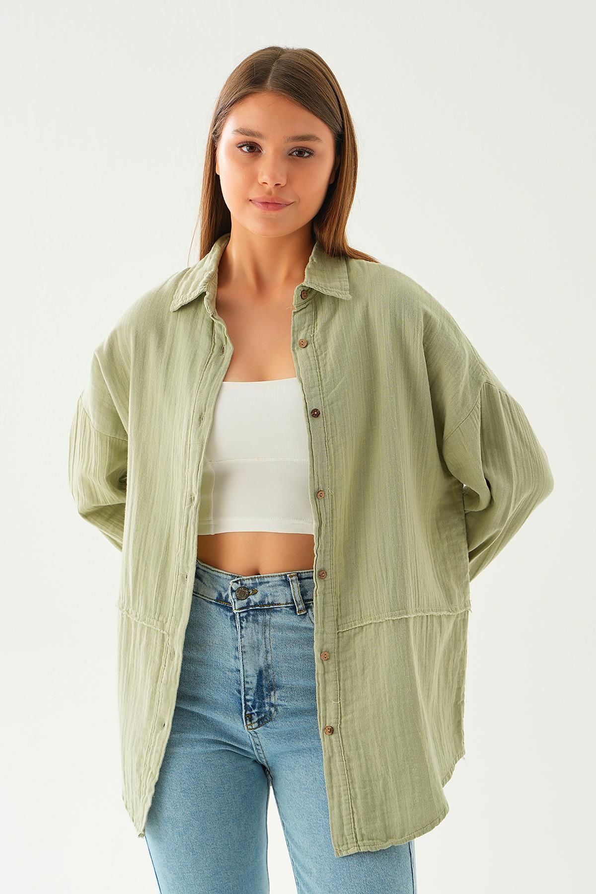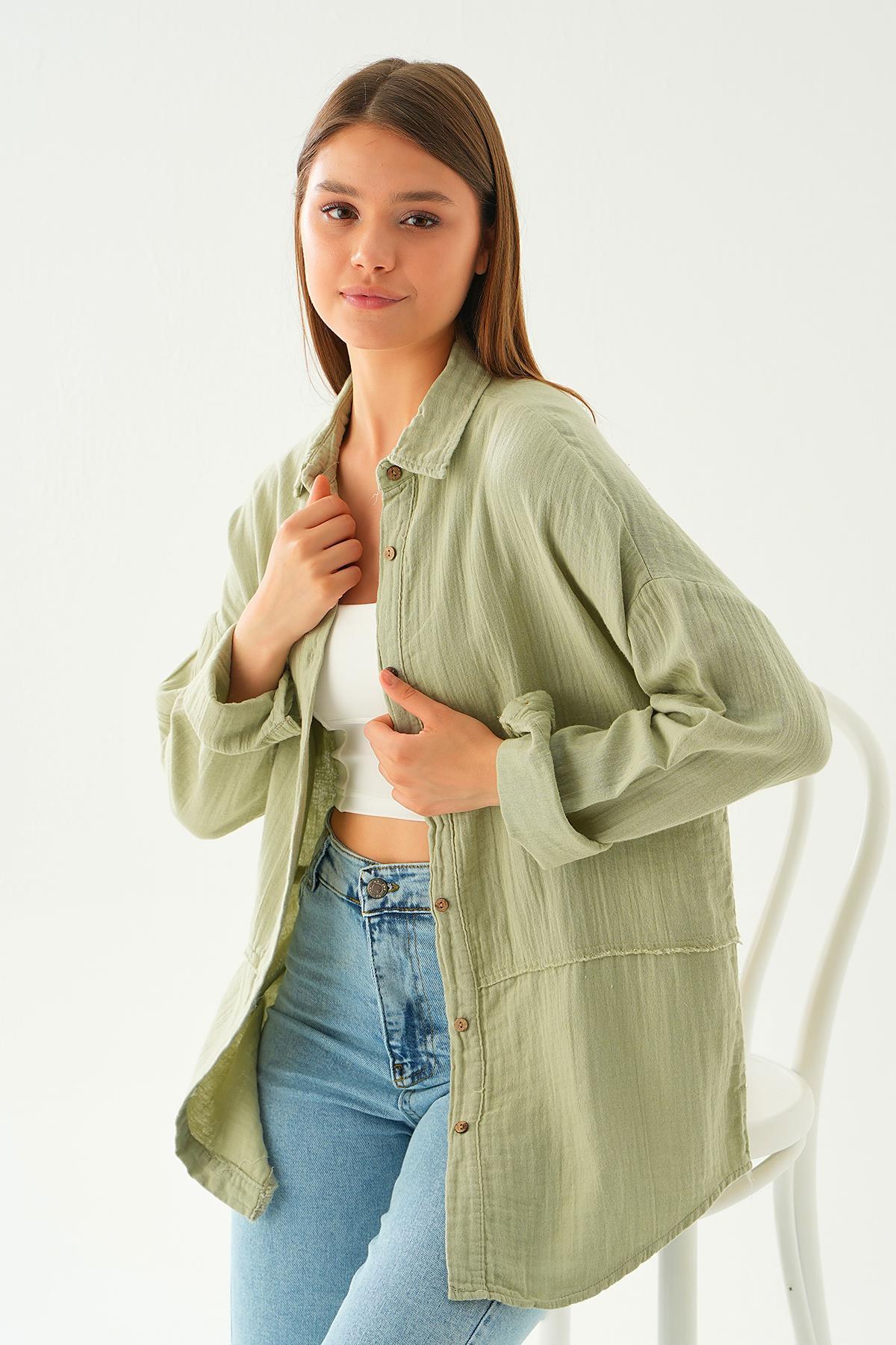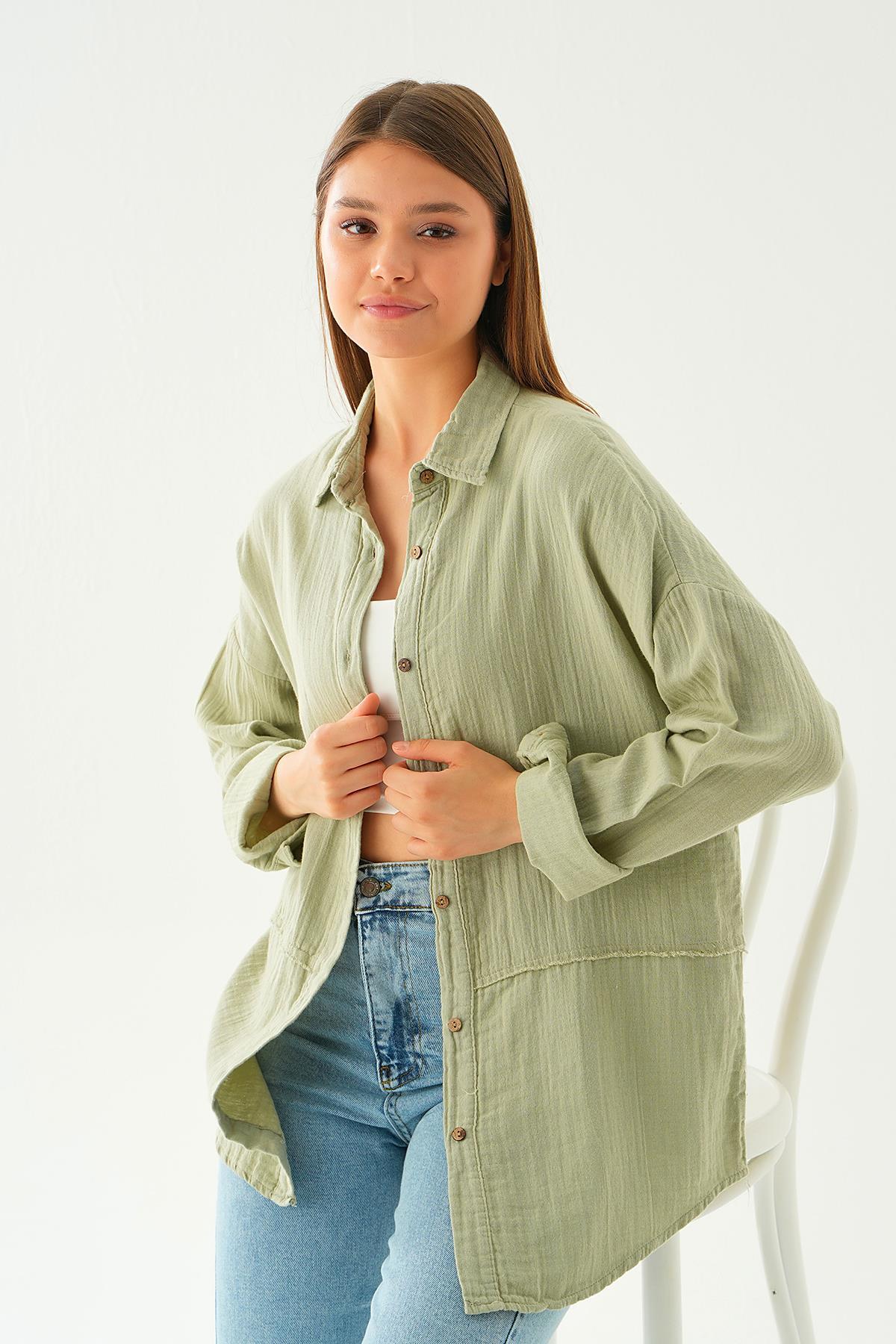 Çağla Yeşili Dikiş Detay Gömlek 1073
