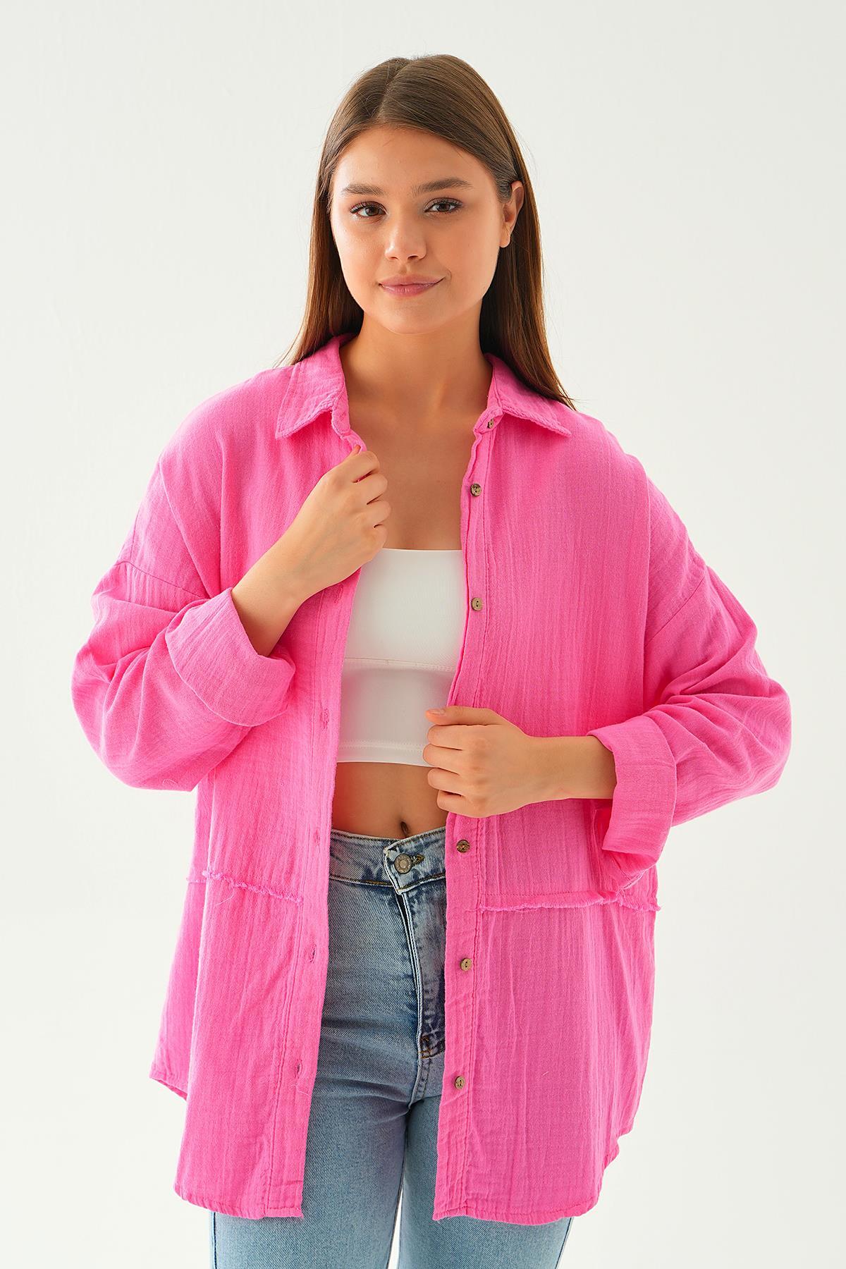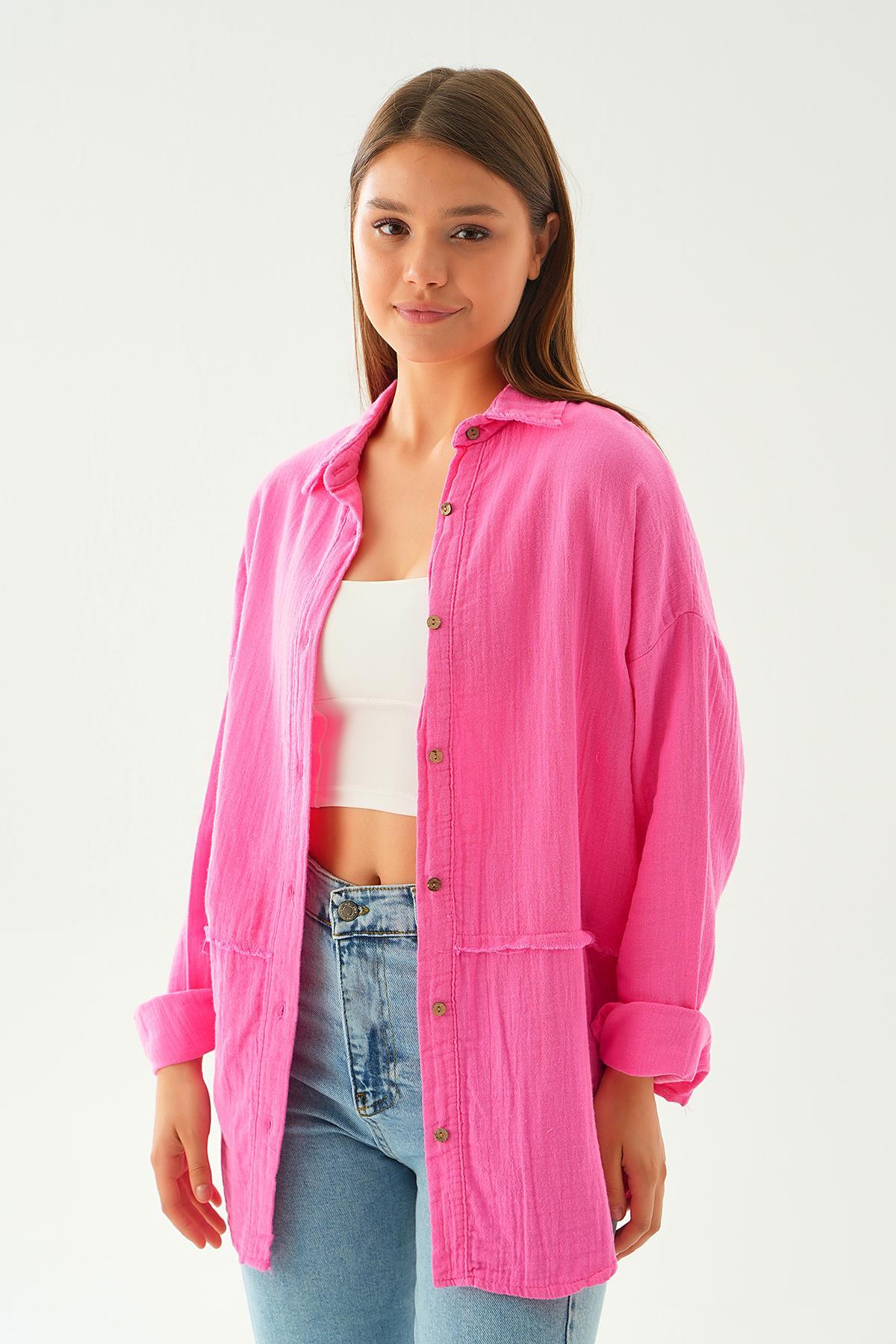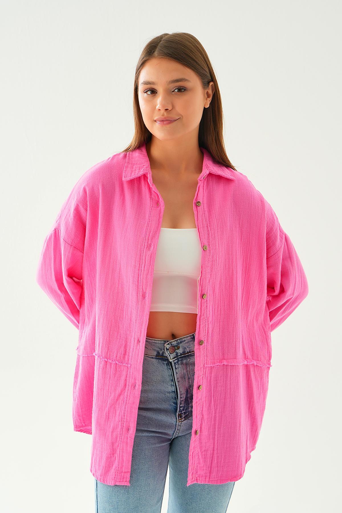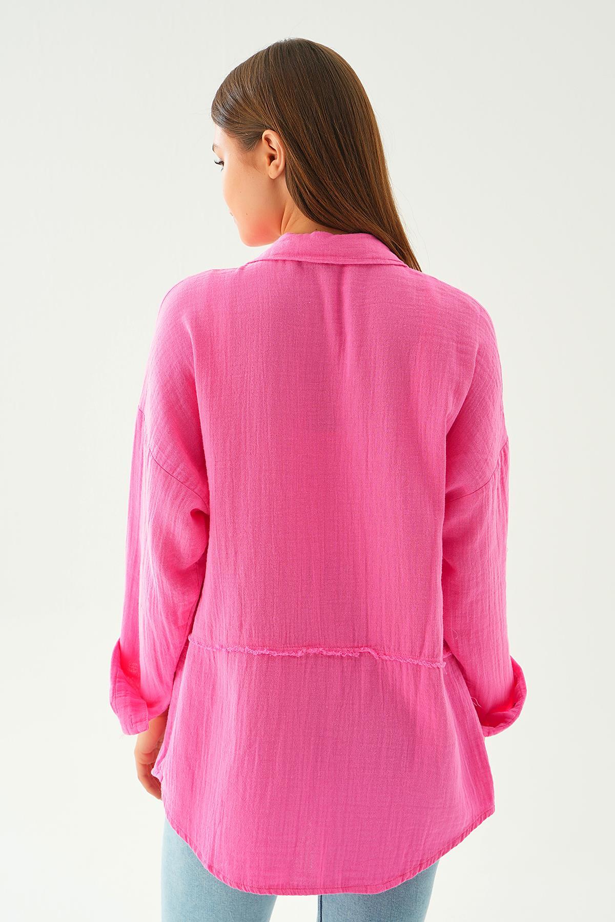 Fuşya Dikiş Detay Gömlek 1073