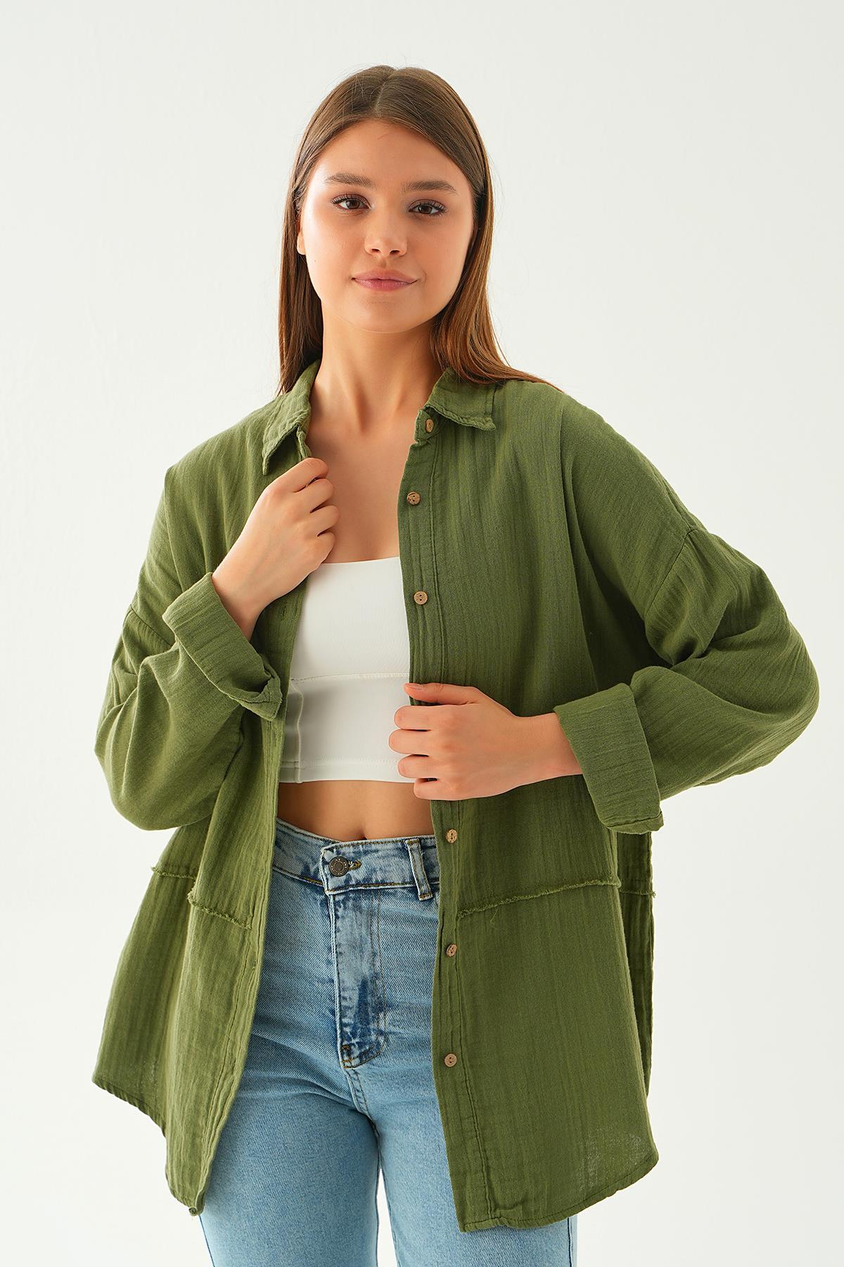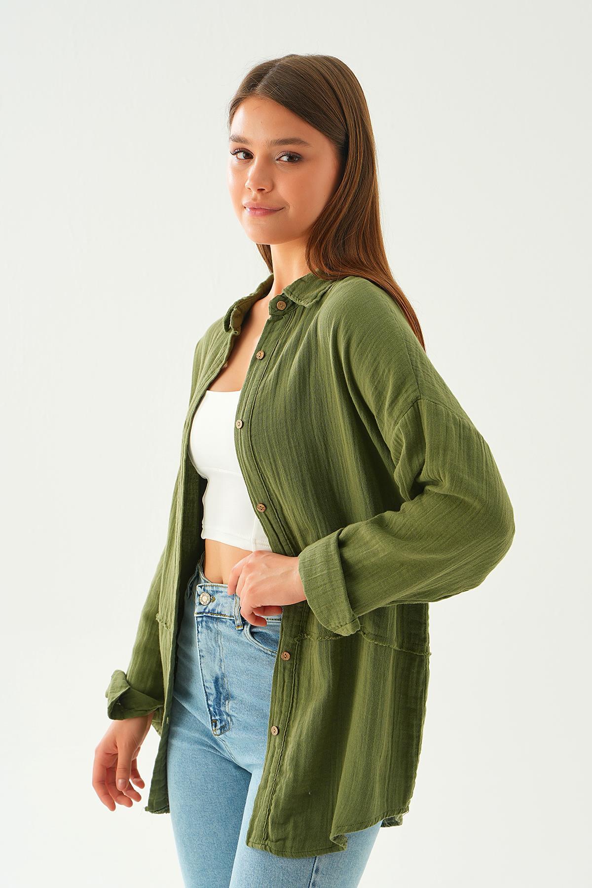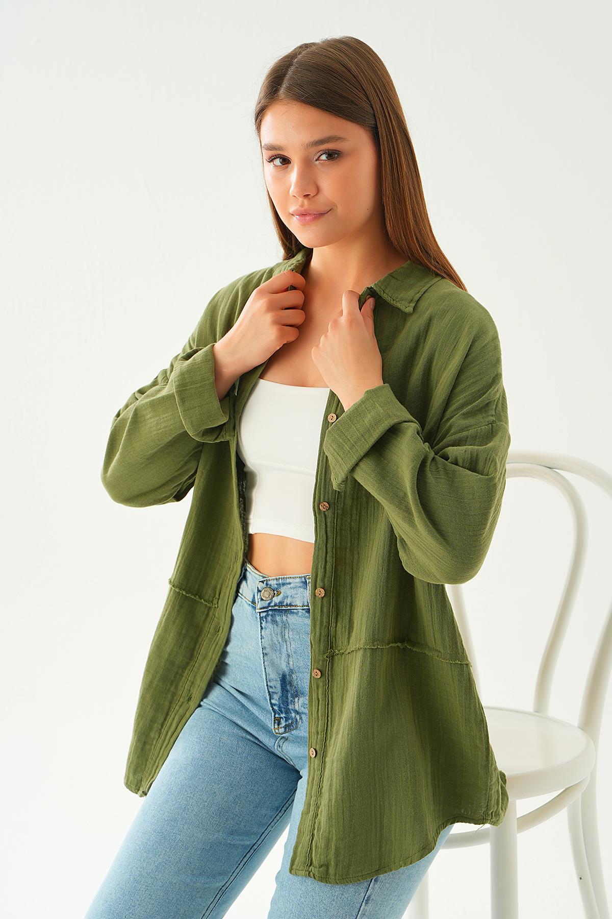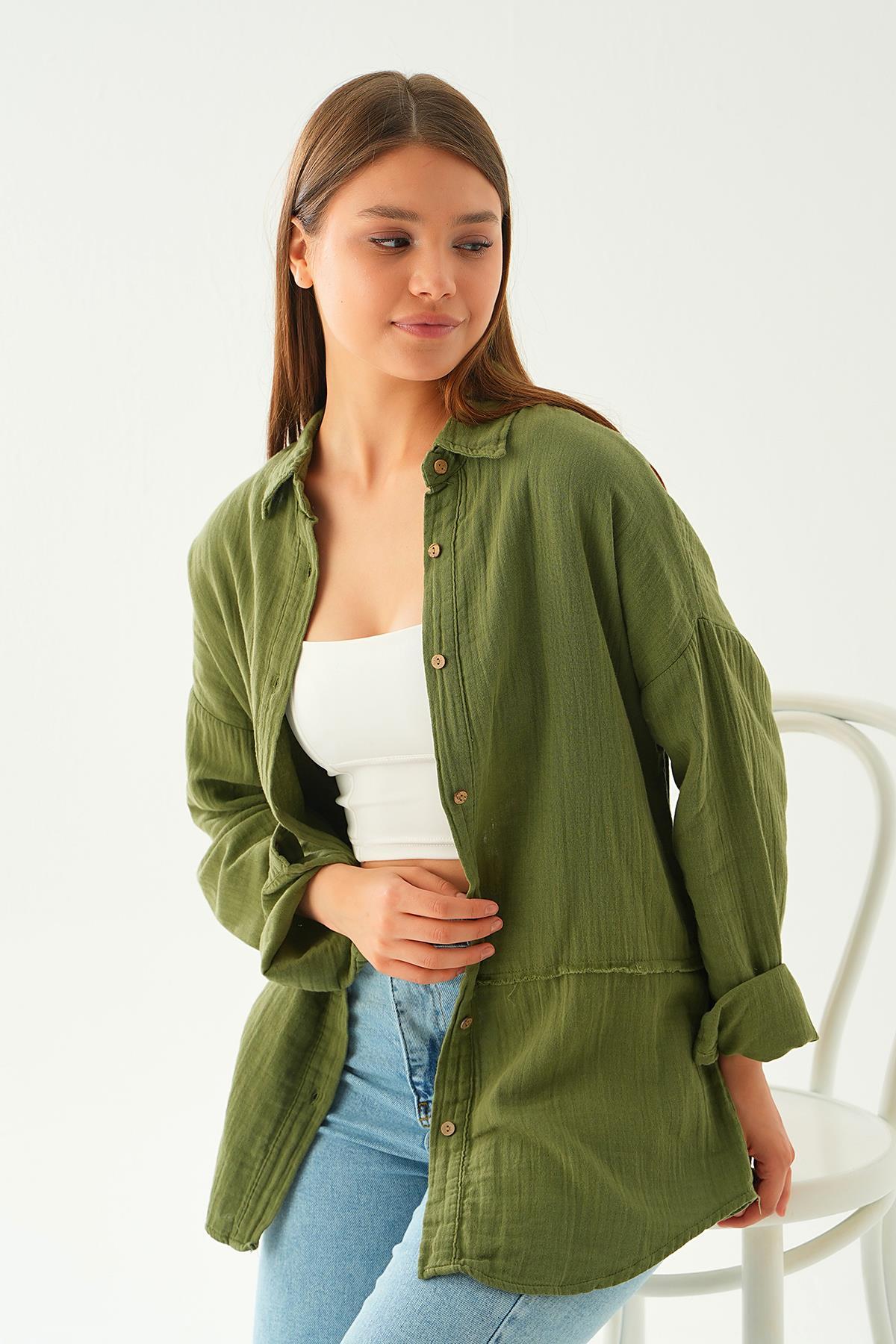Yeşil Çizgili Salaş Gömlek 5475 - RAYS Yeşil Çizgili Salaş Gömlek 5475 - RAYS (1)