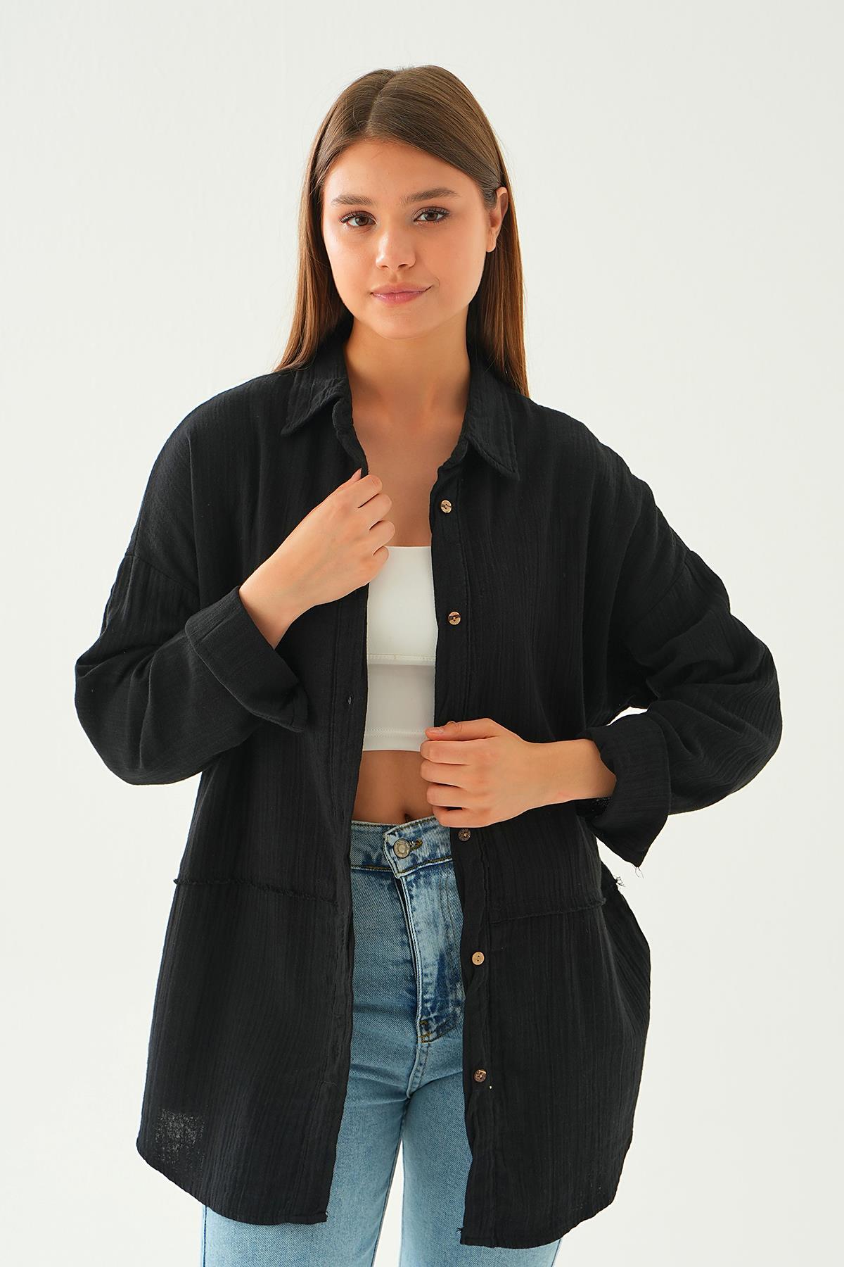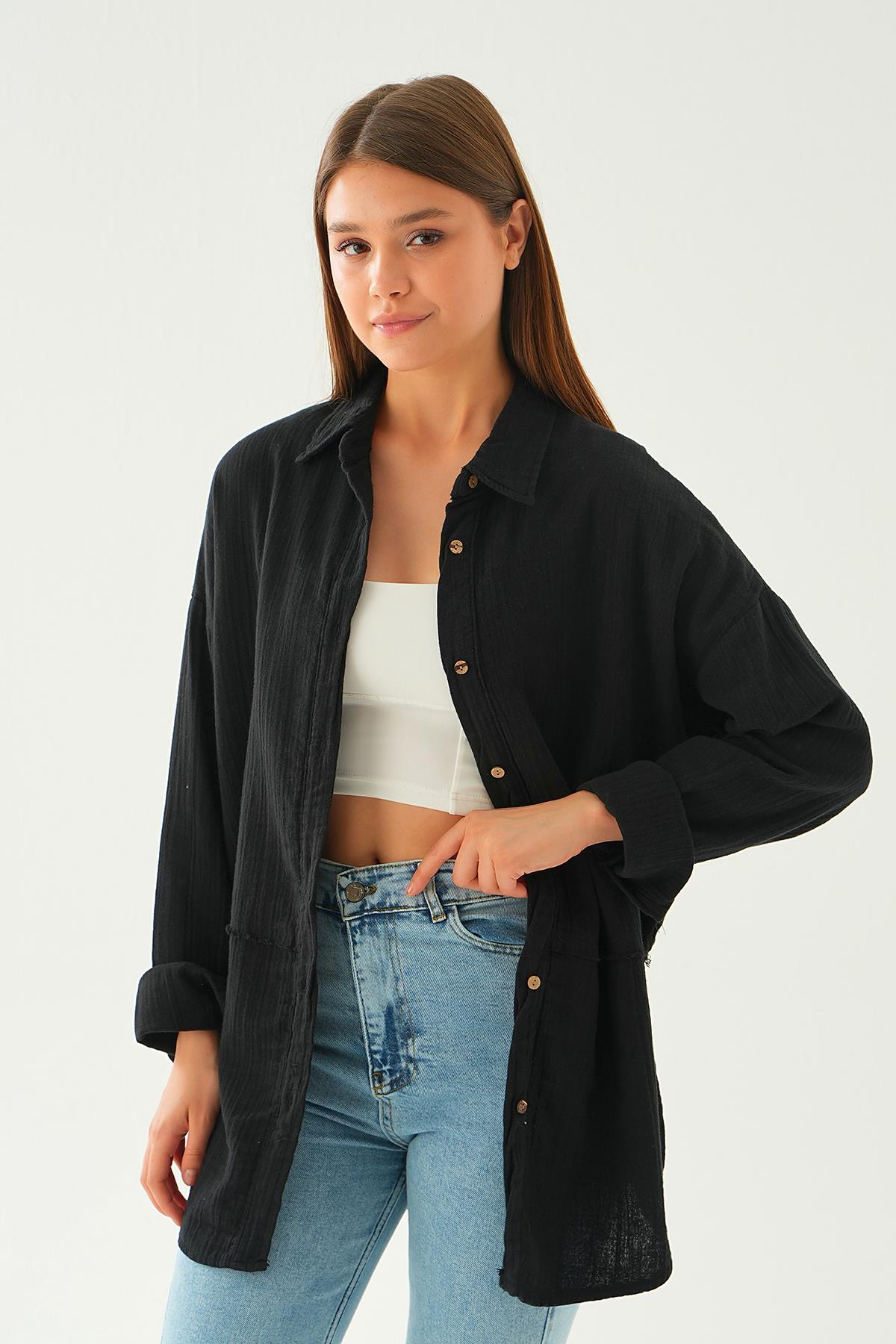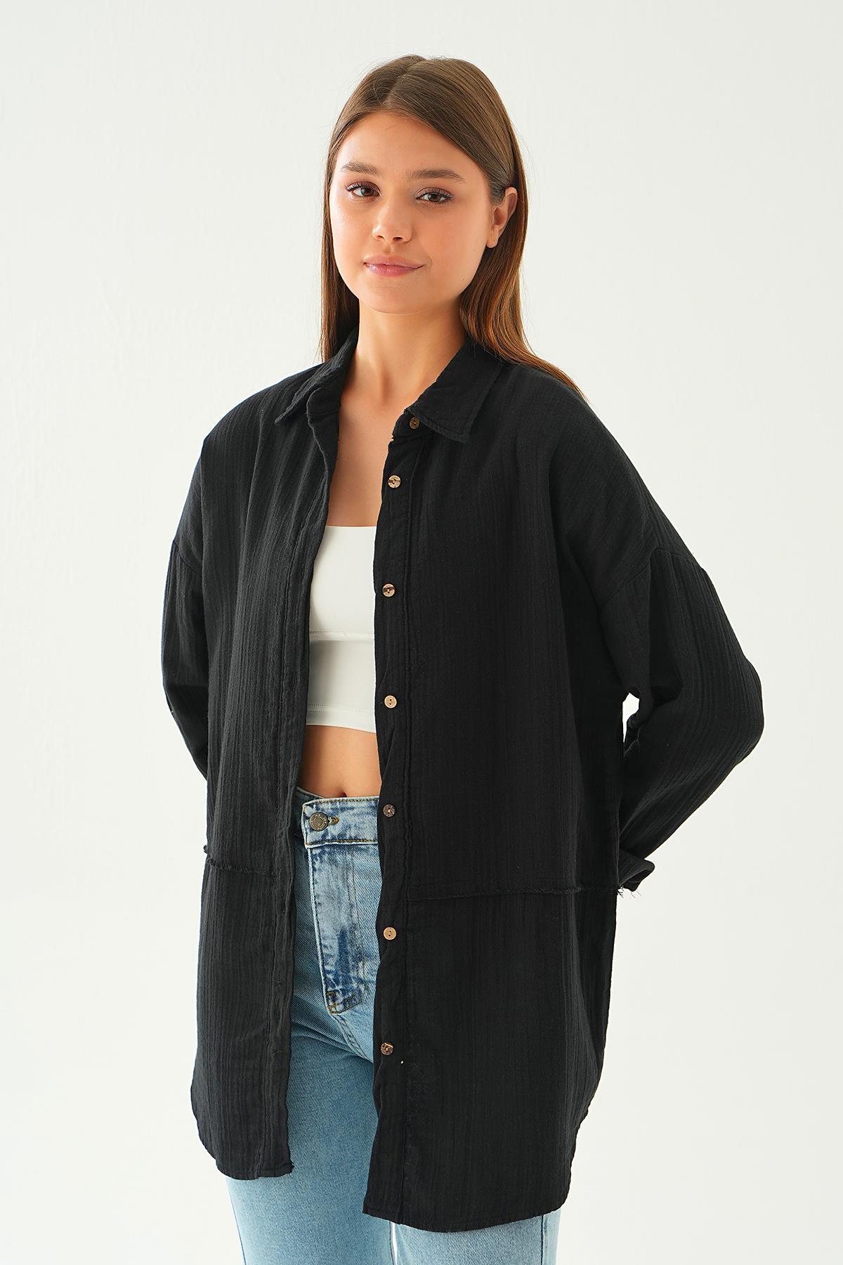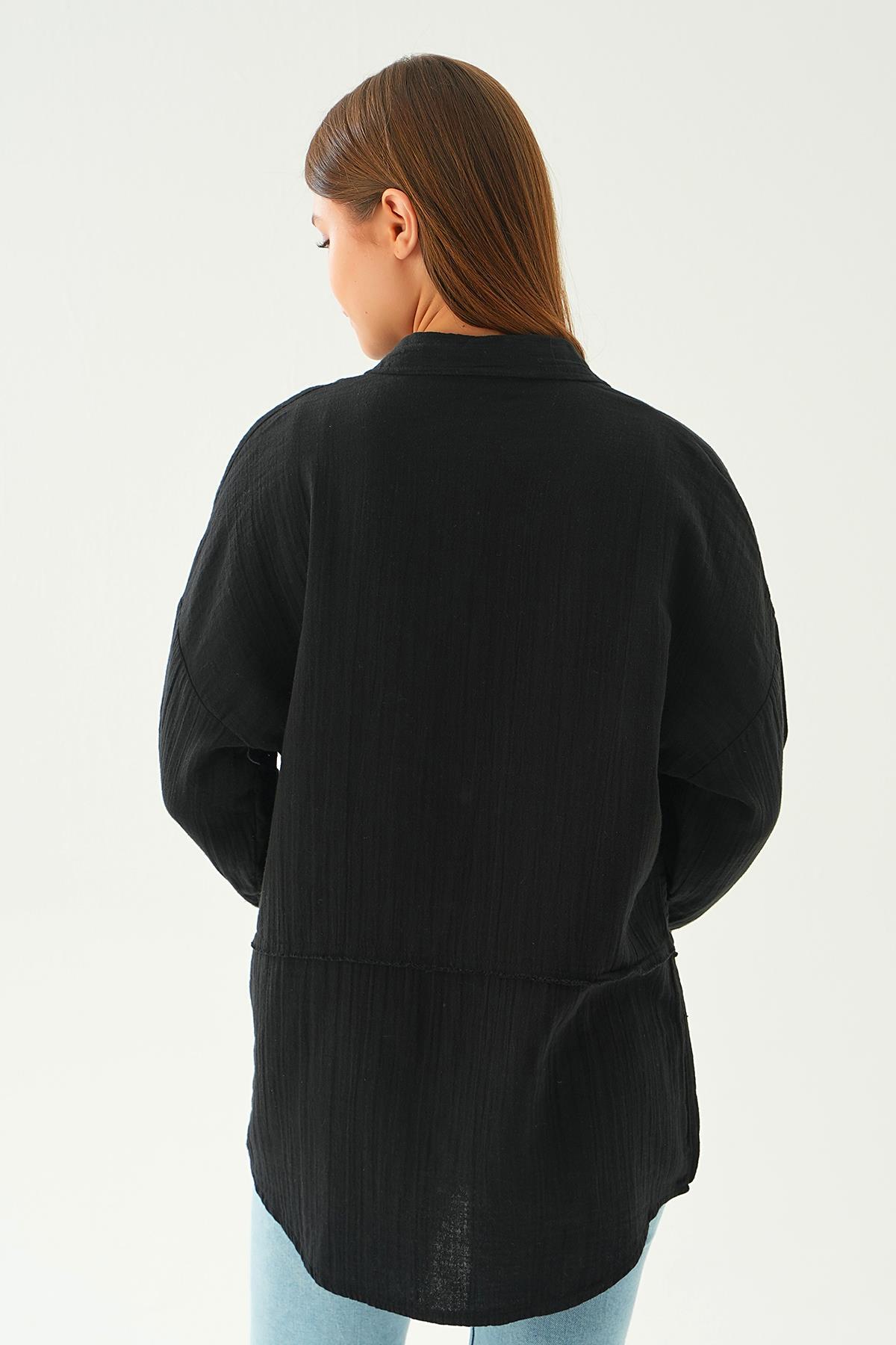 Siyah Dikiş Detay Gömlek 1073