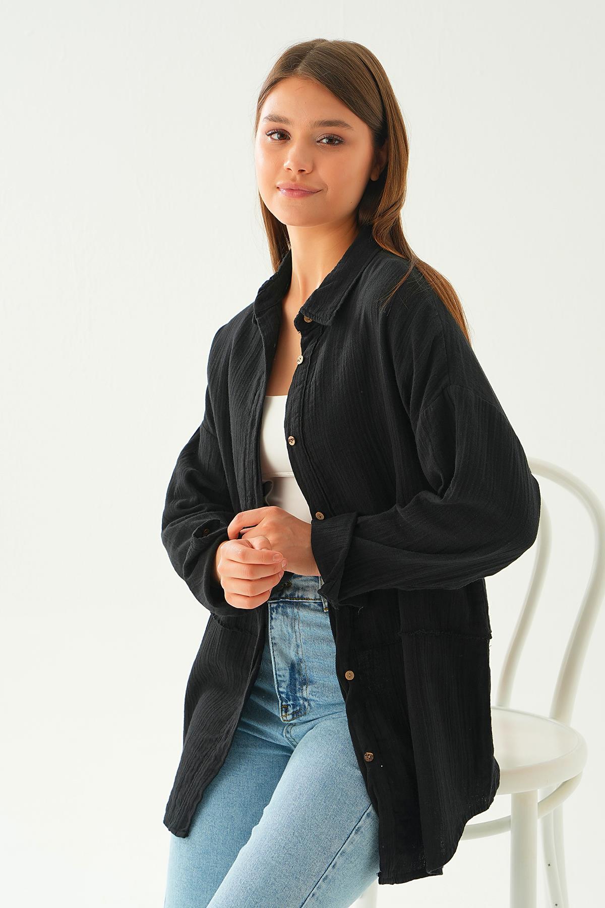 Siyah Çizgili Salaş Gömlek 5475