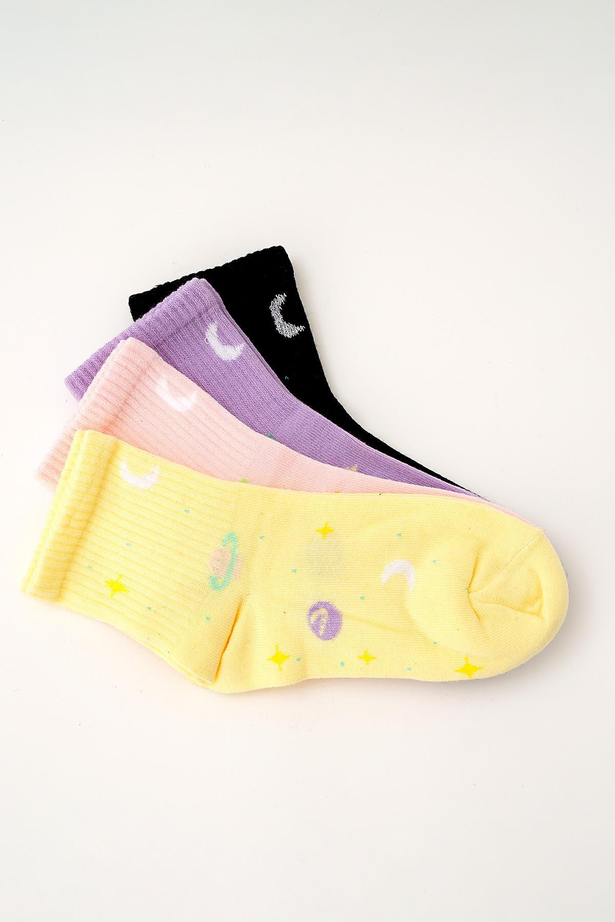 Renkli 4’lü Gezegen Baskı Yarım Konç Çorap 1073