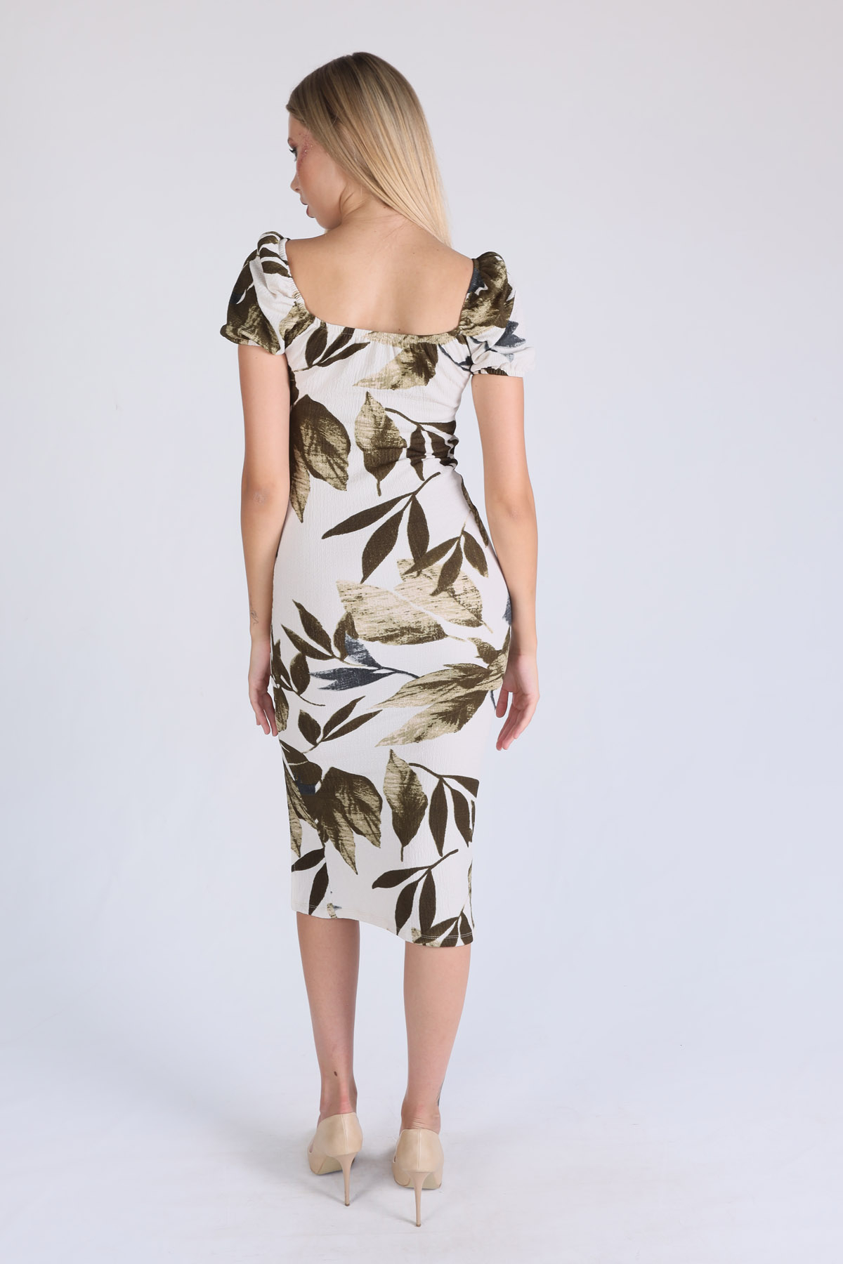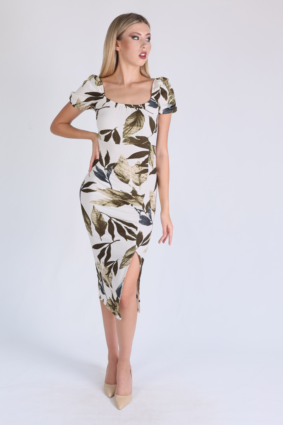 Beyaz Kemerli Çiçek Desenli Elbise 35559 - RAYS Beyaz Kemerli Çiçek Desenli Elbise 35559 - RAYS (1)