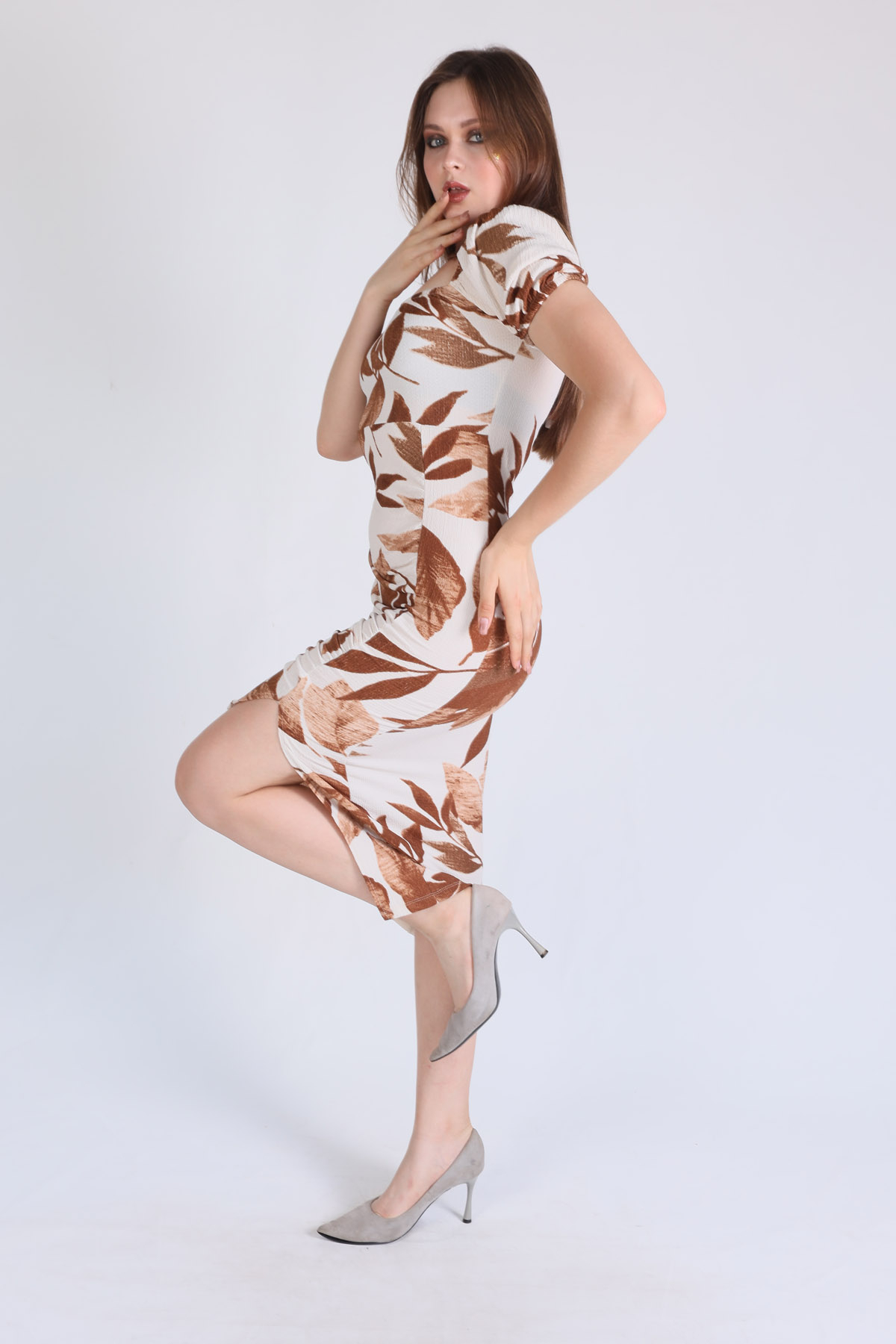 Kahve Kemerli Çiçek Desenli Elbise 35559 - RAYS Kahve Kemerli Çiçek Desenli Elbise 35559 - RAYS (1)