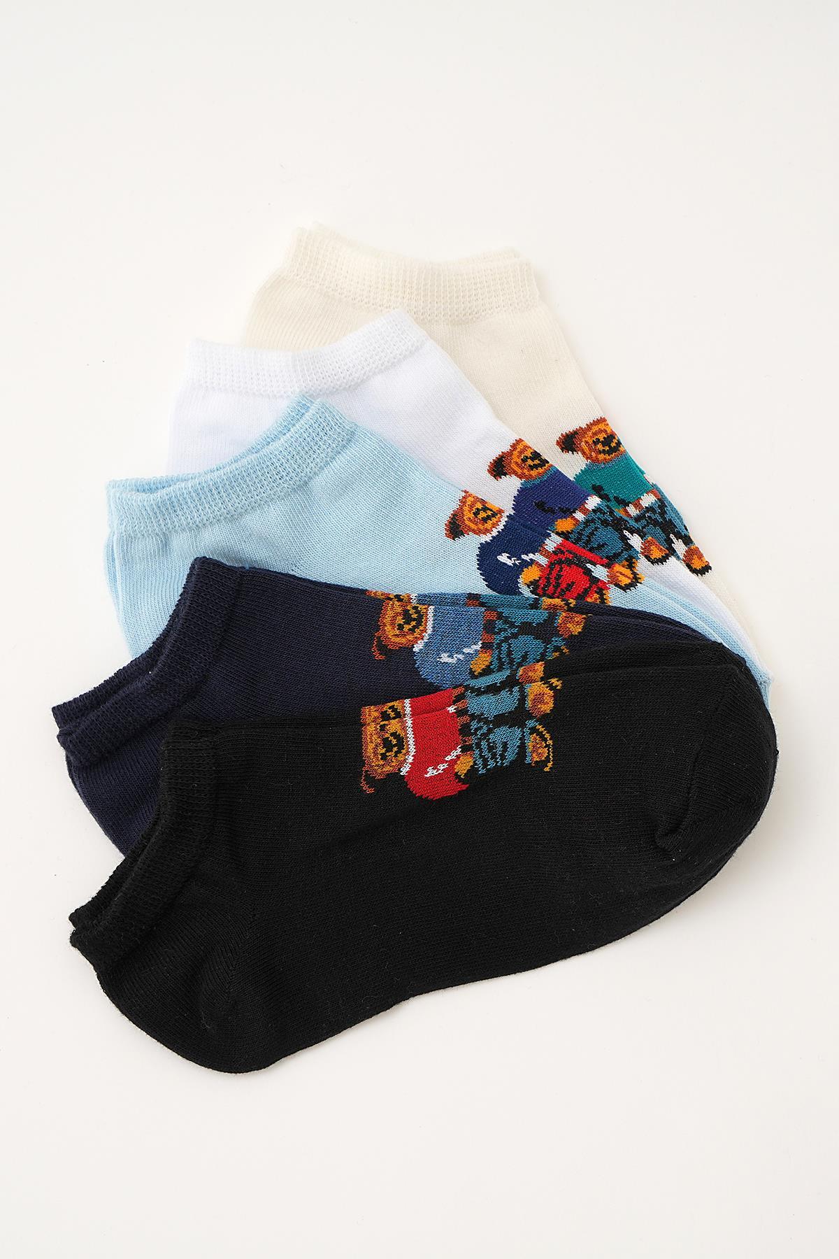 Renkli Ayıcık Desen 5'li Babet Çorap 1082