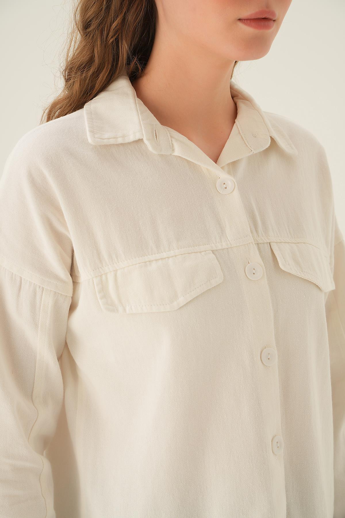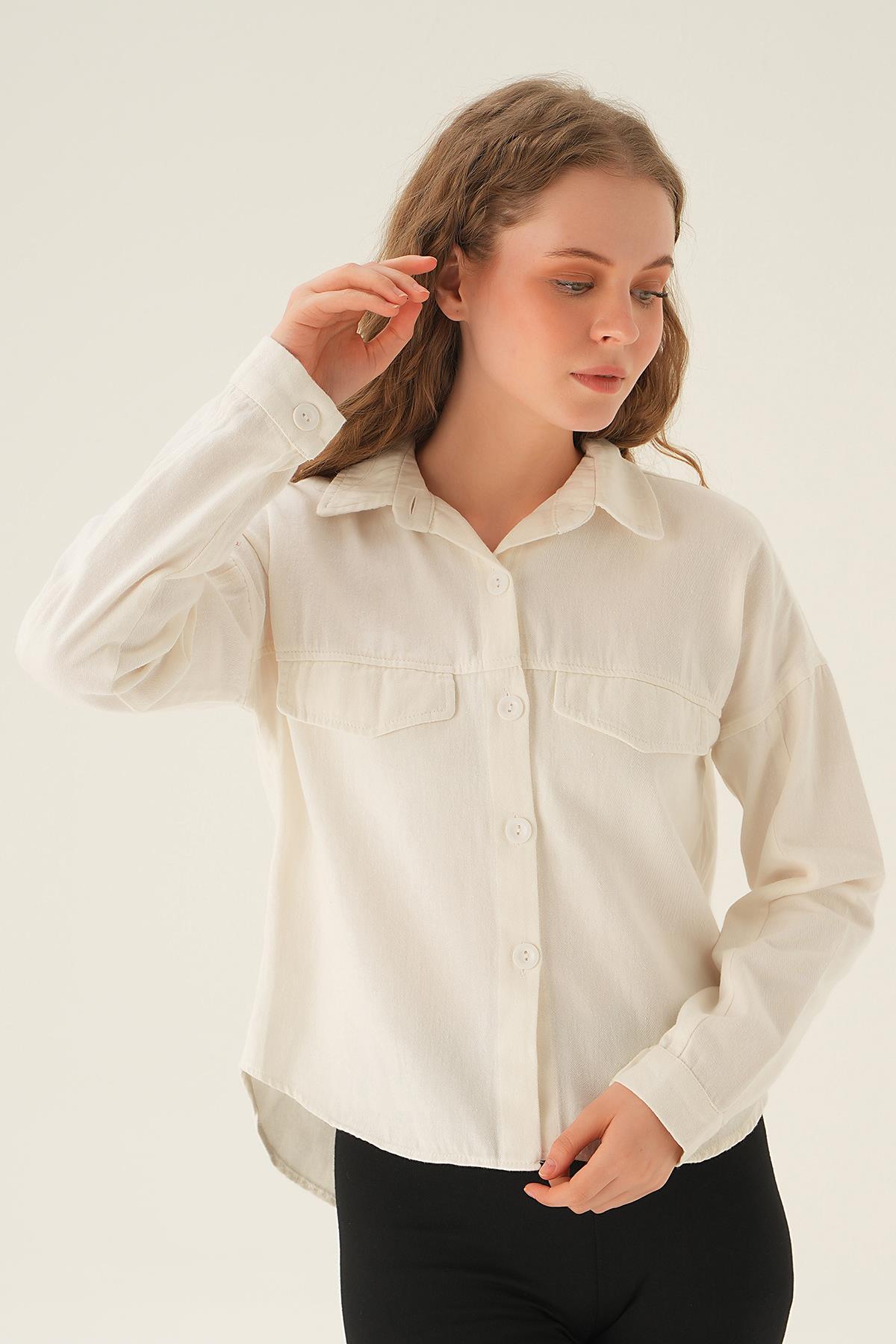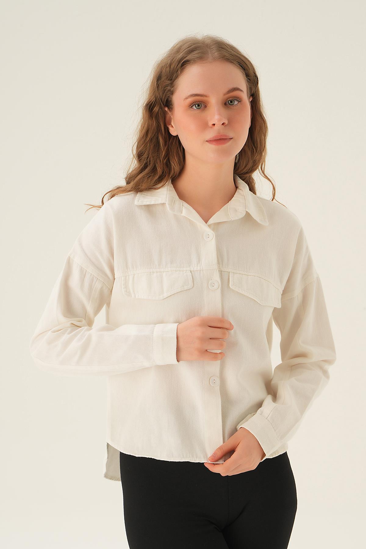 Beyaz Cep Kapak Detay Kısa Gömlek 10834