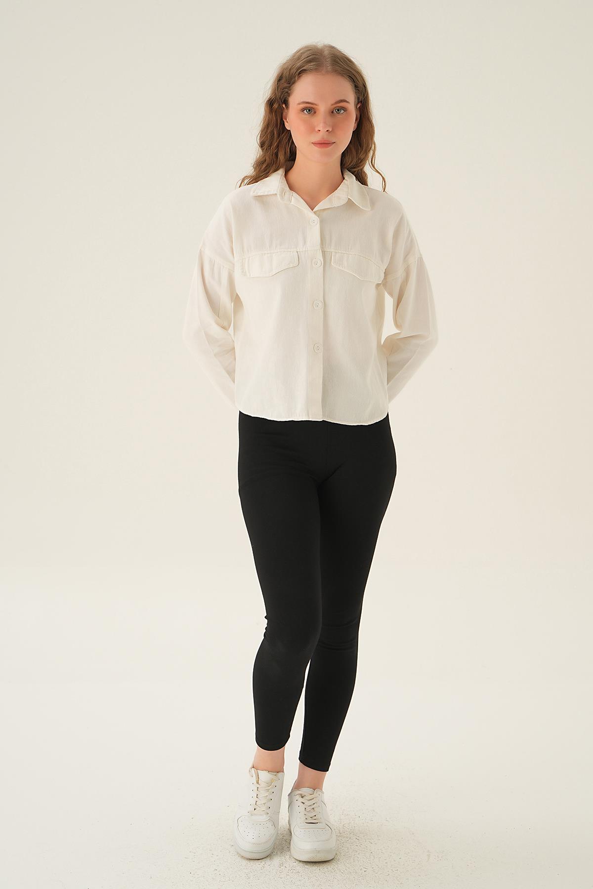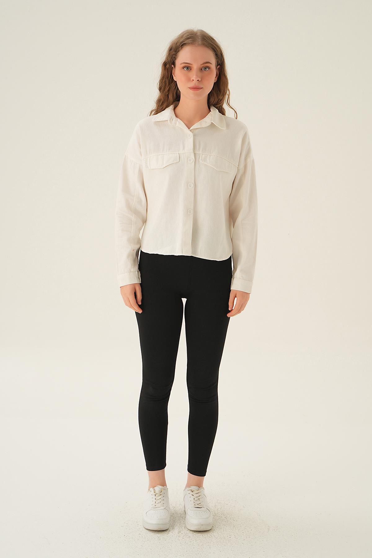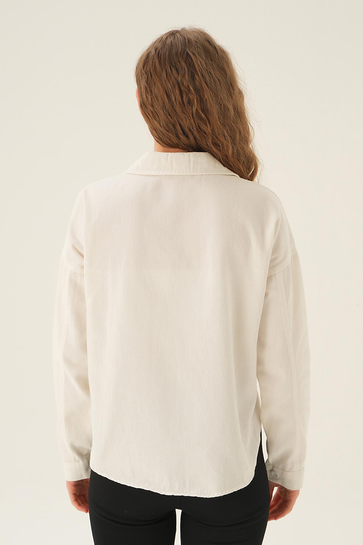 Beyaz Cep Kapak Detay Kısa Gömlek 10834