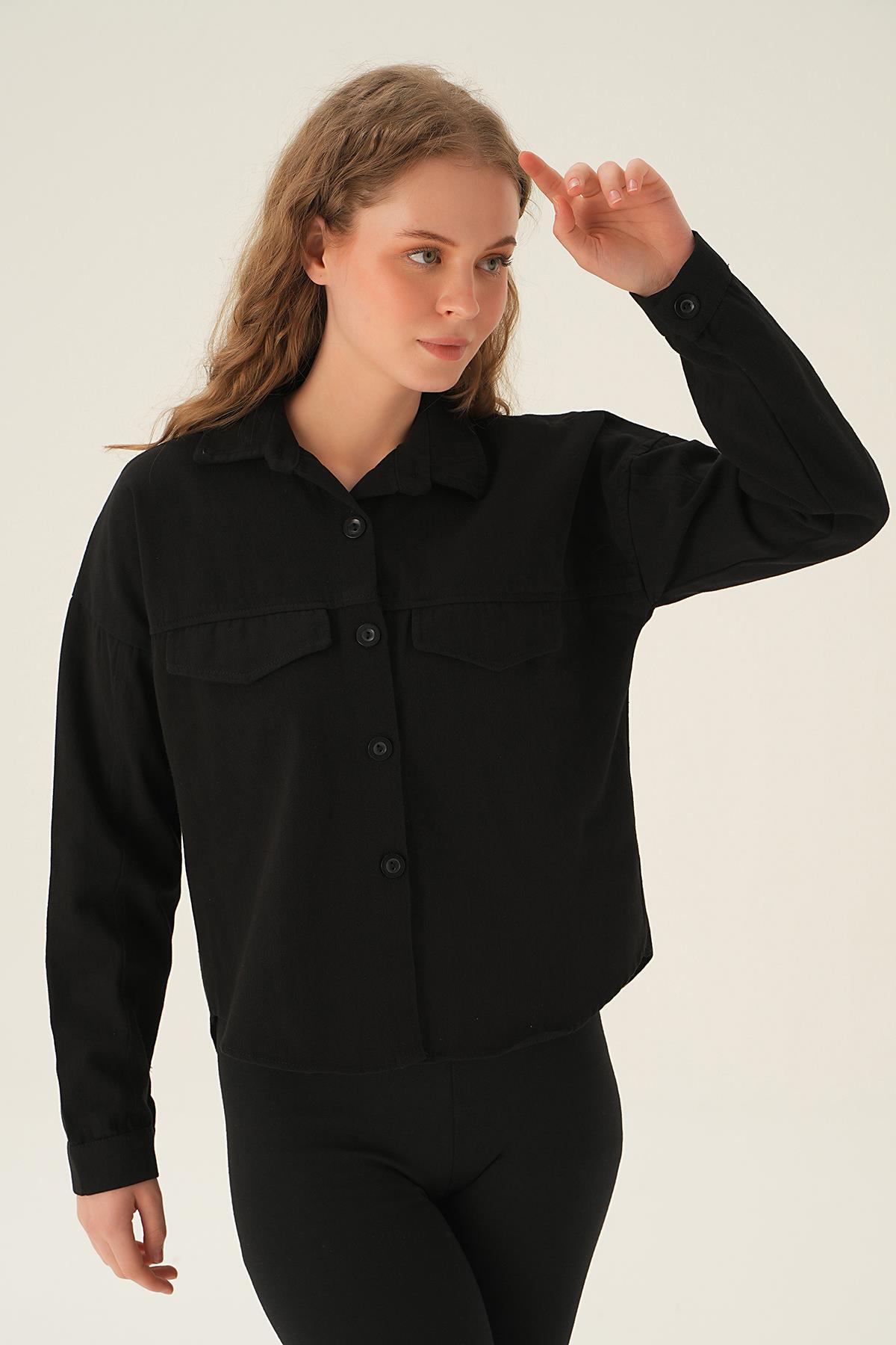 251152 Düğmeli Klasik Gömlek Siyah - RAYS