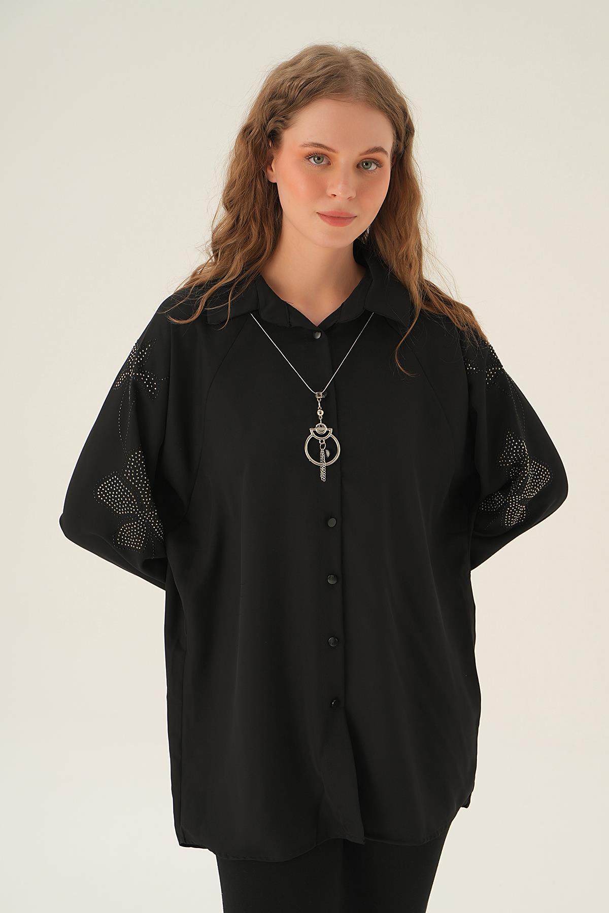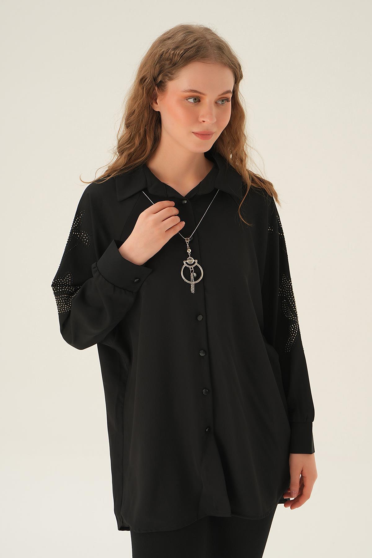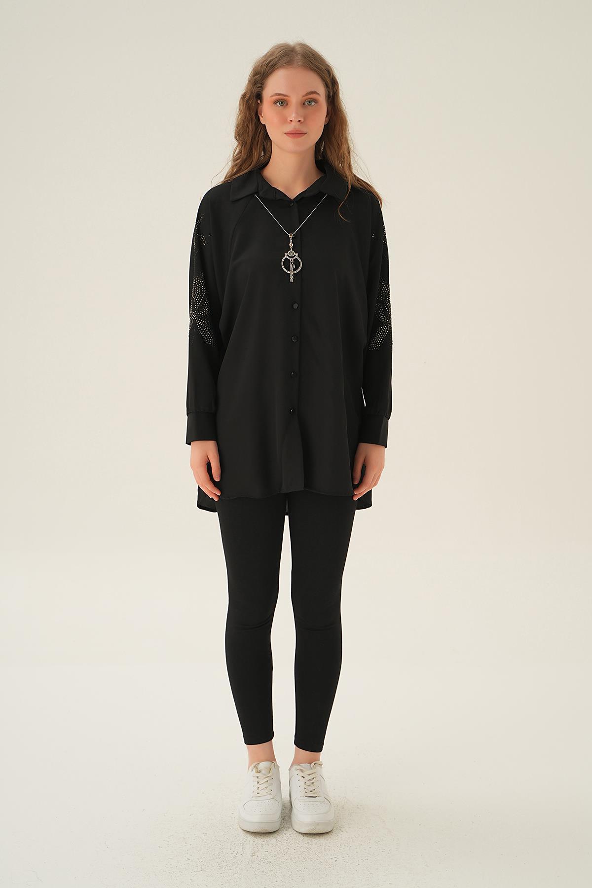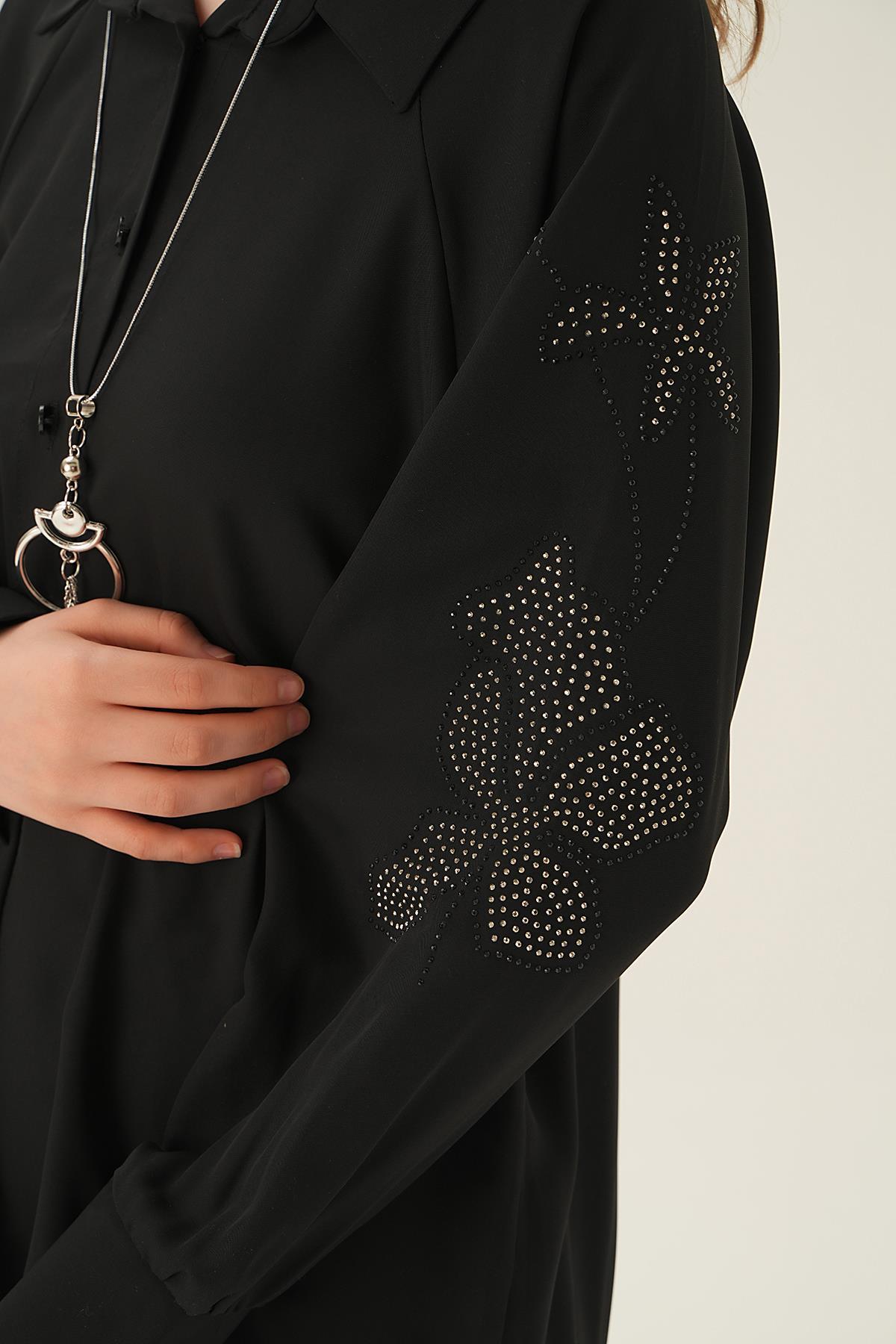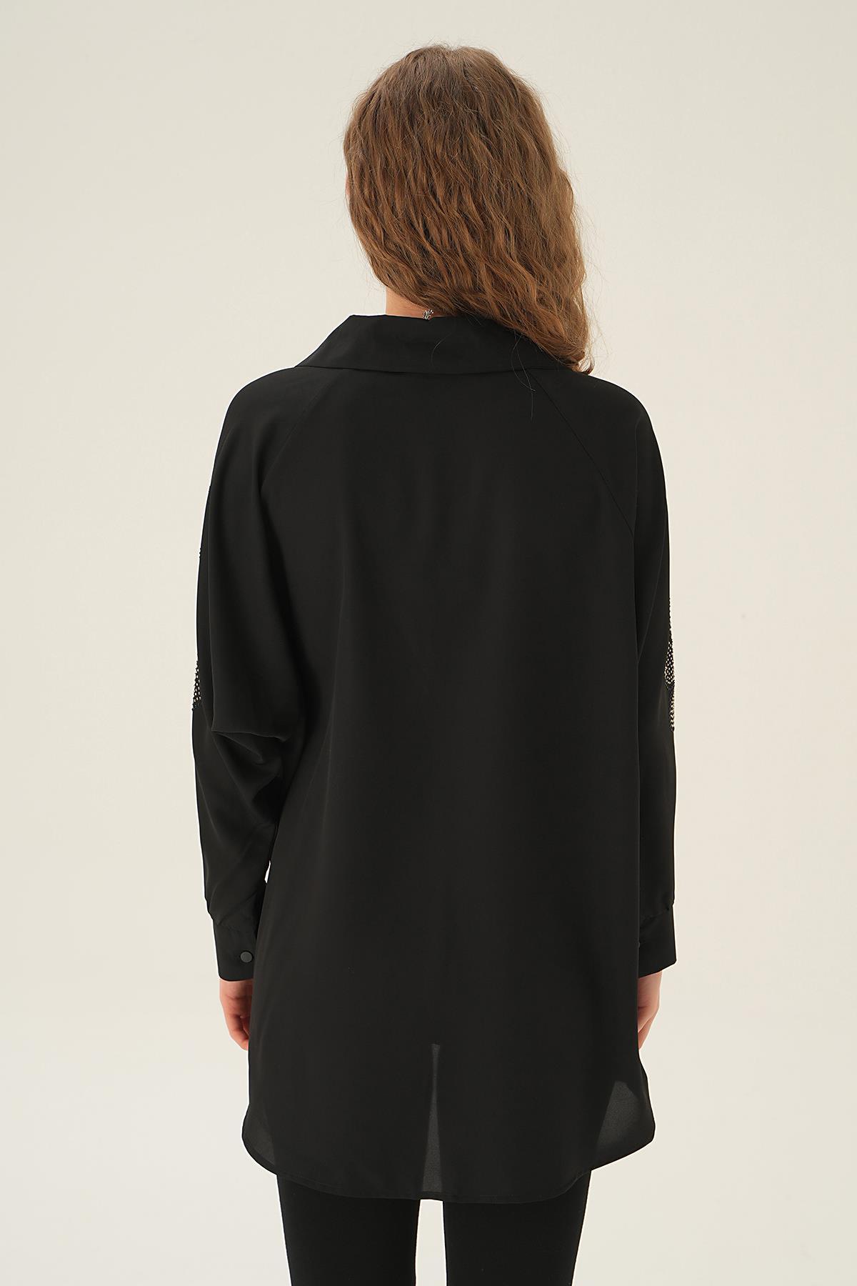 Siyah Kol Nakış Detay Tunik 10848