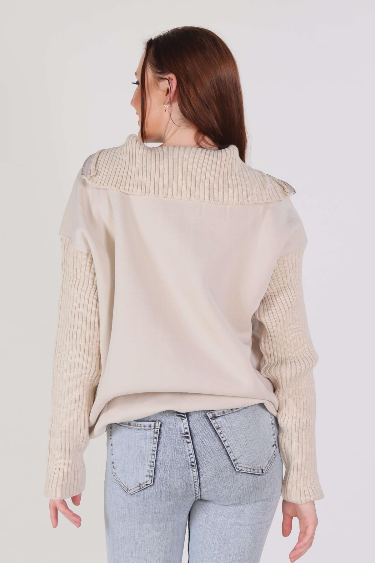Kahve Ön Fermuarlı Uzun Kol Sweat 8334A