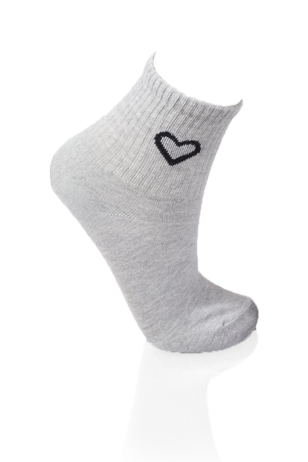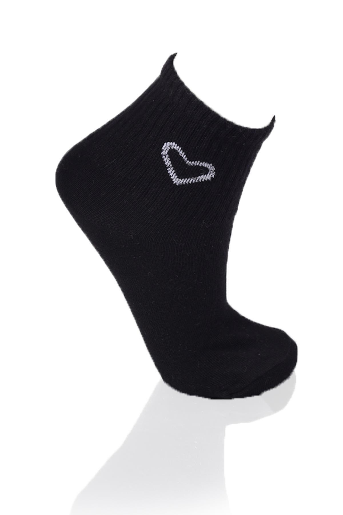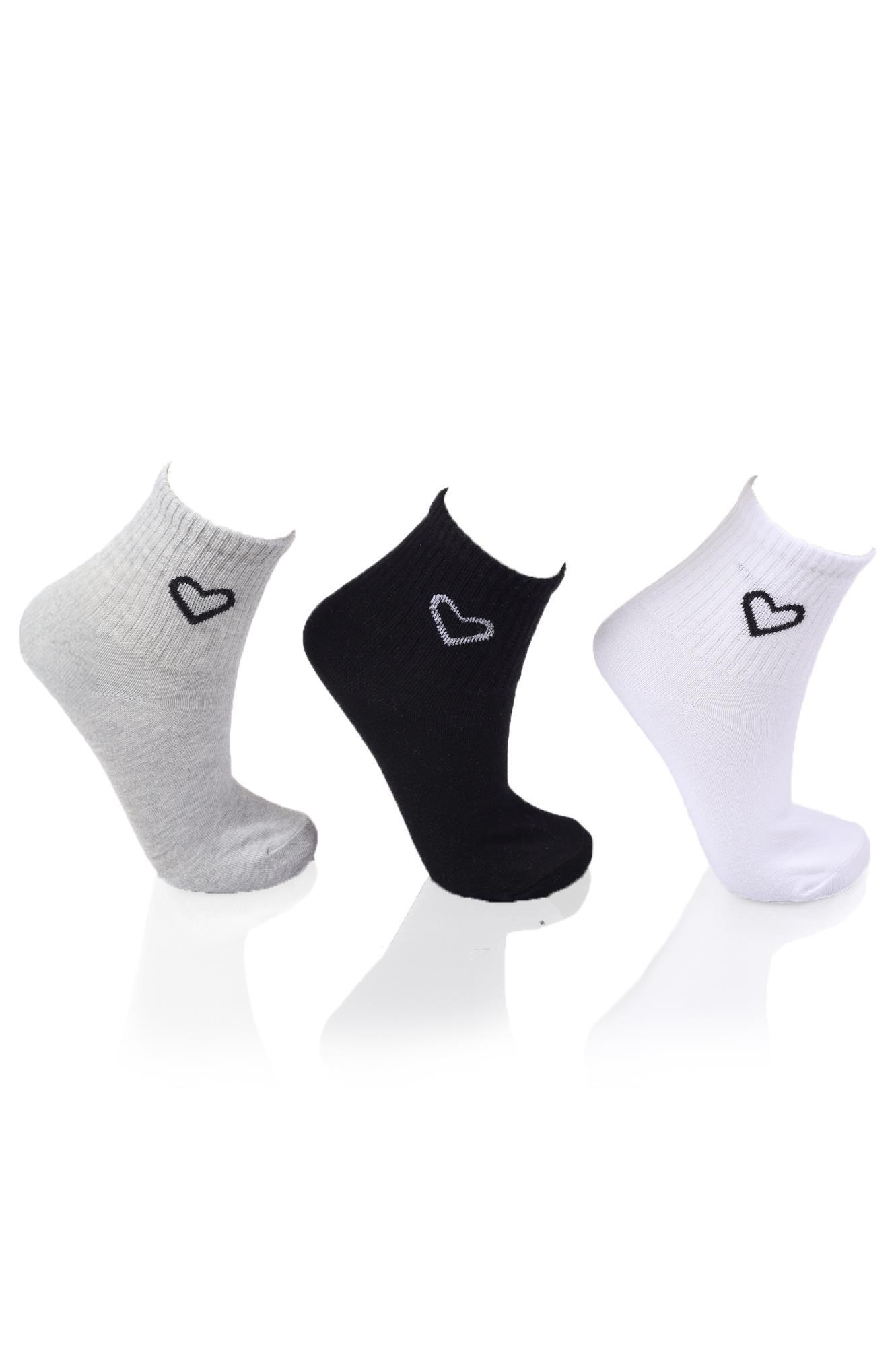 1100 3'lü Kalp Detay Tenis Yarım Konç Çorap Siyah-Beyaz-Gri