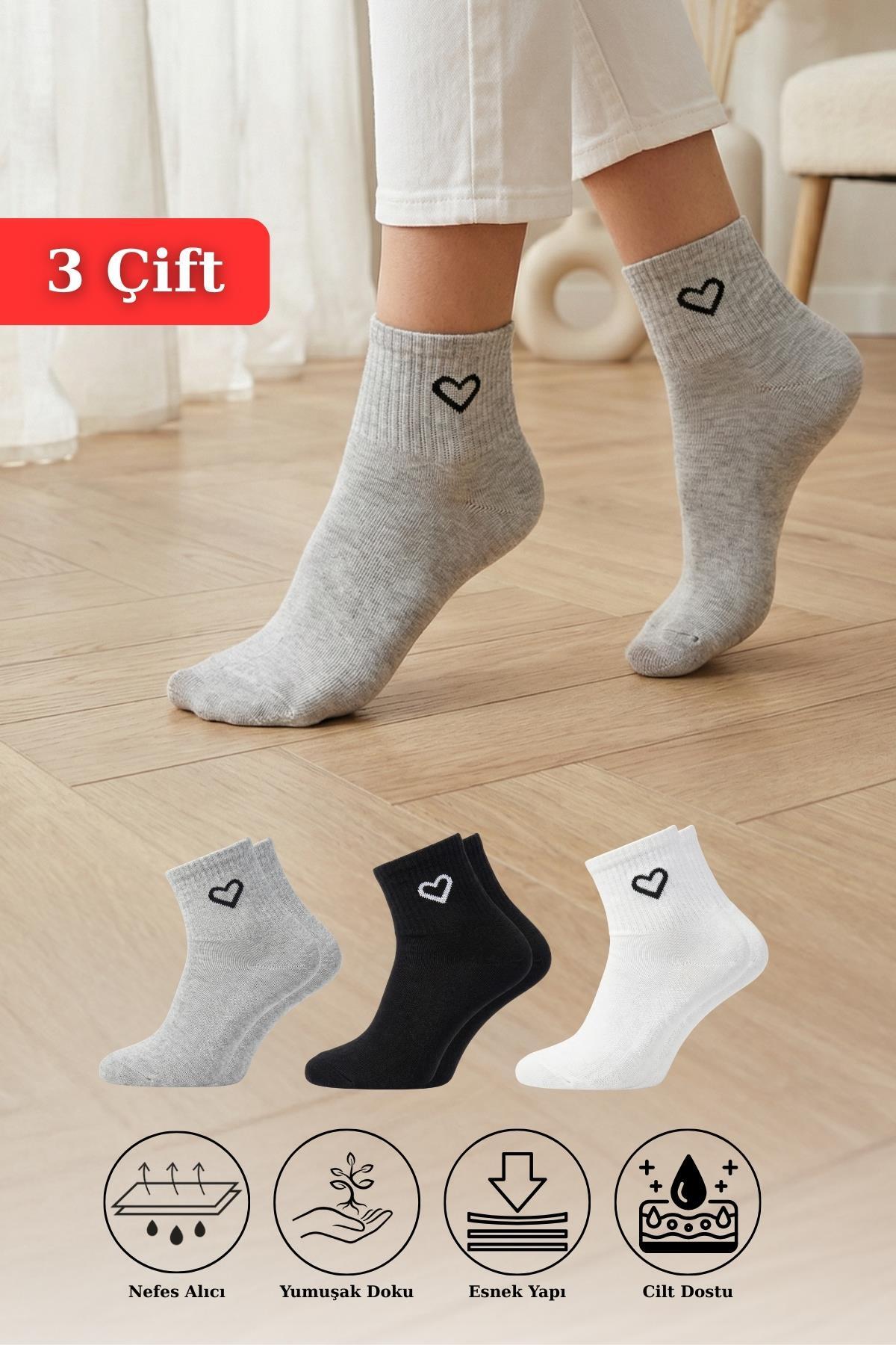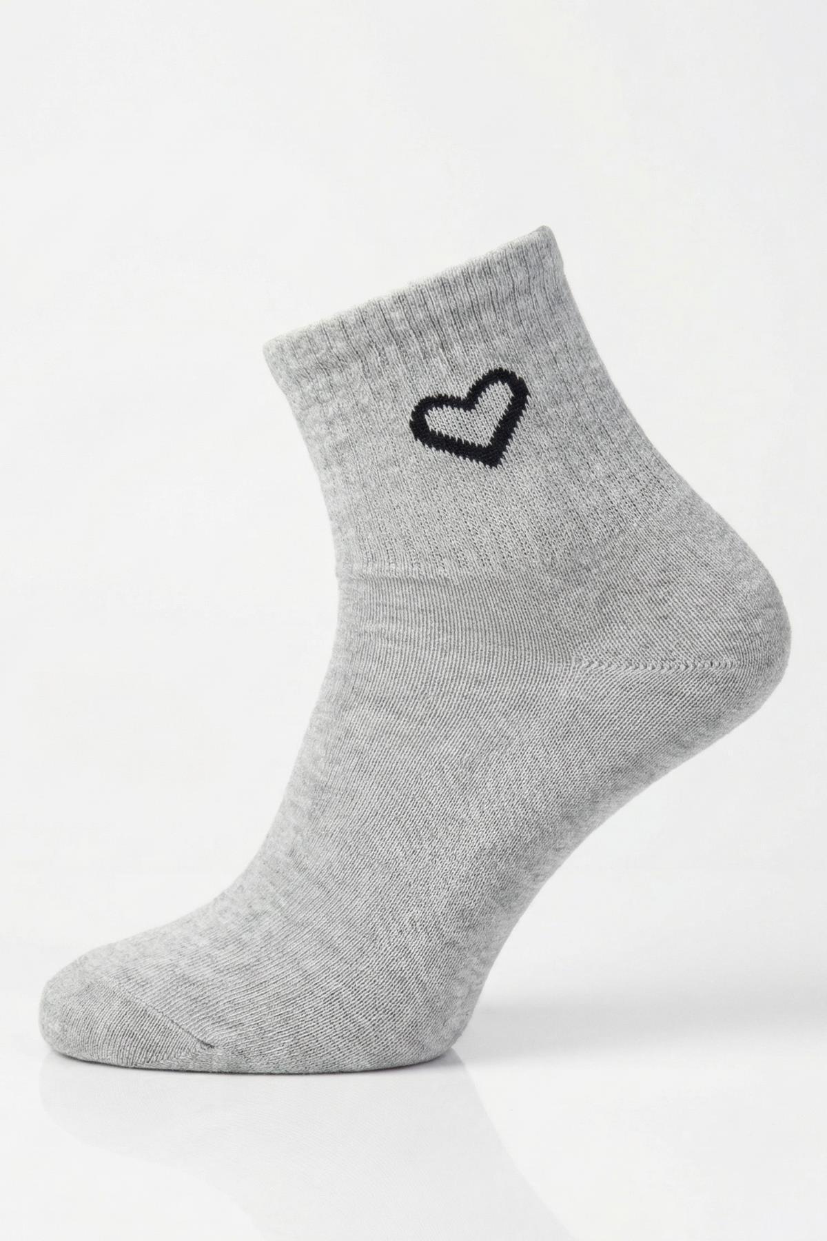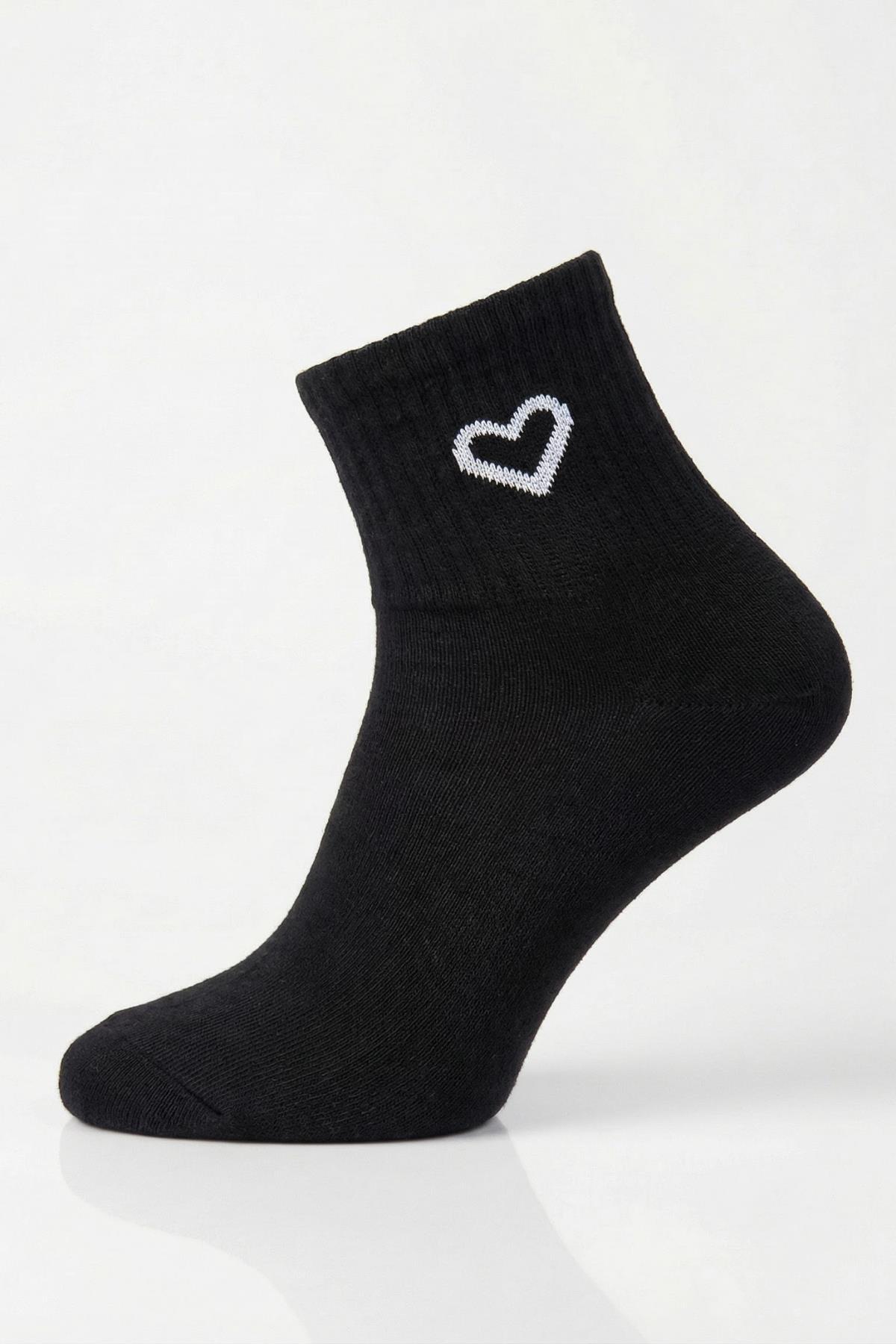 Siyah-Beyaz-Gri 3'lü Kalp Detay Tenis Yarım Konç Çorap 1100