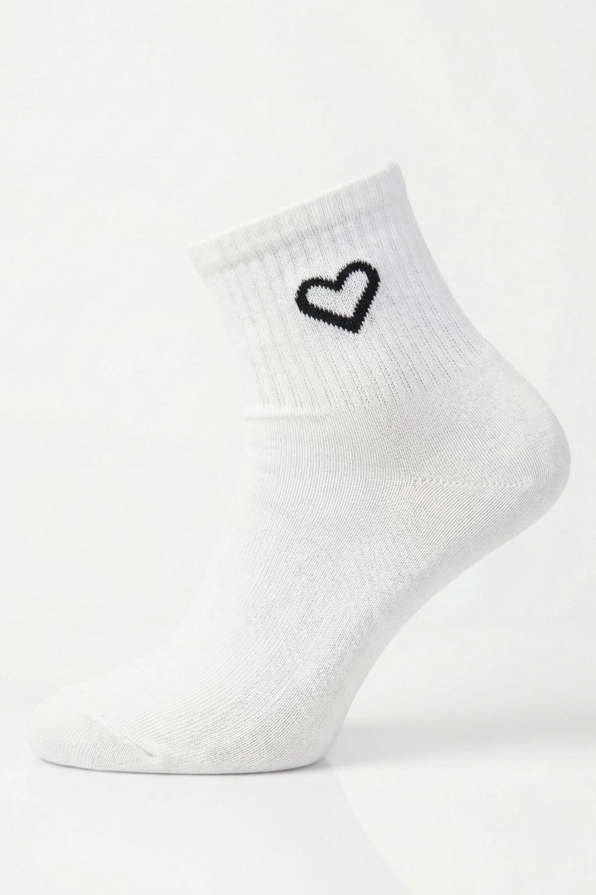 1100 3'lü Kalp Detay Tenis Yarım Konç Çorap