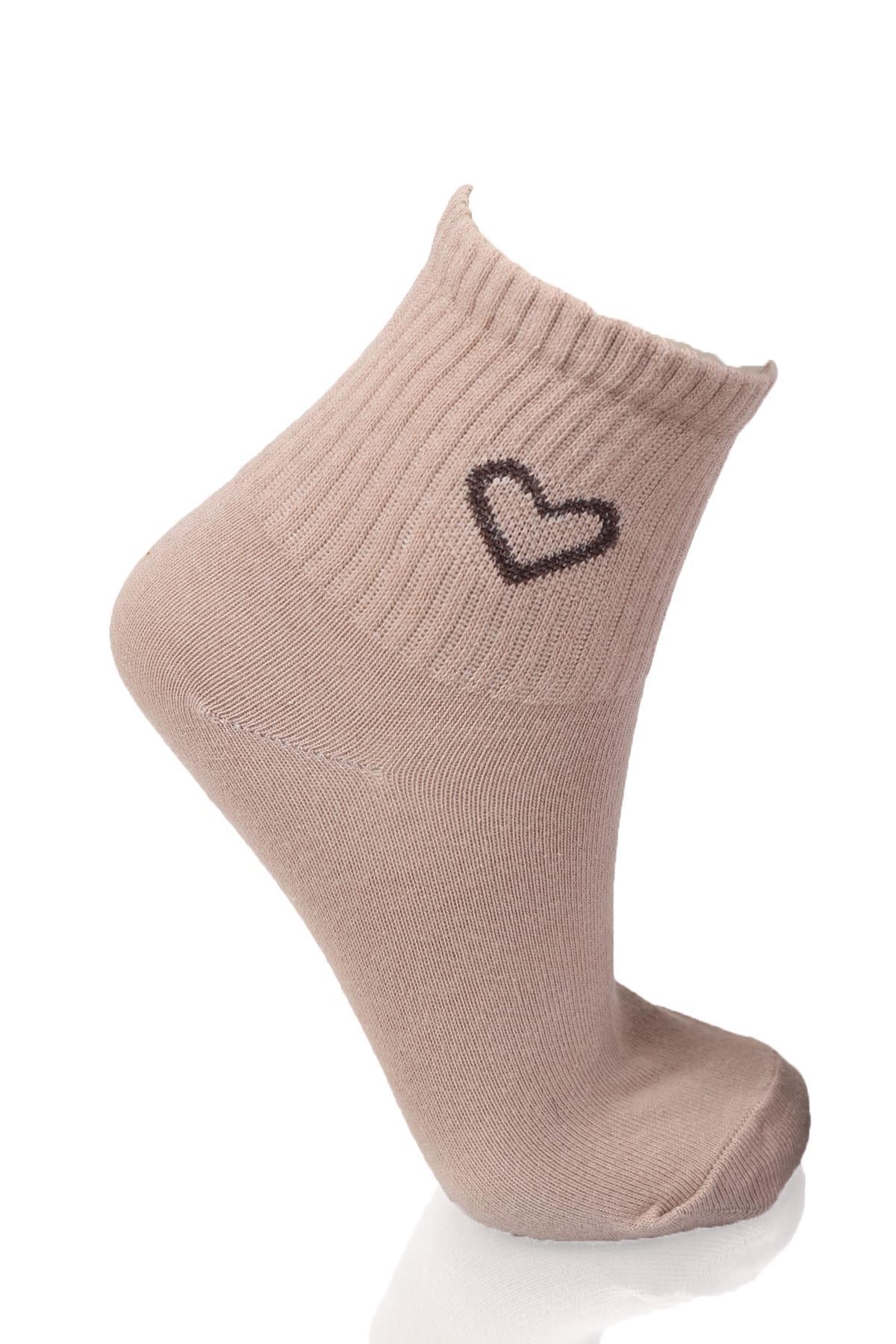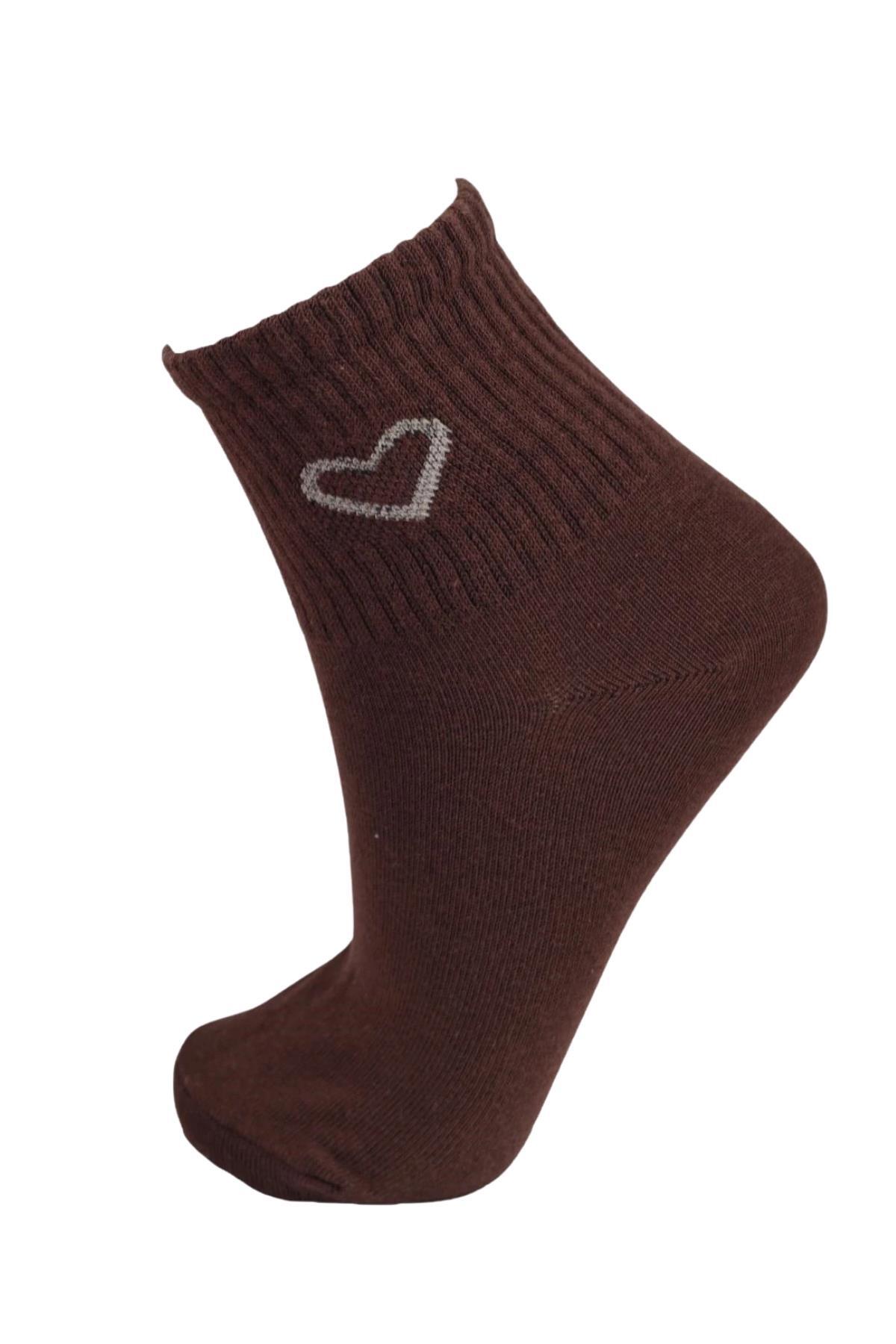 1100 3'lü Kalp Detay Tenis Yarım Konç Çorap Vizon-Taş-Kahve
