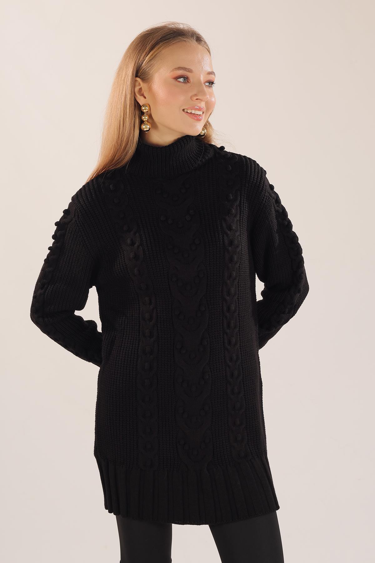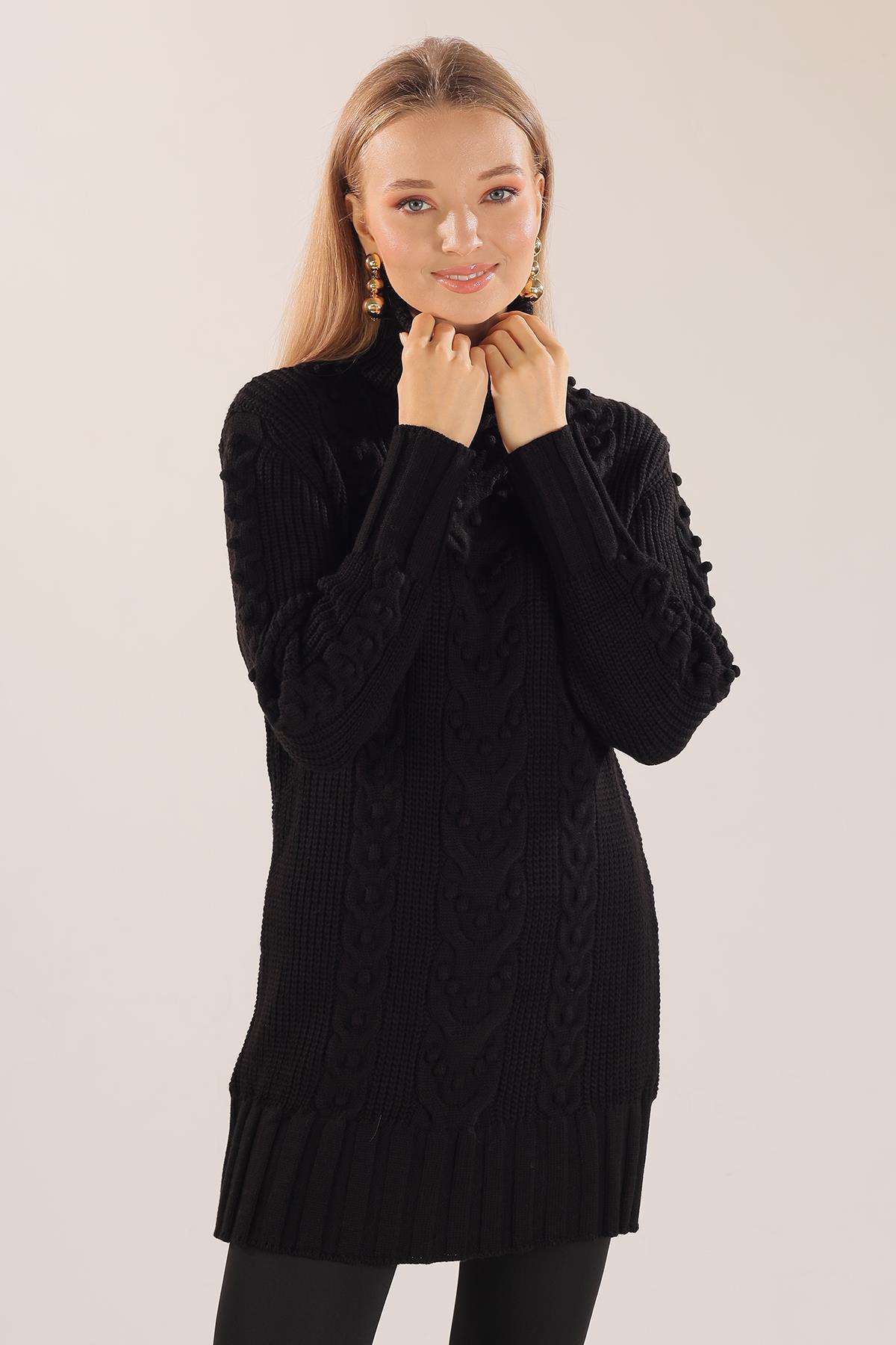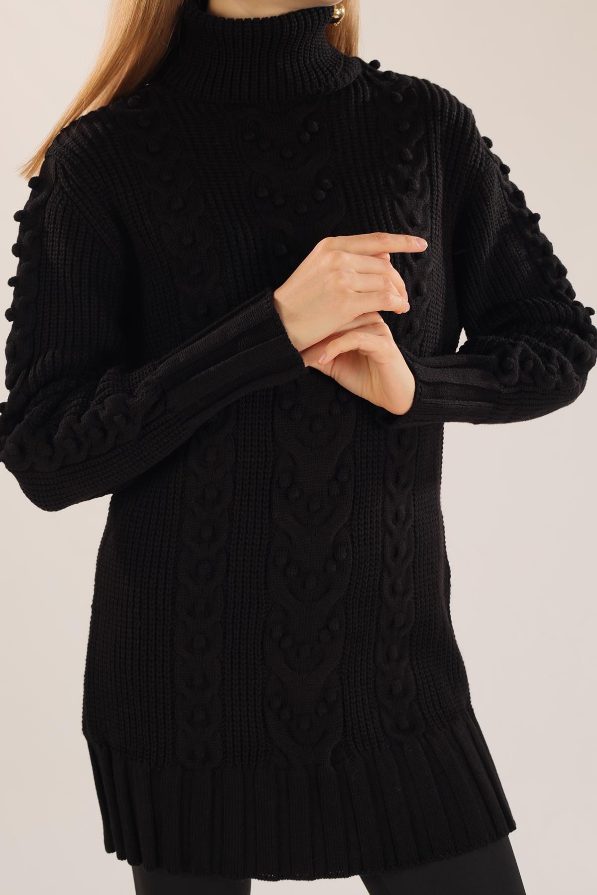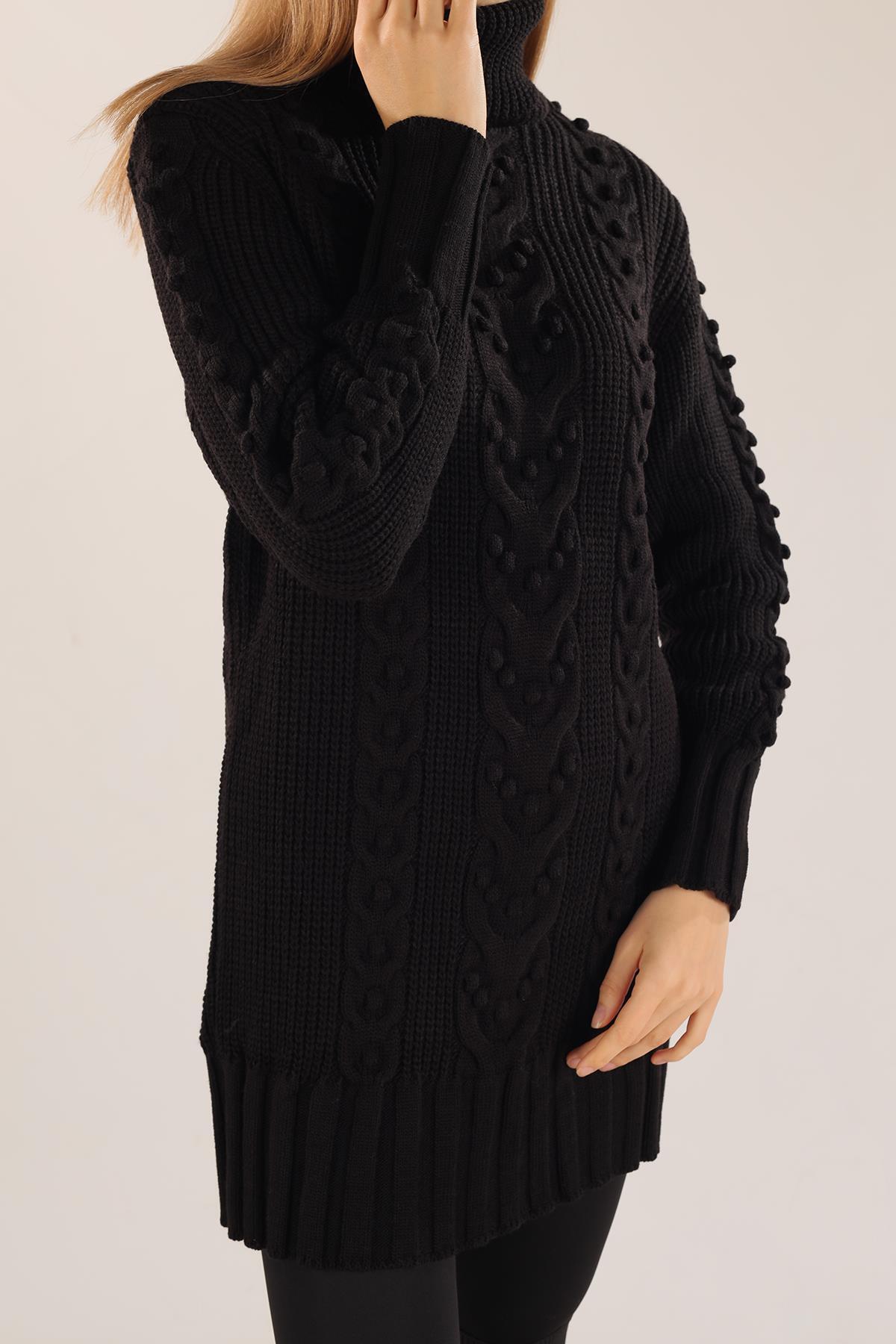 Siyah Örgü Detay Boğazlı Kazak 11002