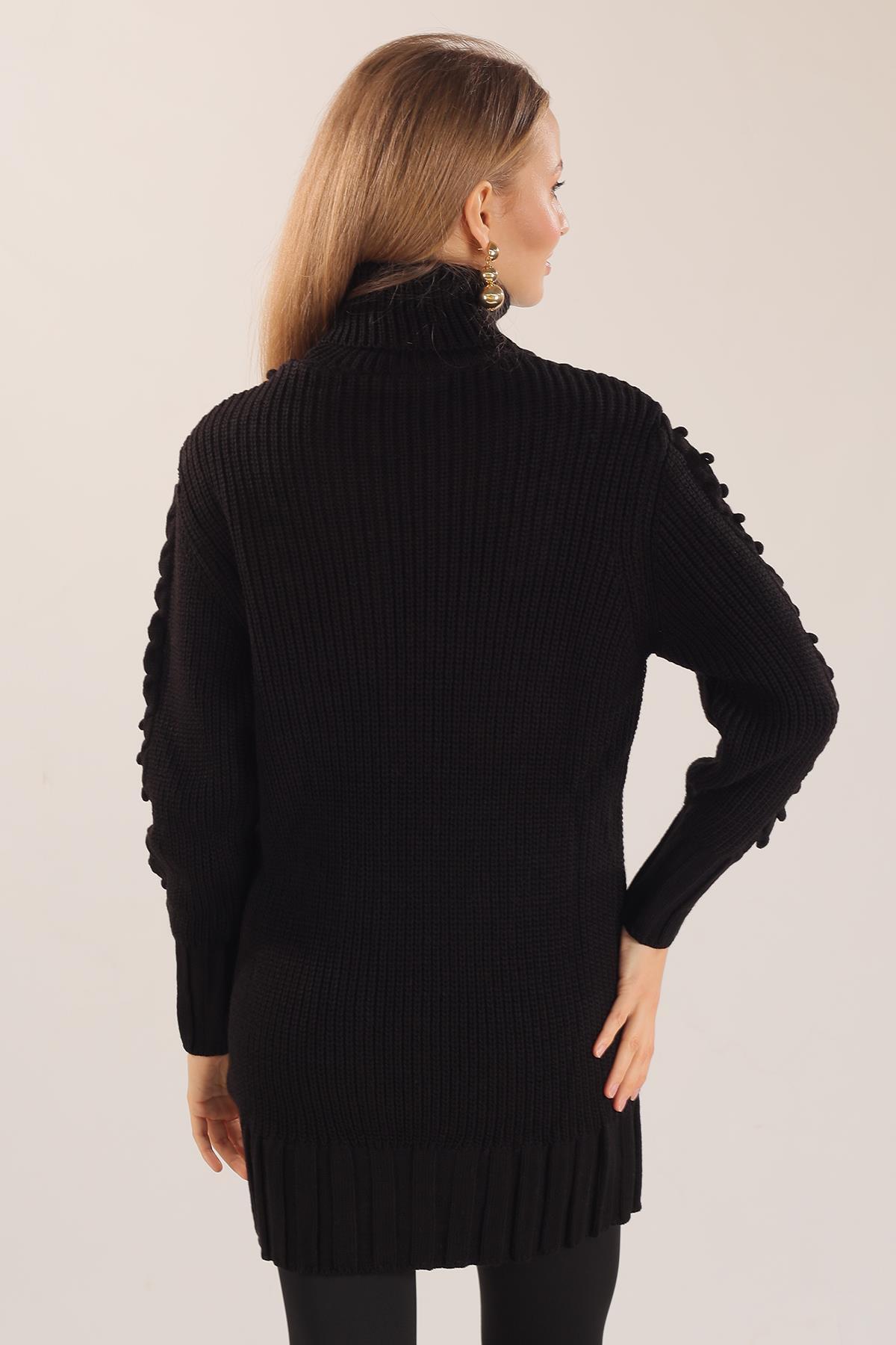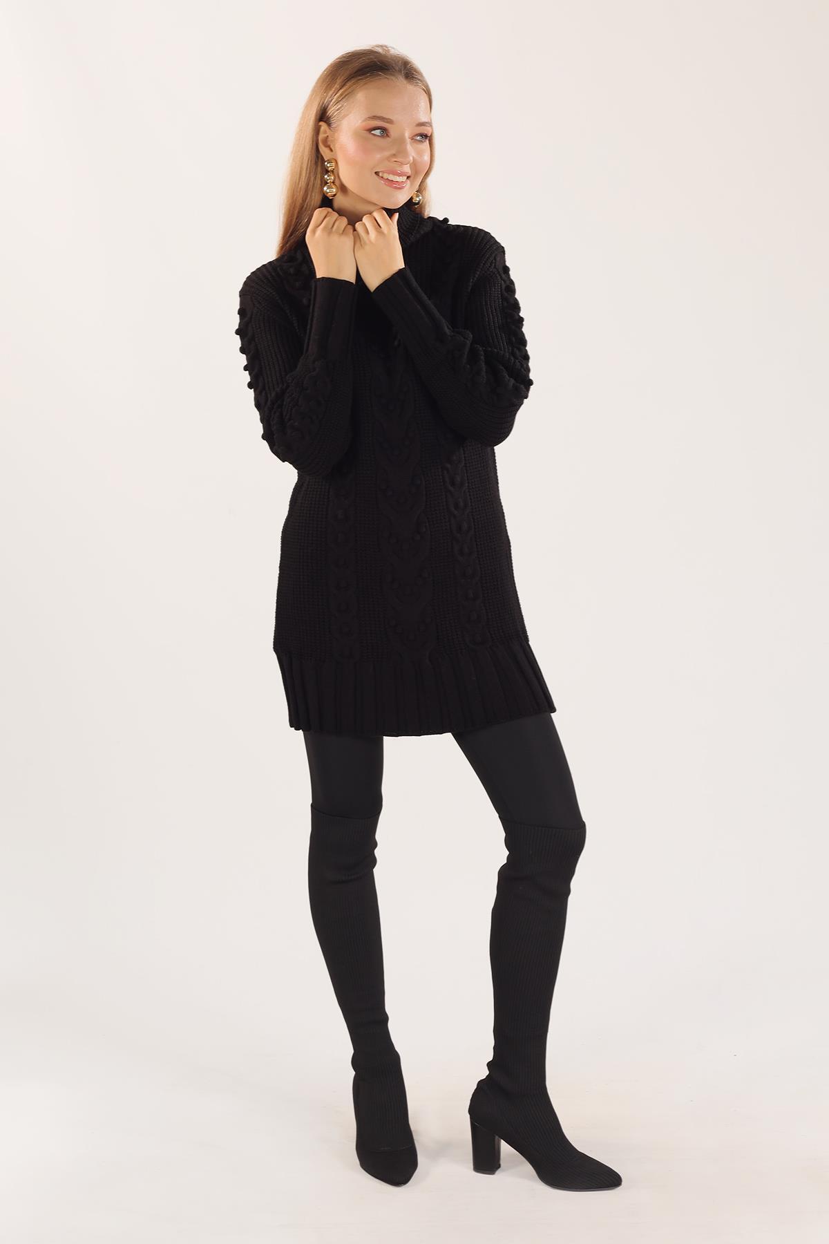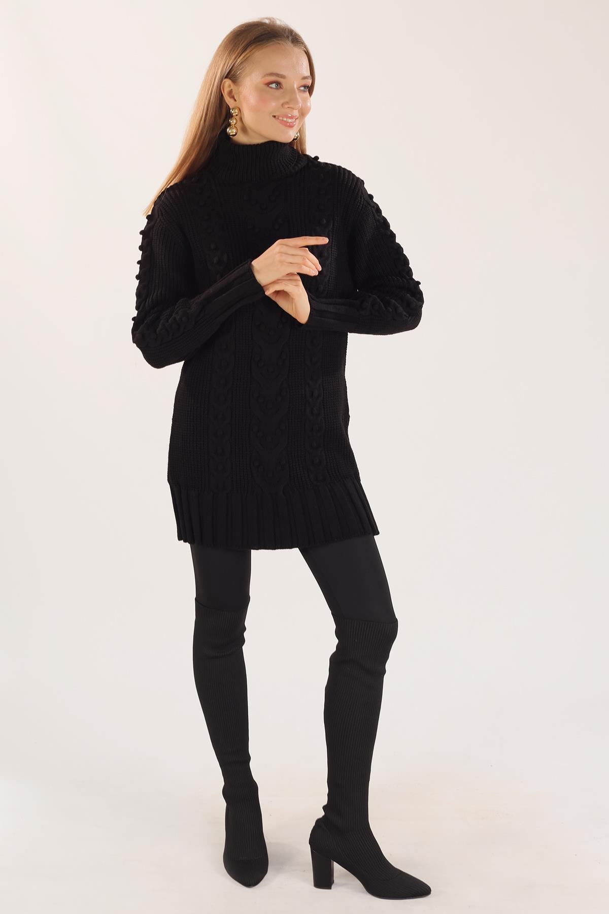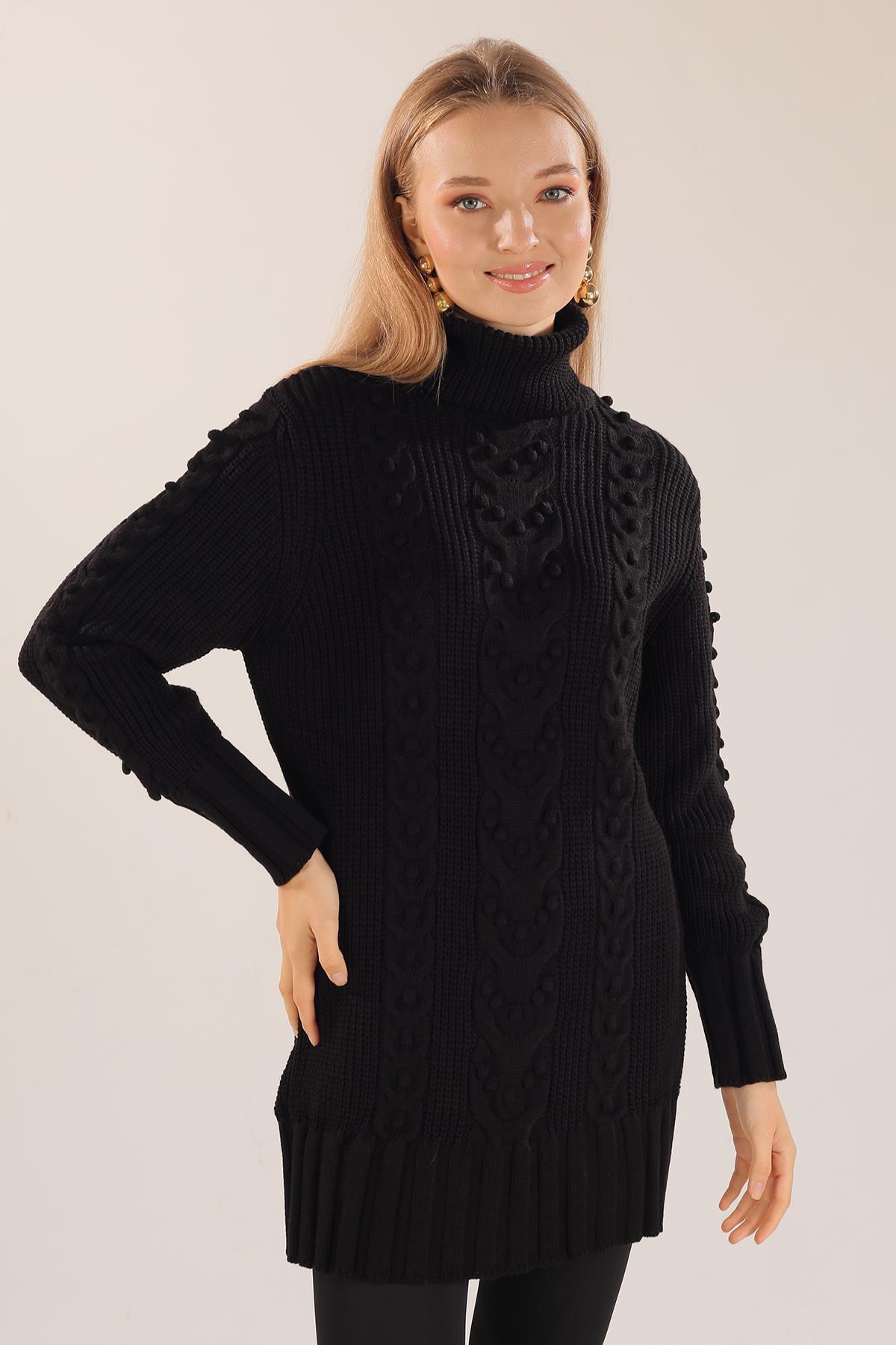 Siyah Örgü Detay Boğazlı Kazak 11002