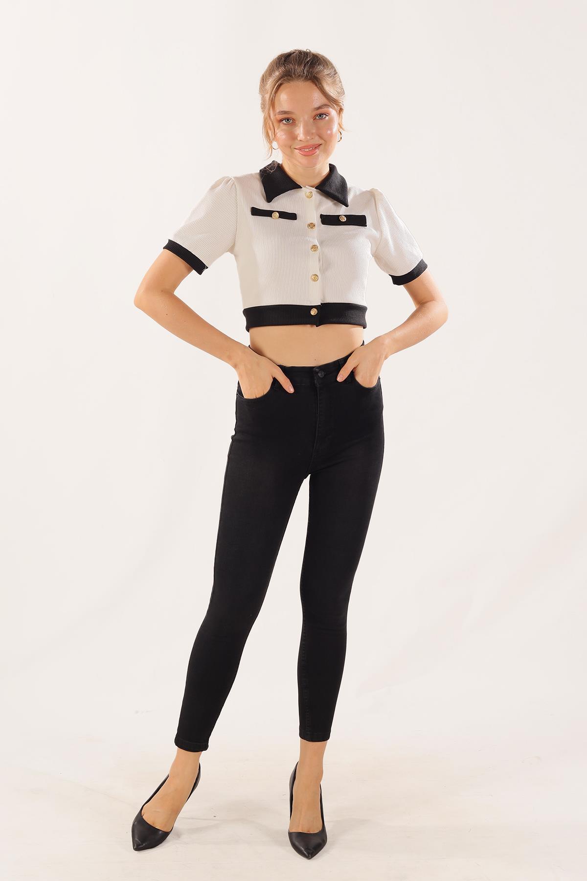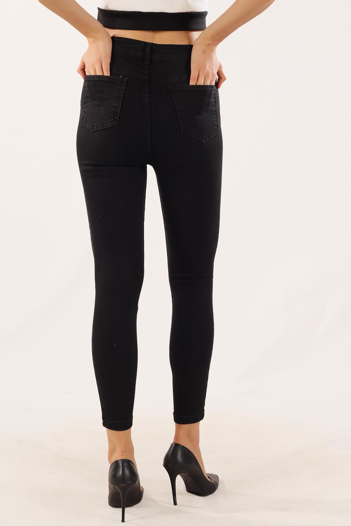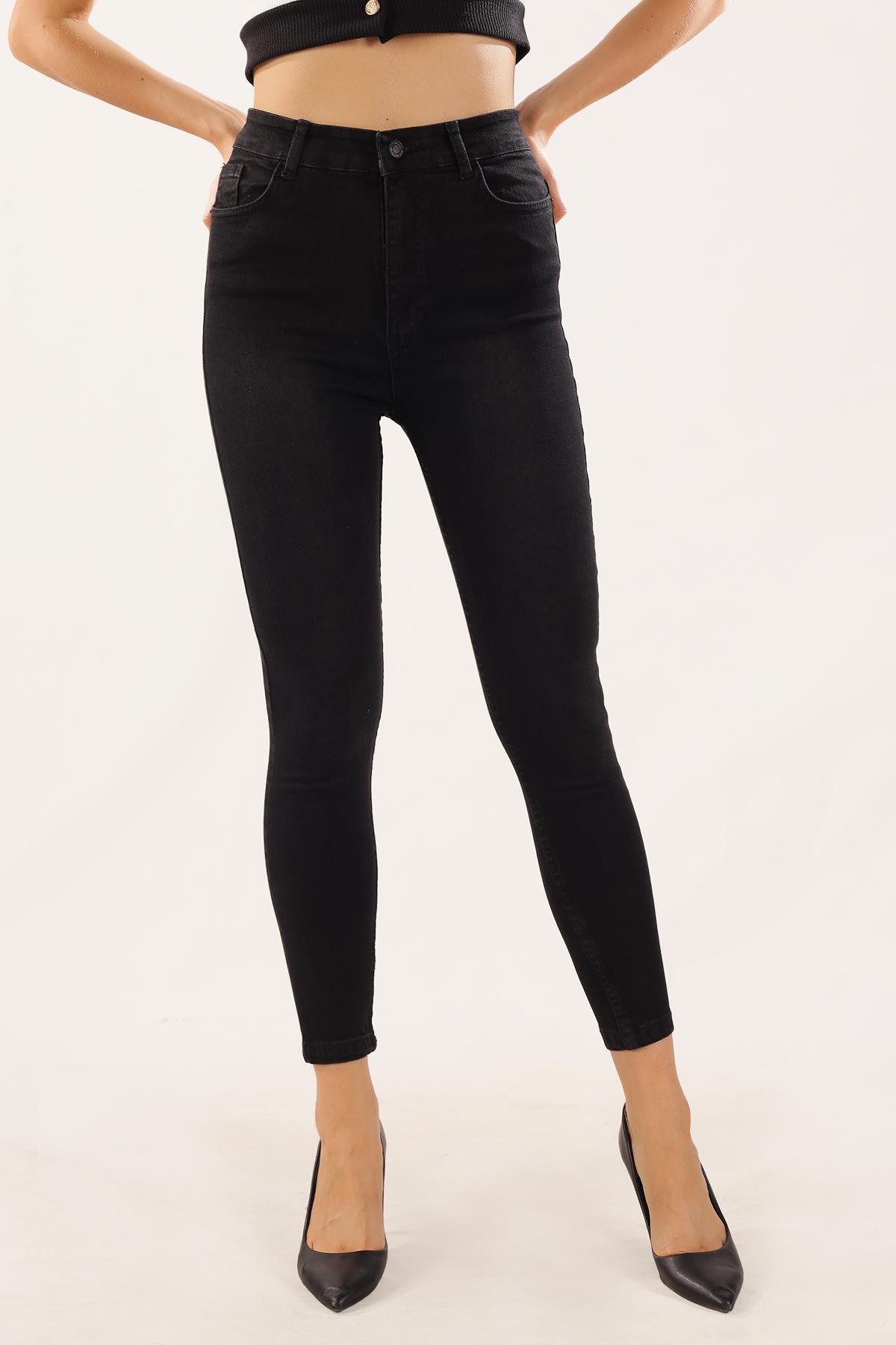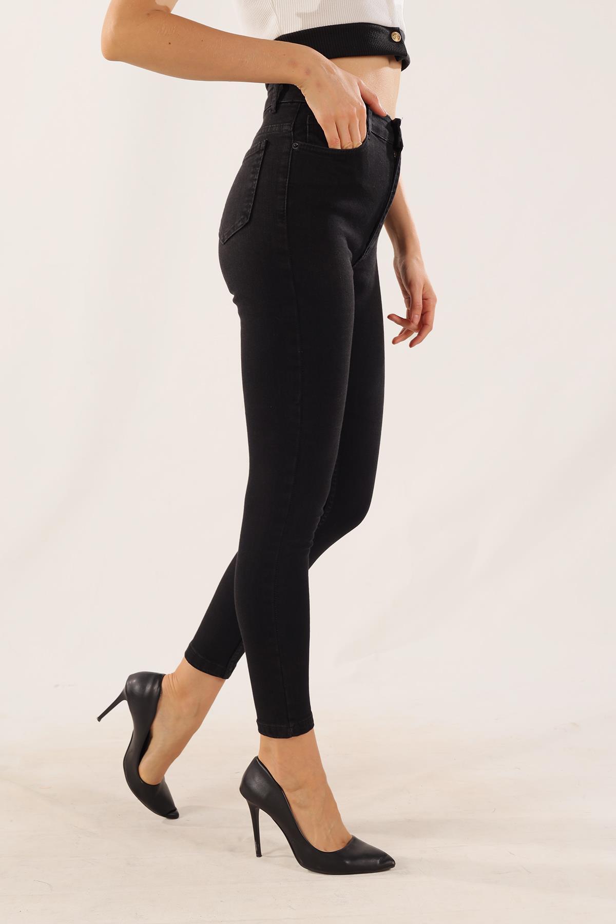 Siyah Yüksek Bel Dar Paça Pantolon 11012