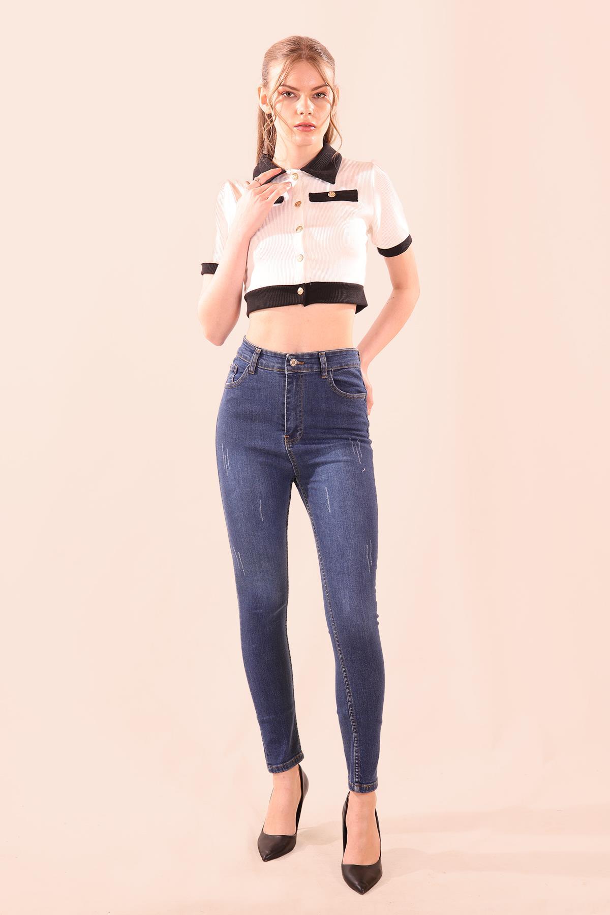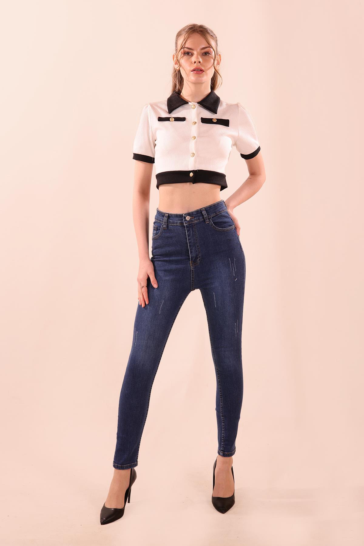 Koyu Mavi Tırnaklı Dar Paça Pantolon 11016
