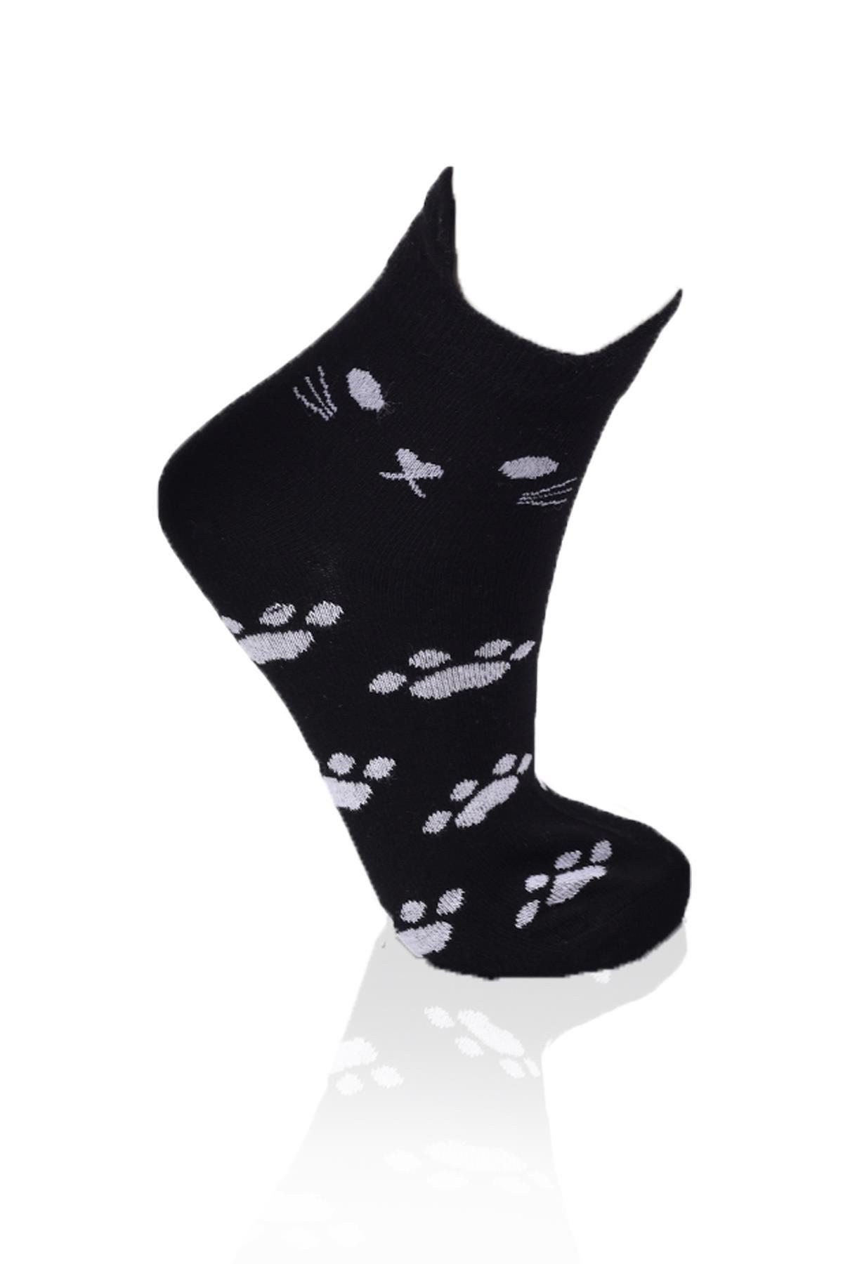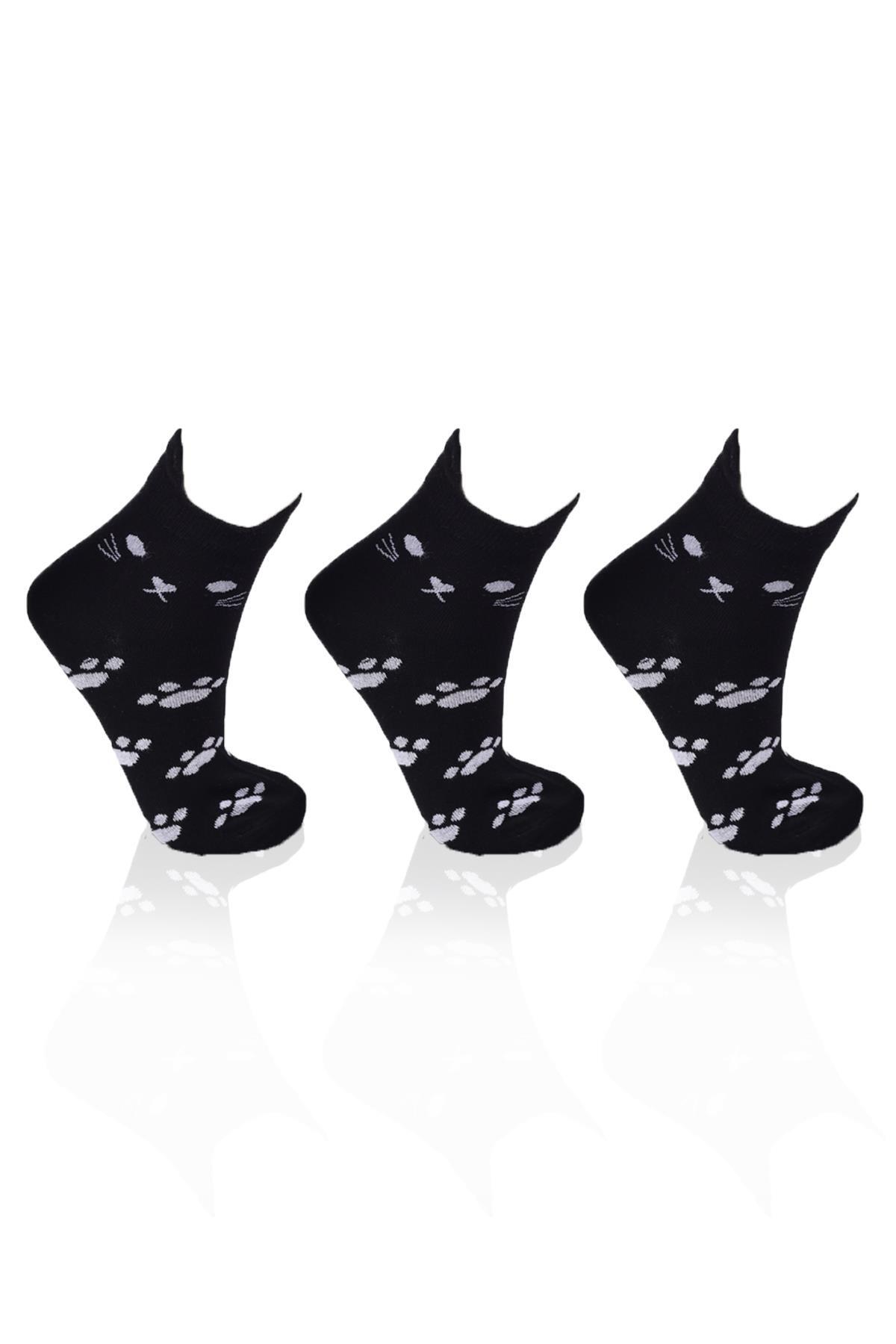 Siyah Üç Boyutlu Kedili 3'lü Patik Çorap 1105