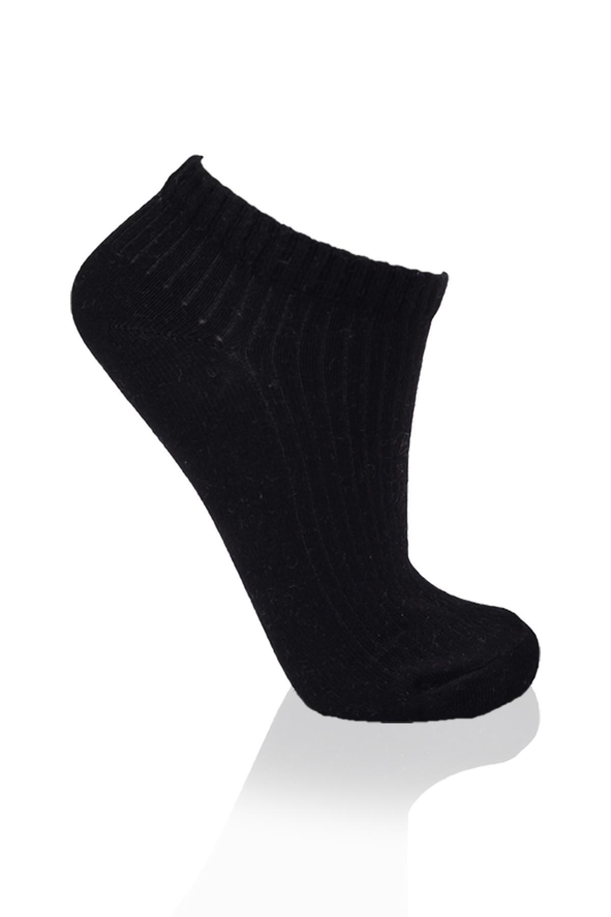 12 Çift Kadın Siyah Esnek Pamuklu Örme Babet Çorap 1020