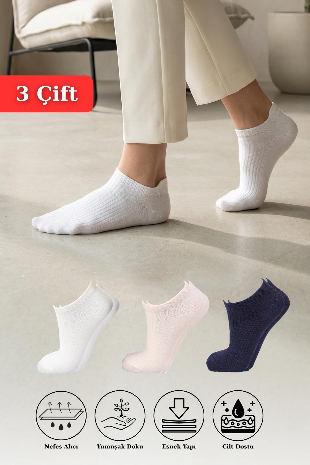 1106 3'lü Derbili Bayan Patik Çorap