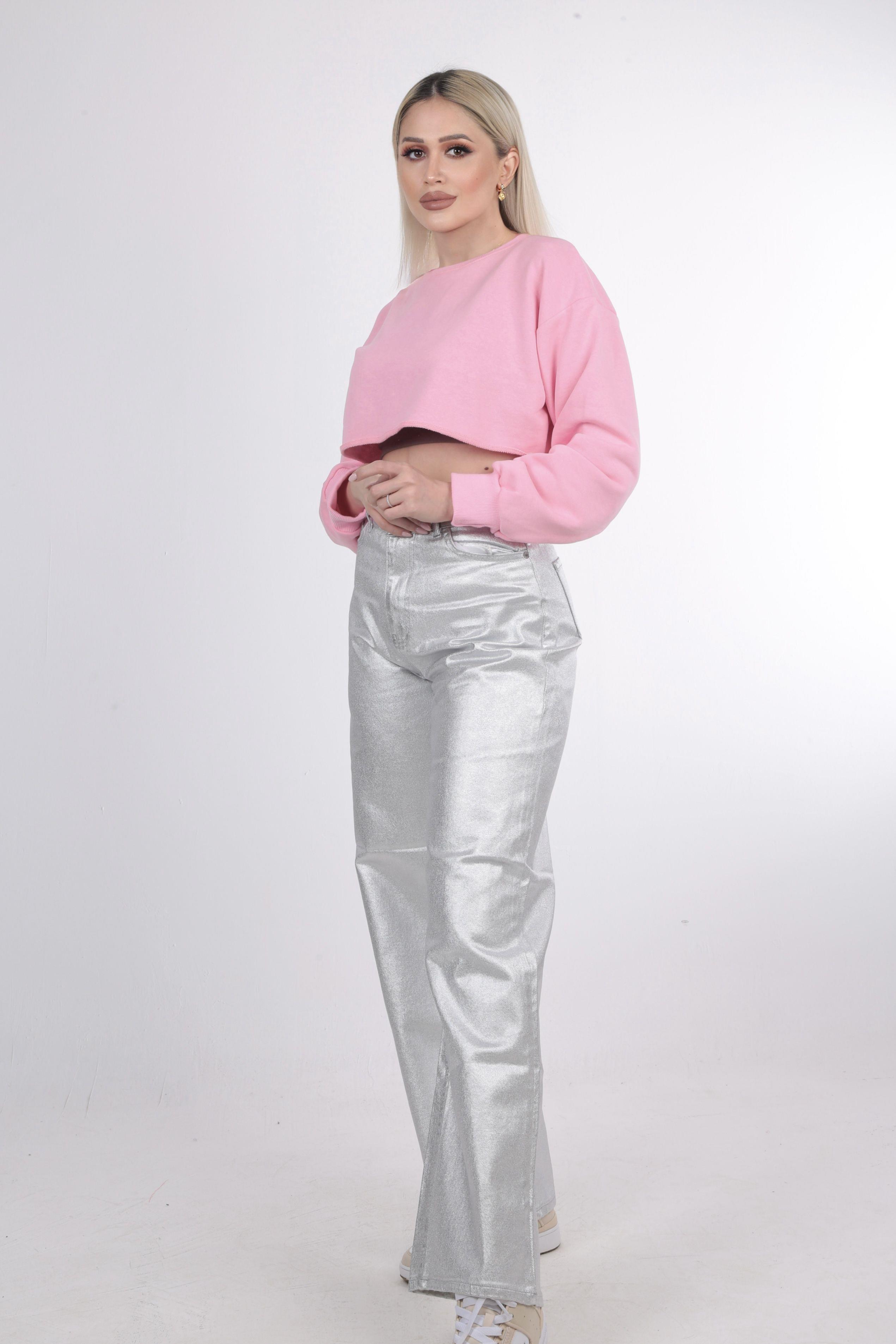 Gümüş Bol Paça Parlak Pantolon 11100