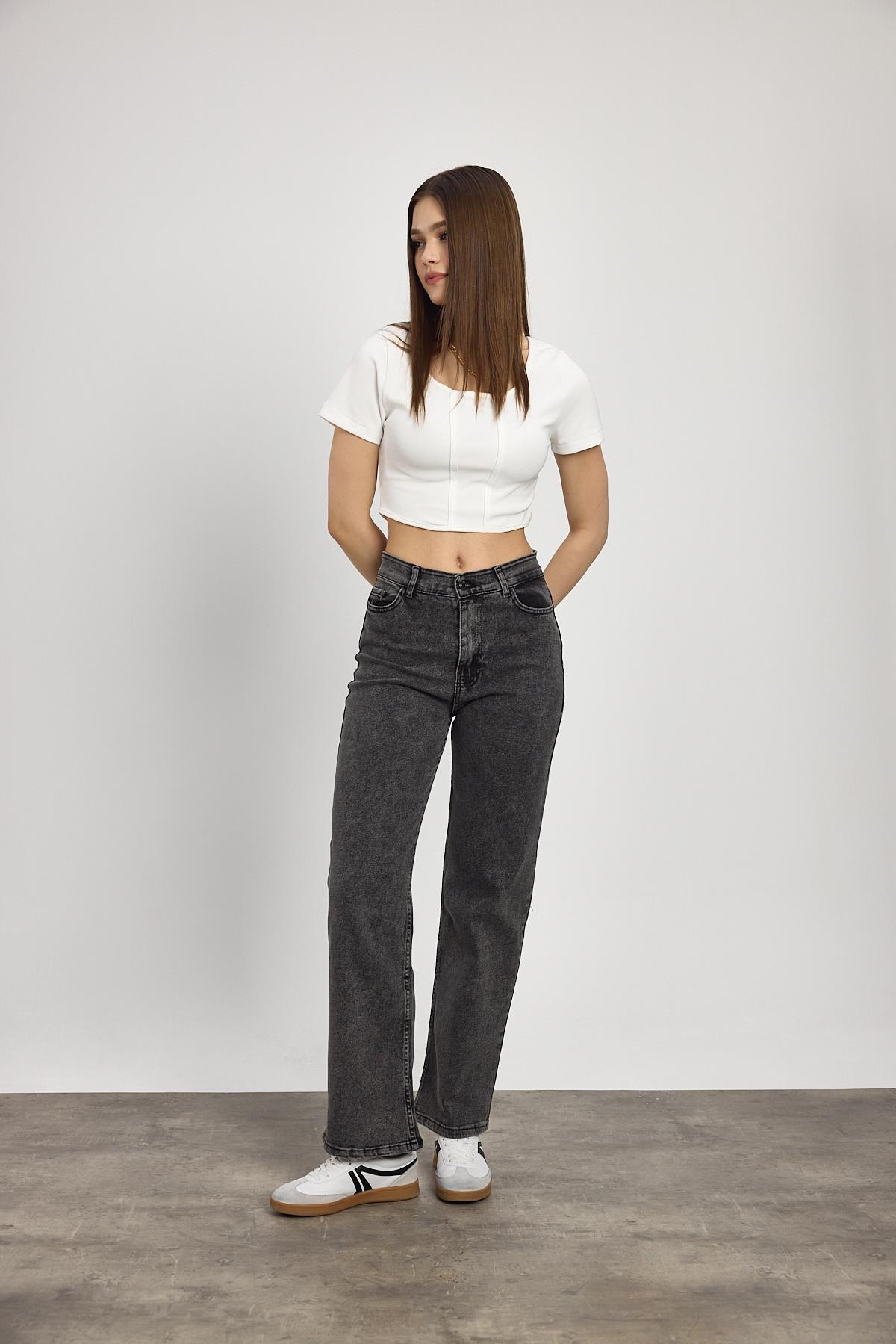 11104 Likralı Bol Paça Pantolon Füme