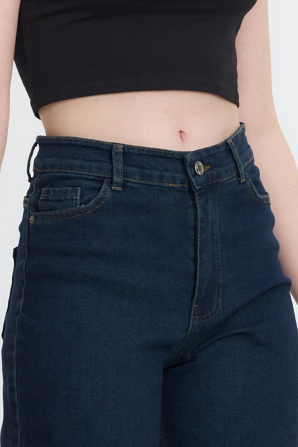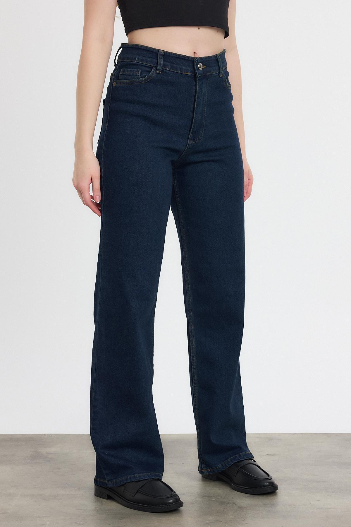11104 Likralı Bol Paça Pantolon Koyu Mavi