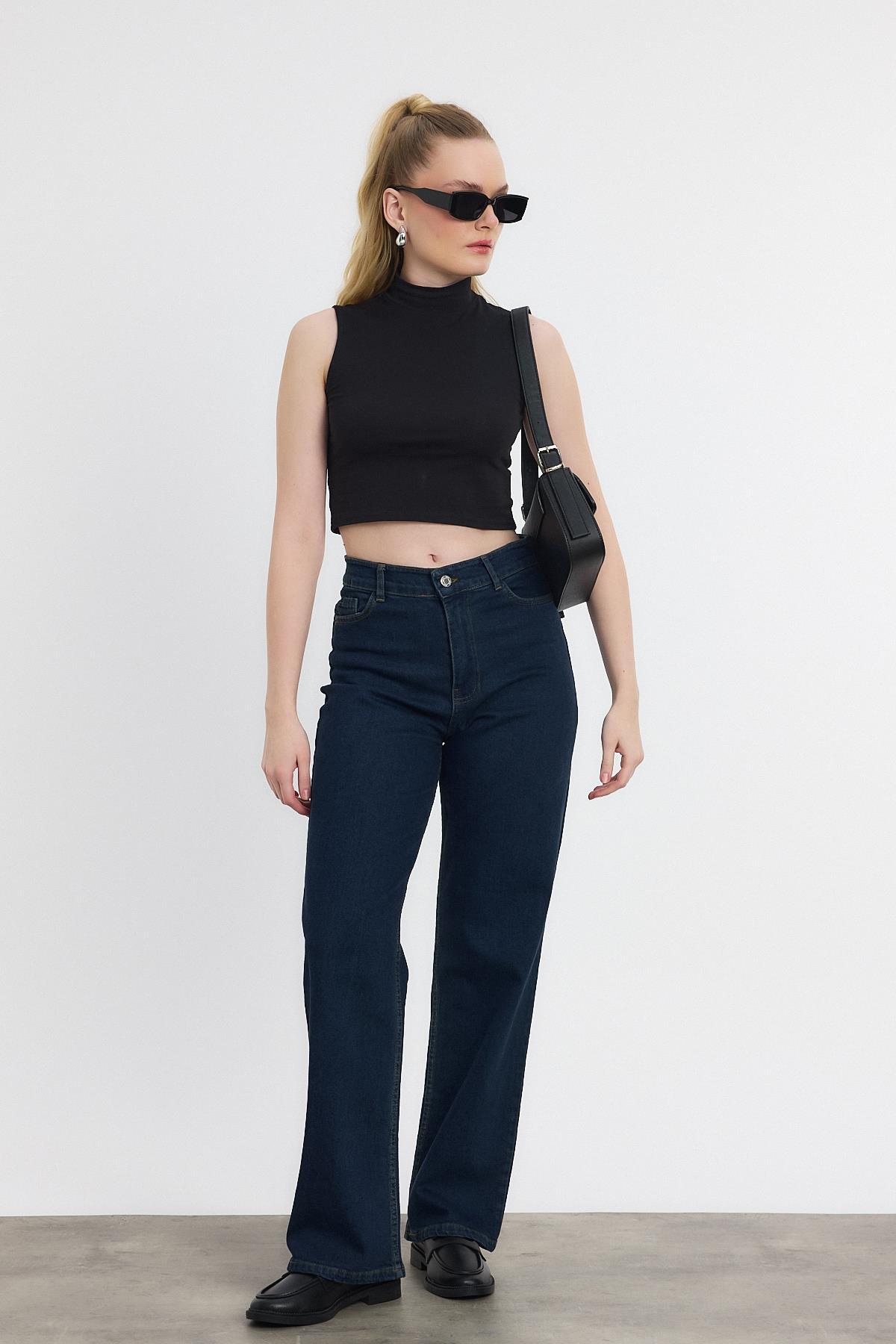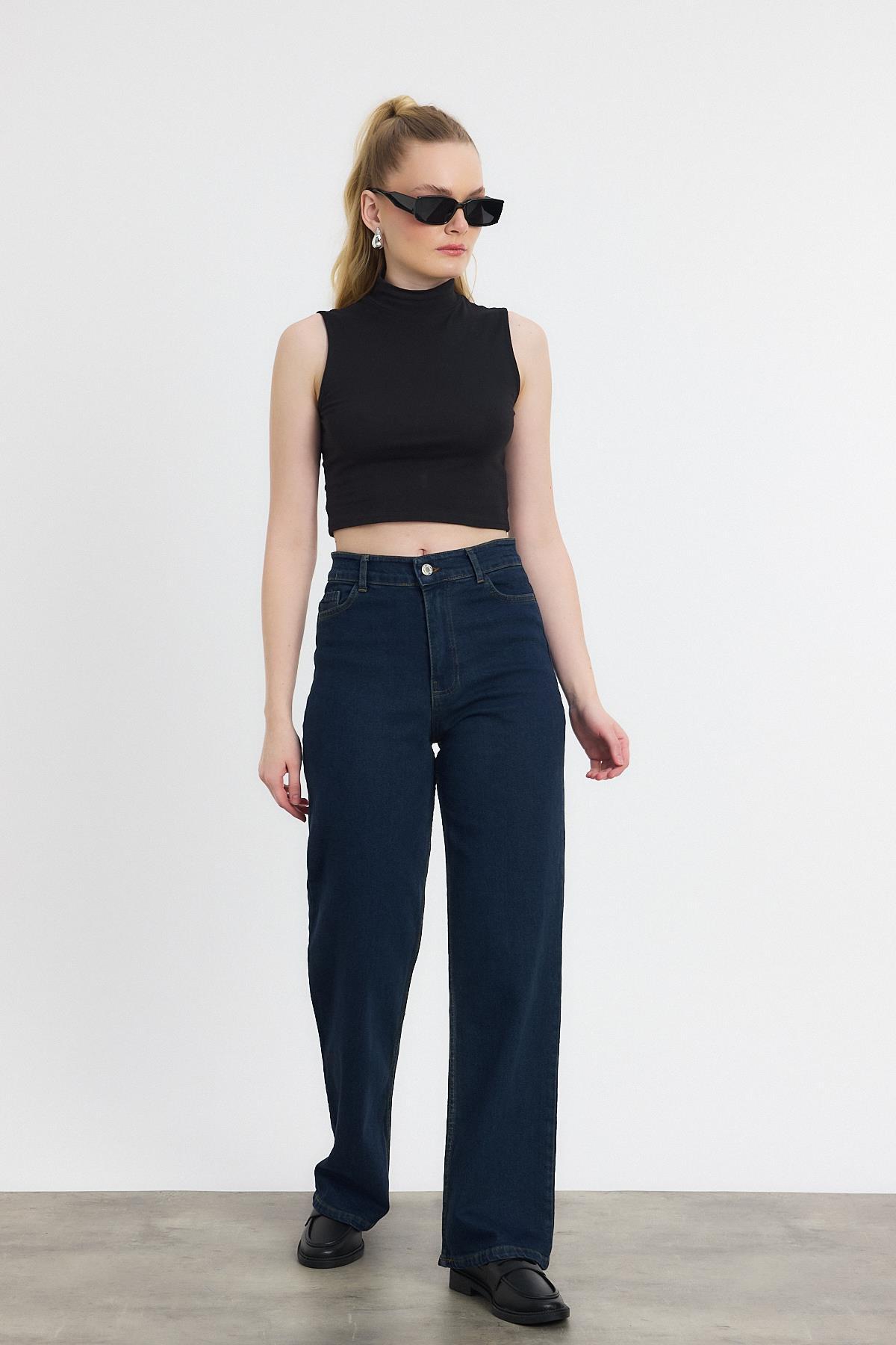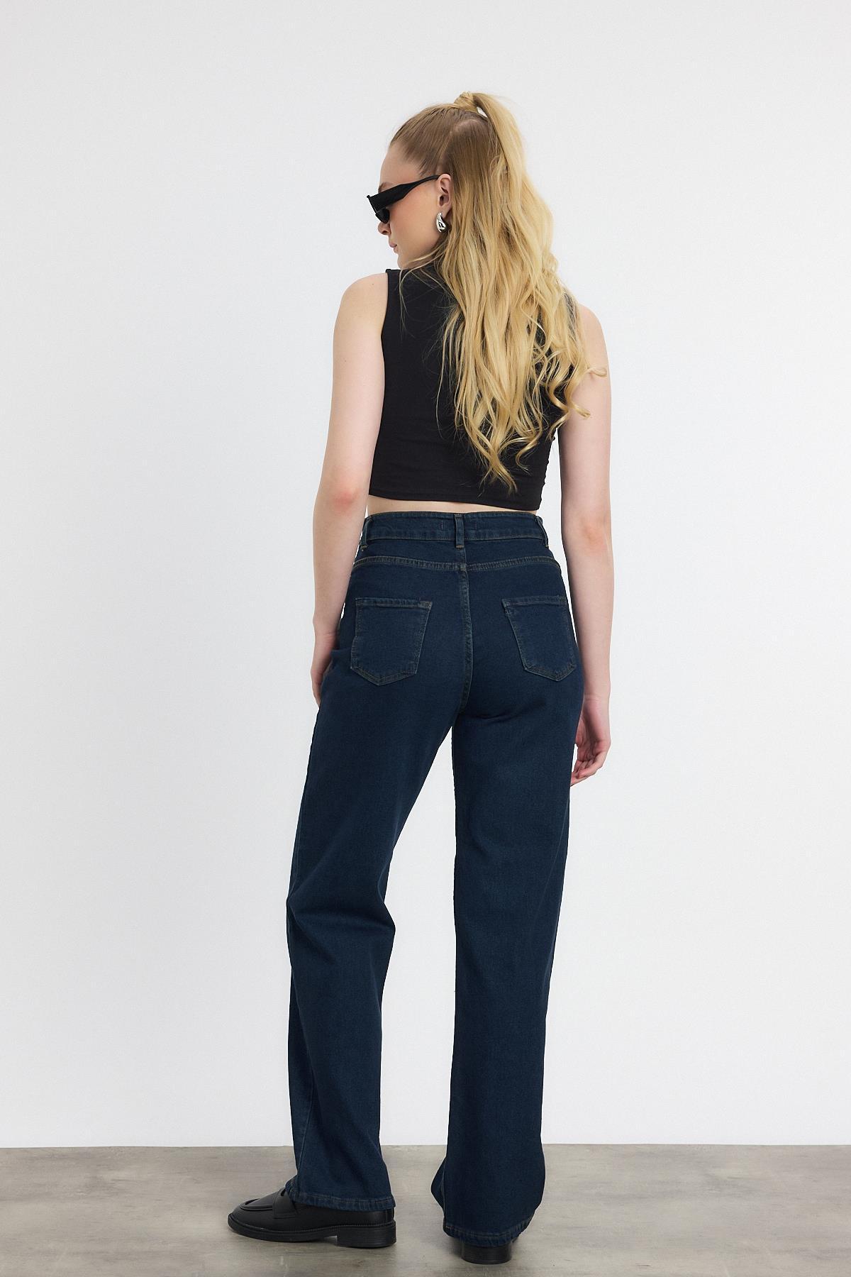 Koyu Mavi Likralı Bol Paça Pantolon 11104