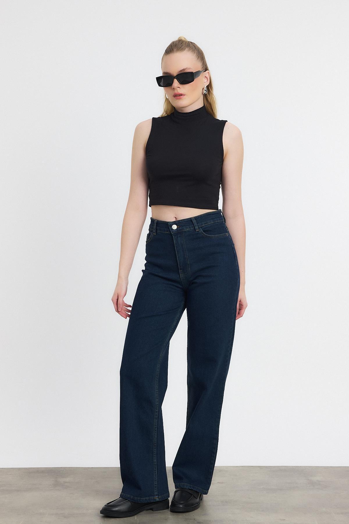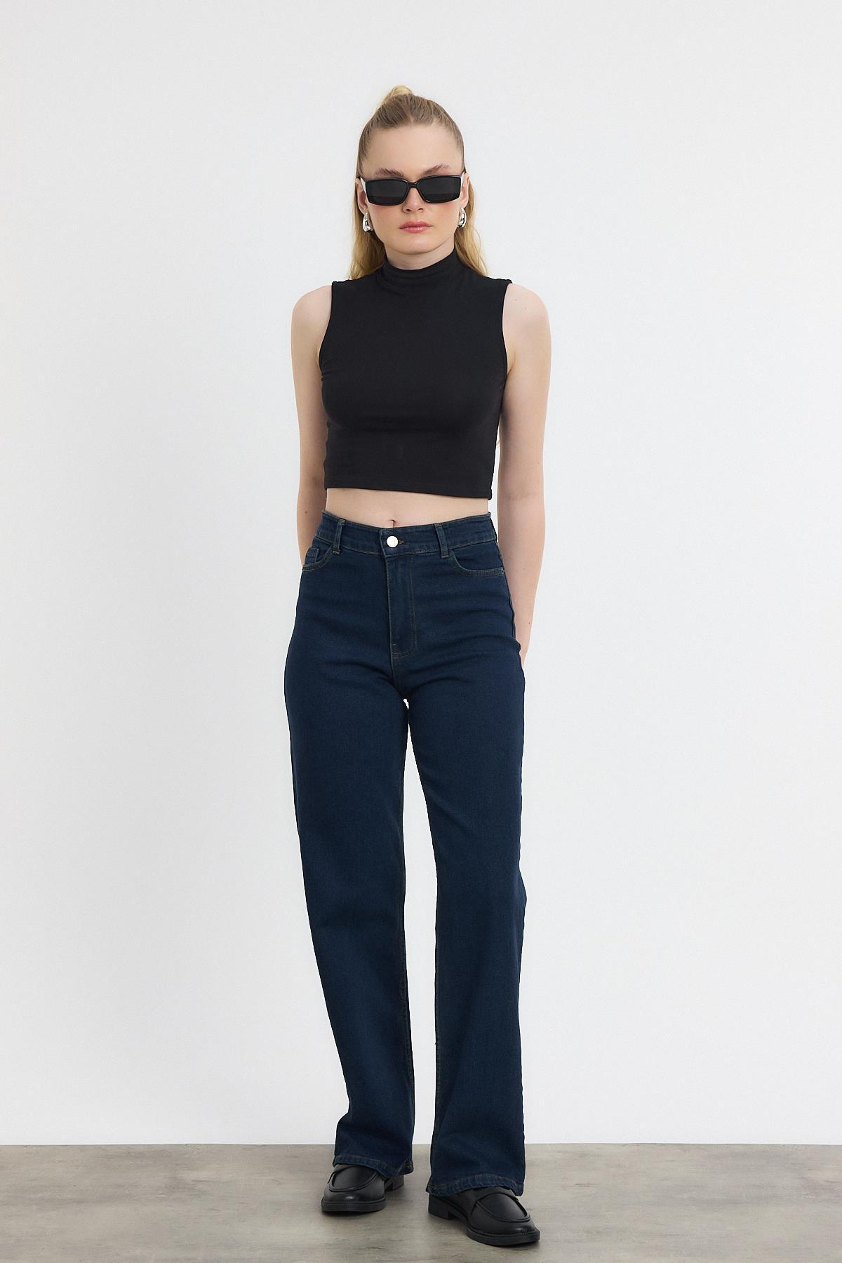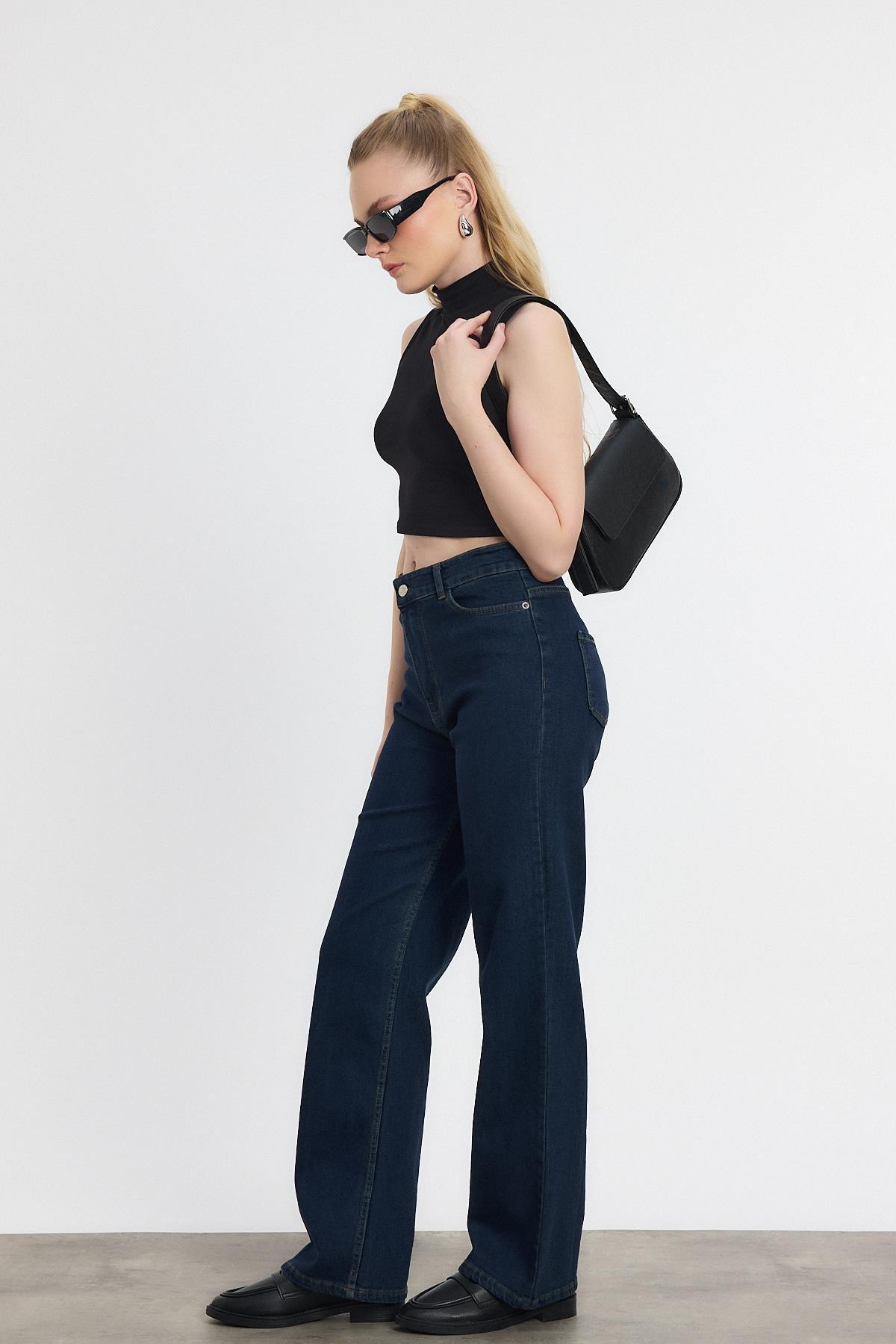 Koyu Mavi Likralı Bol Paça Pantolon 11104