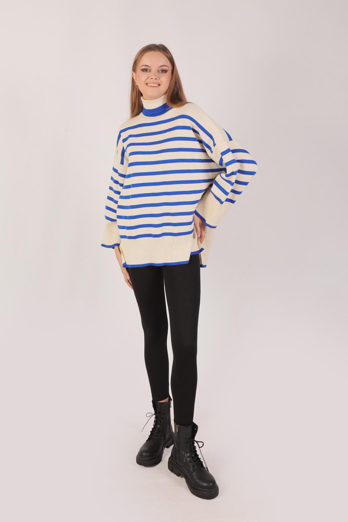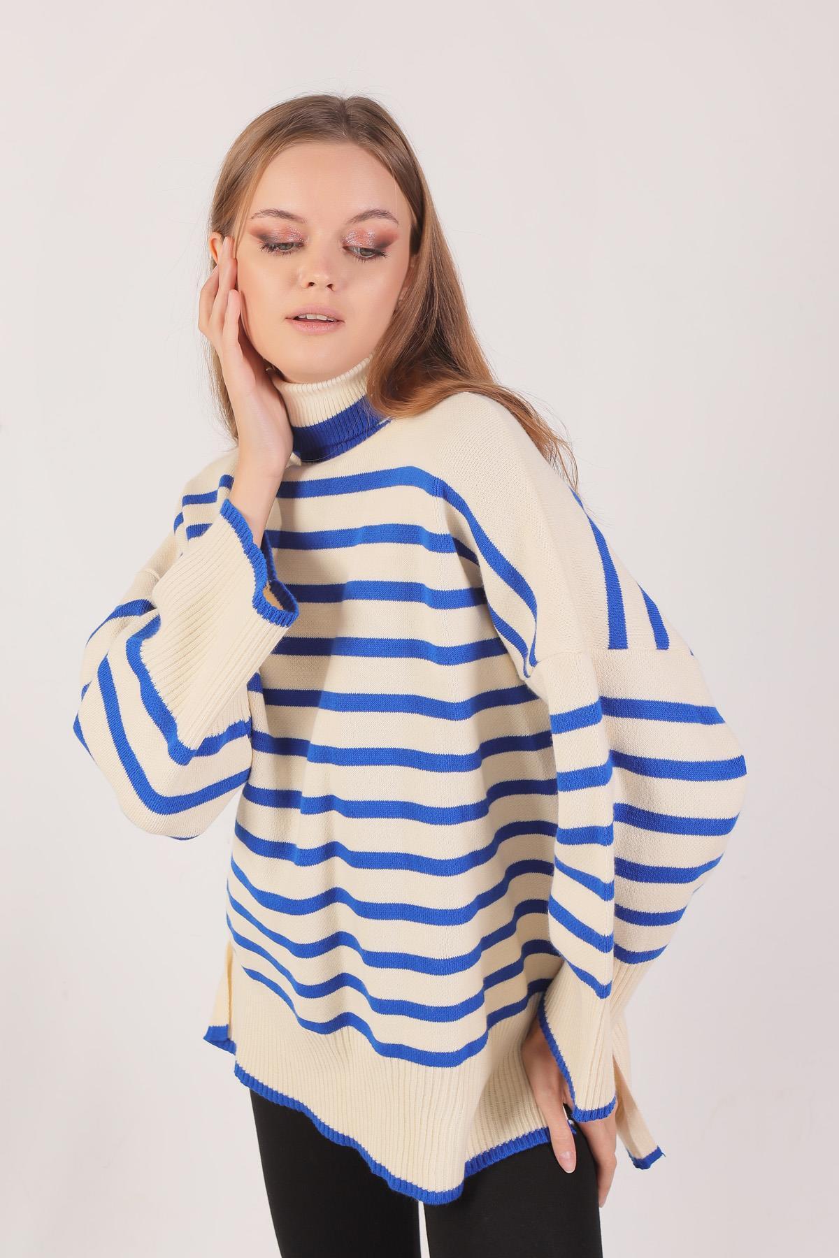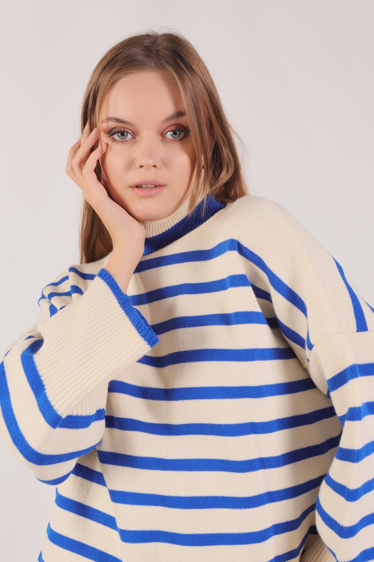 Saks Balıkçı Yaka Çizgili Kazak 1112