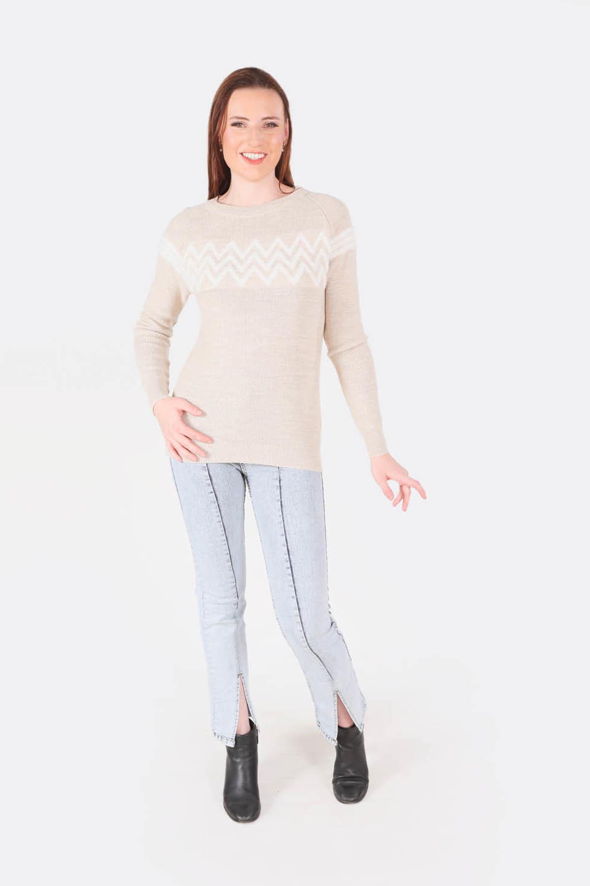 Gri - Ekru Yıldız Baskılı Oversize Kazak 2474 - RAYS Gri - Ekru Yıldız Baskılı Oversize Kazak 2474 - RAYS (1)