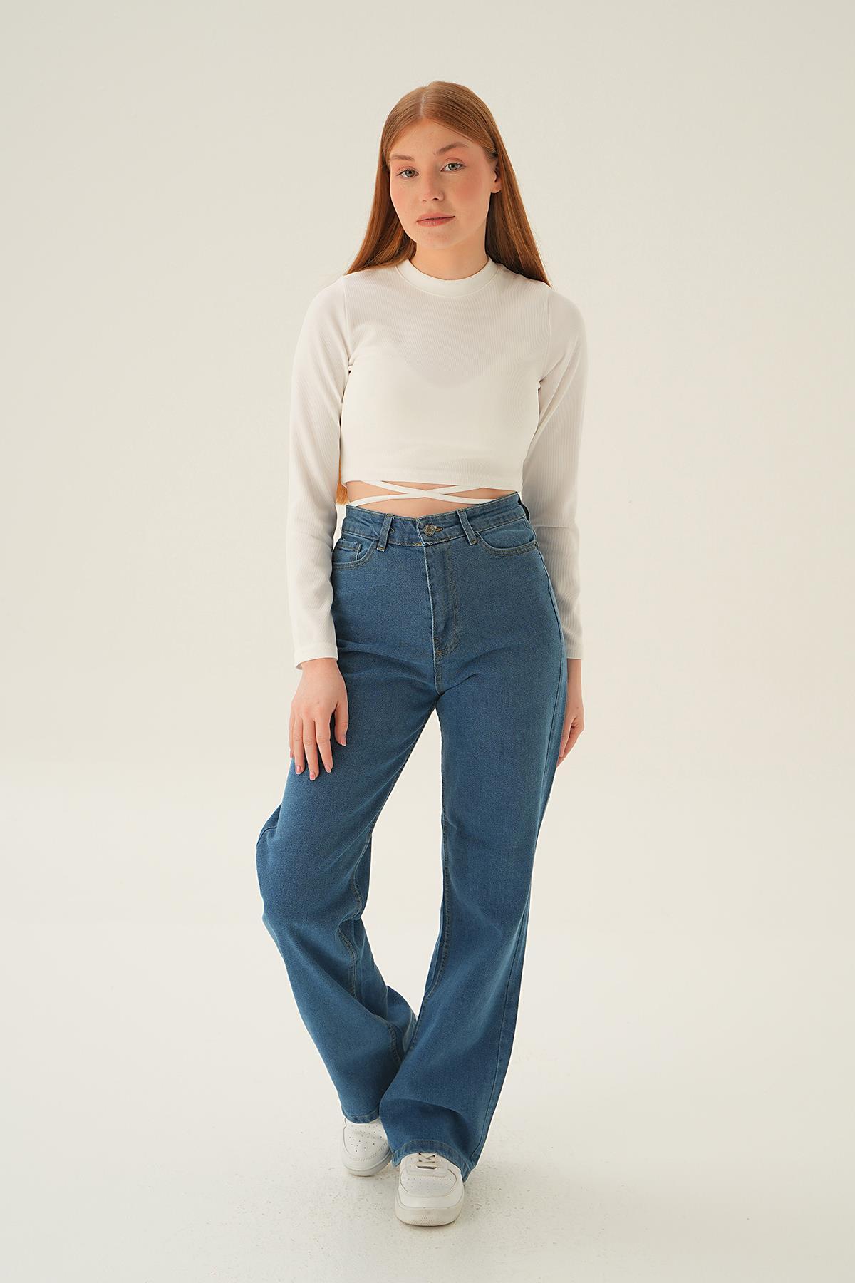 11201 Yüksek Bel Bol Paça Jean Mavi