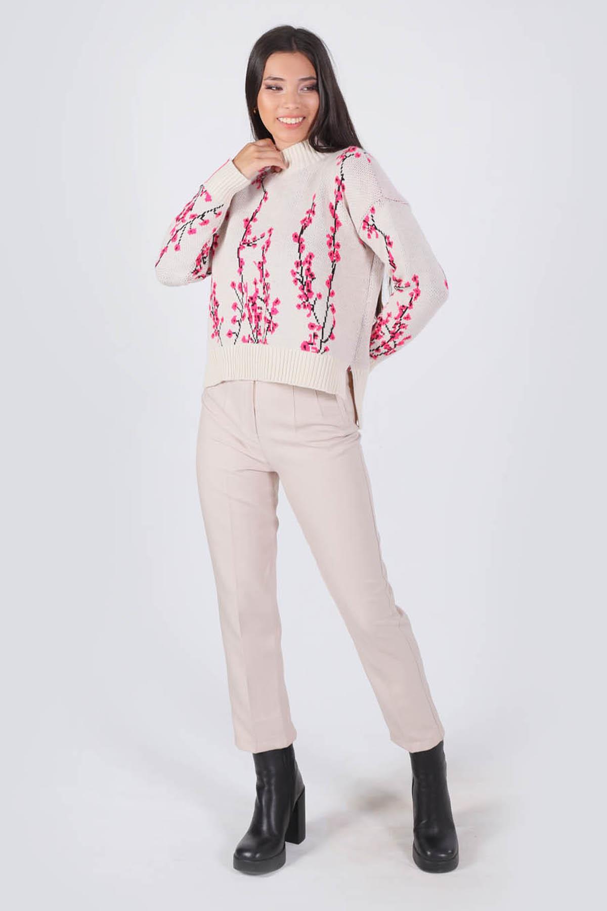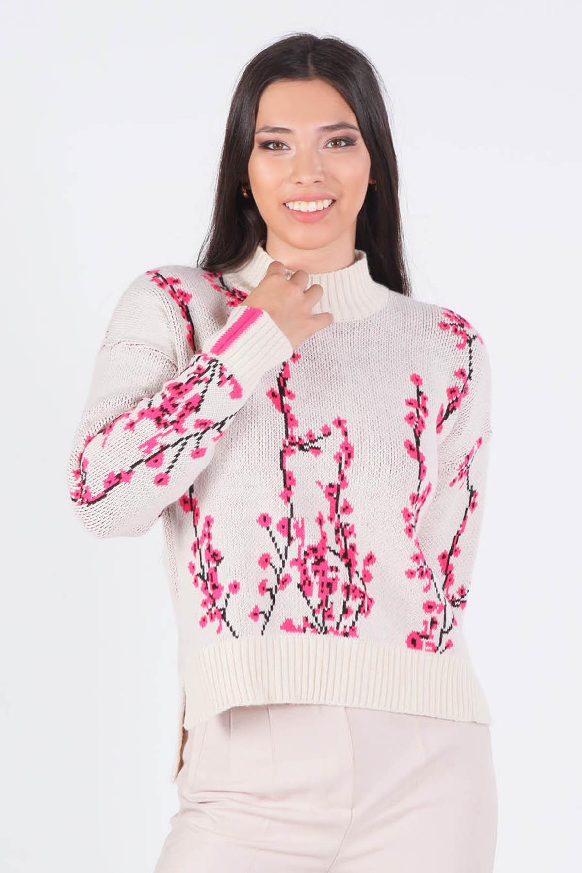 Gri - Ekru Yıldız Baskılı Oversize Kazak 2474 - RAYS Gri - Ekru Yıldız Baskılı Oversize Kazak 2474 - RAYS (1)