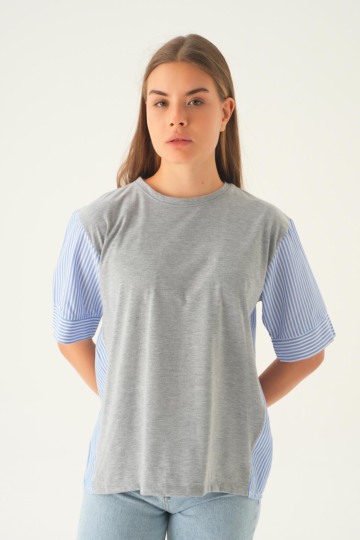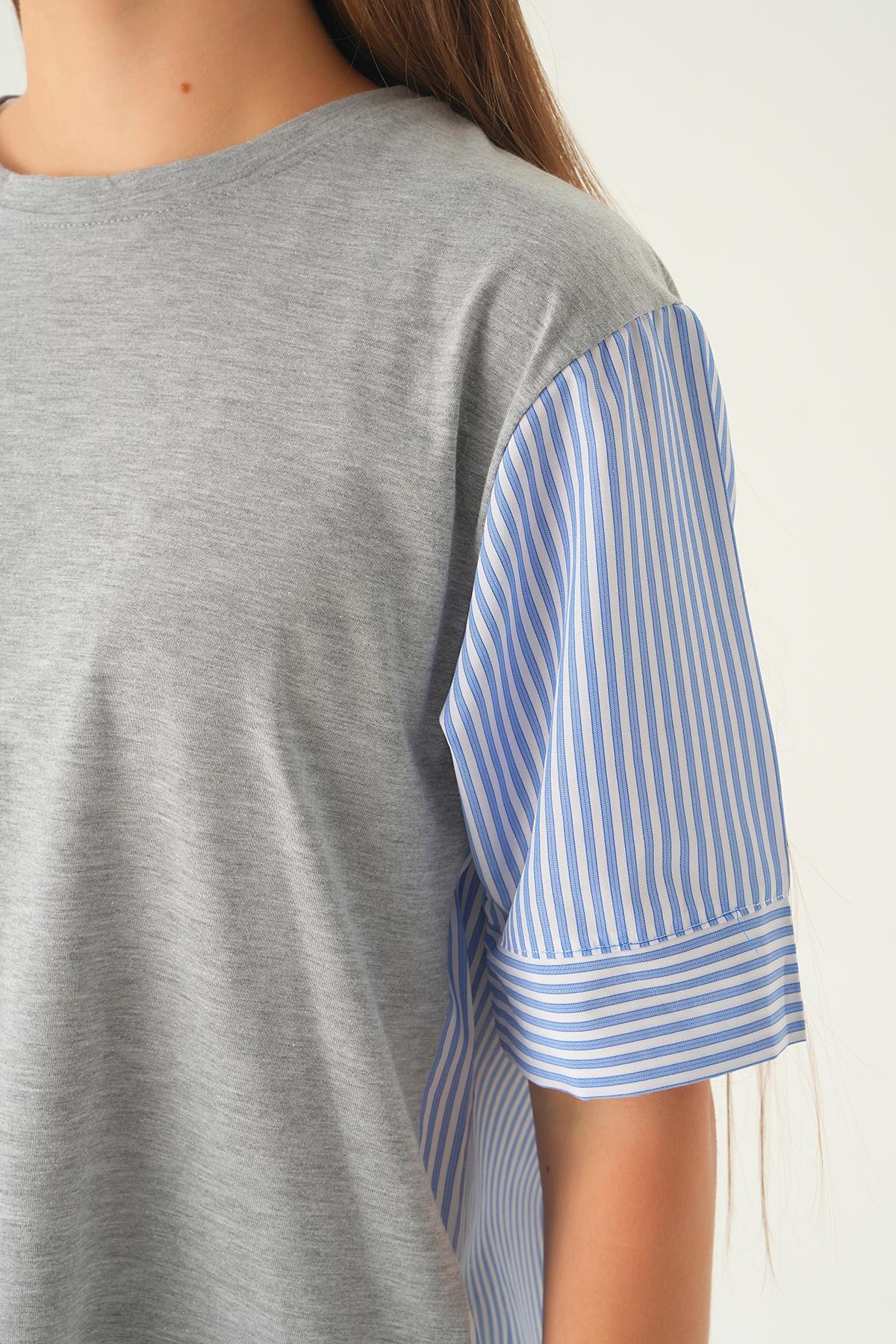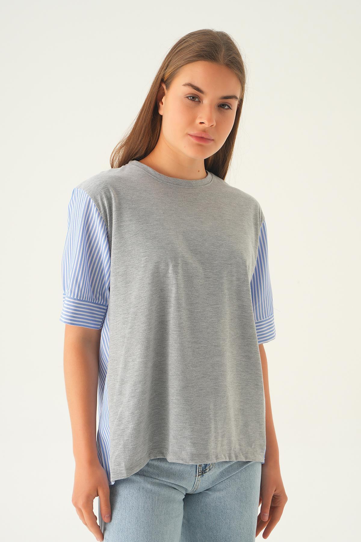 Gri Kol Çizgili Tişört 1199
