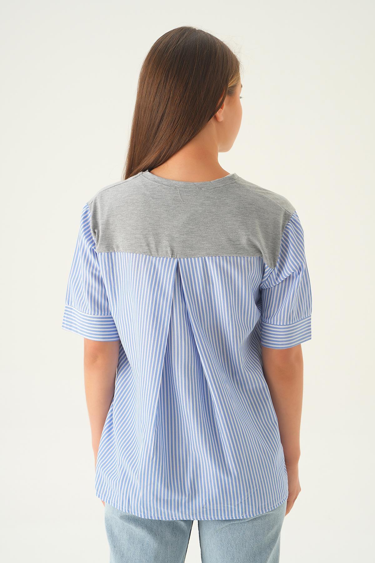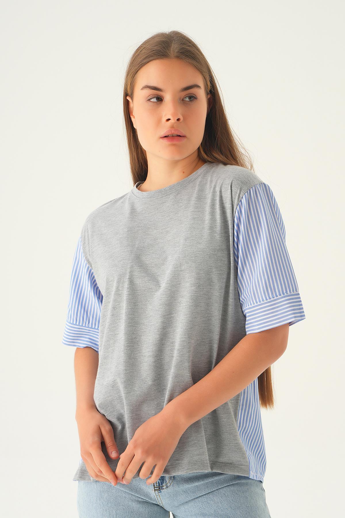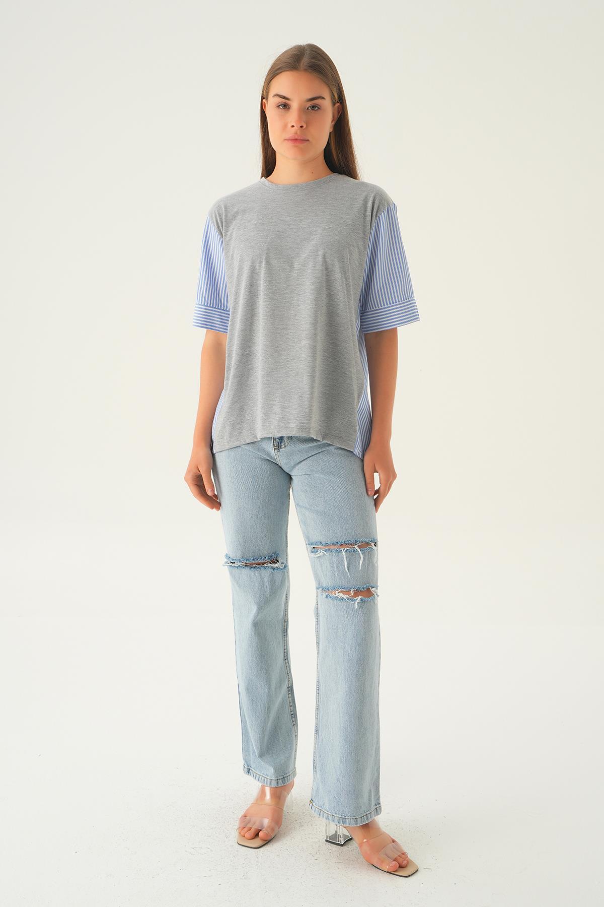 Gri Kol Çizgili Tişört 1199